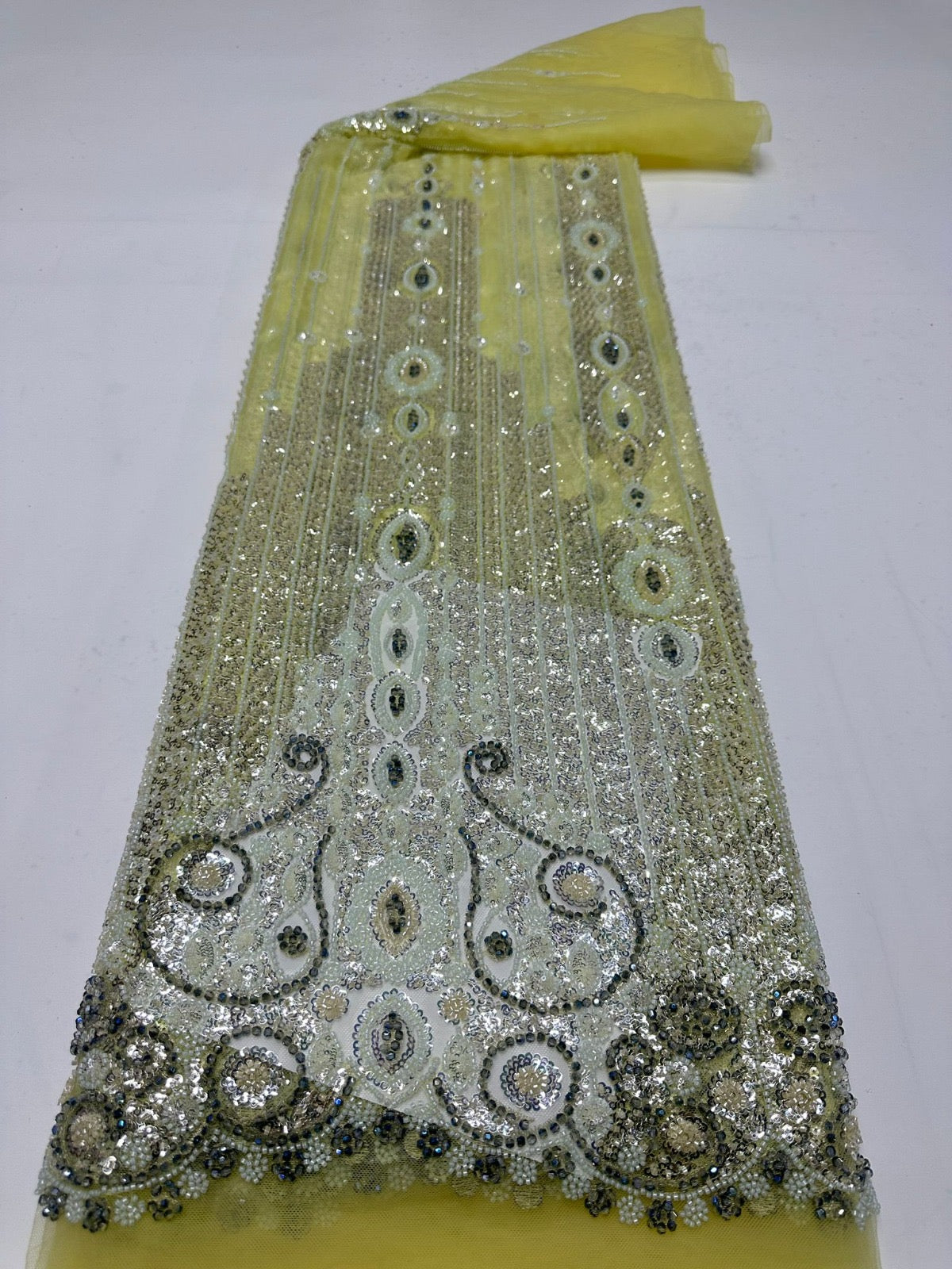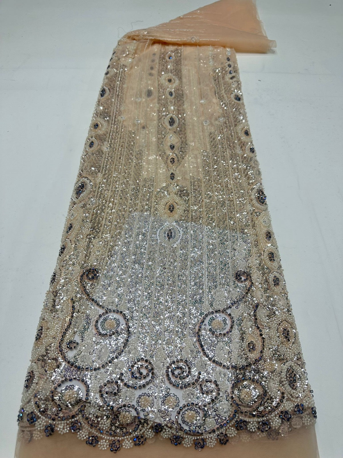 This high quality Fabric is measured in 5 Yards With Embroidered Beading and Sequin. It is soft, very delicate and beautiful.