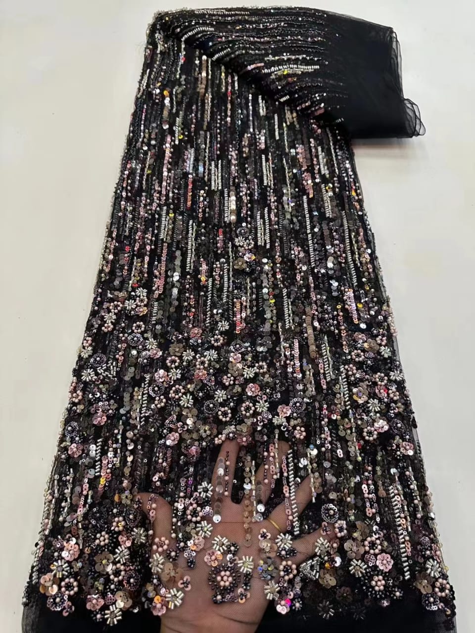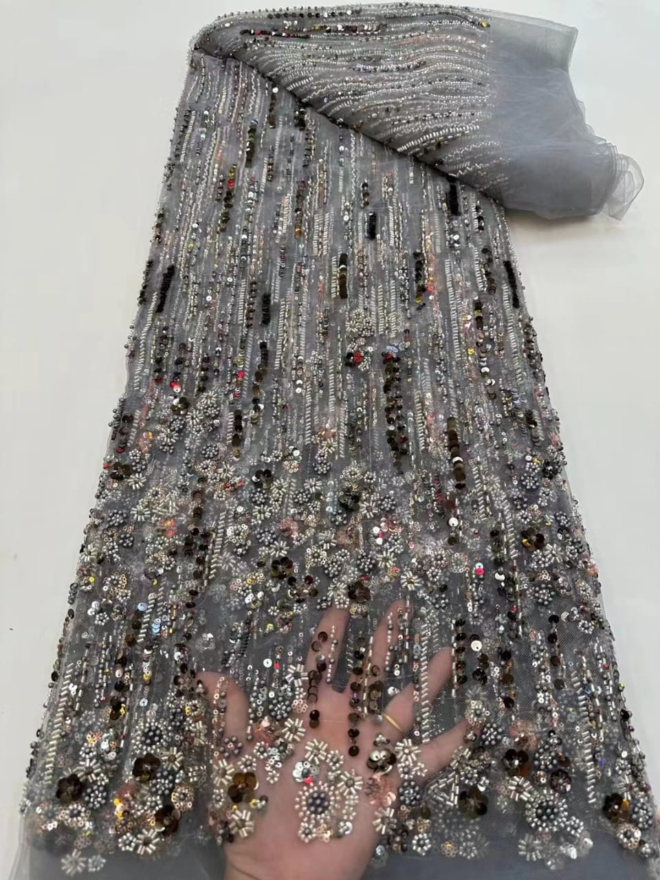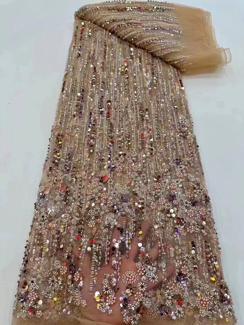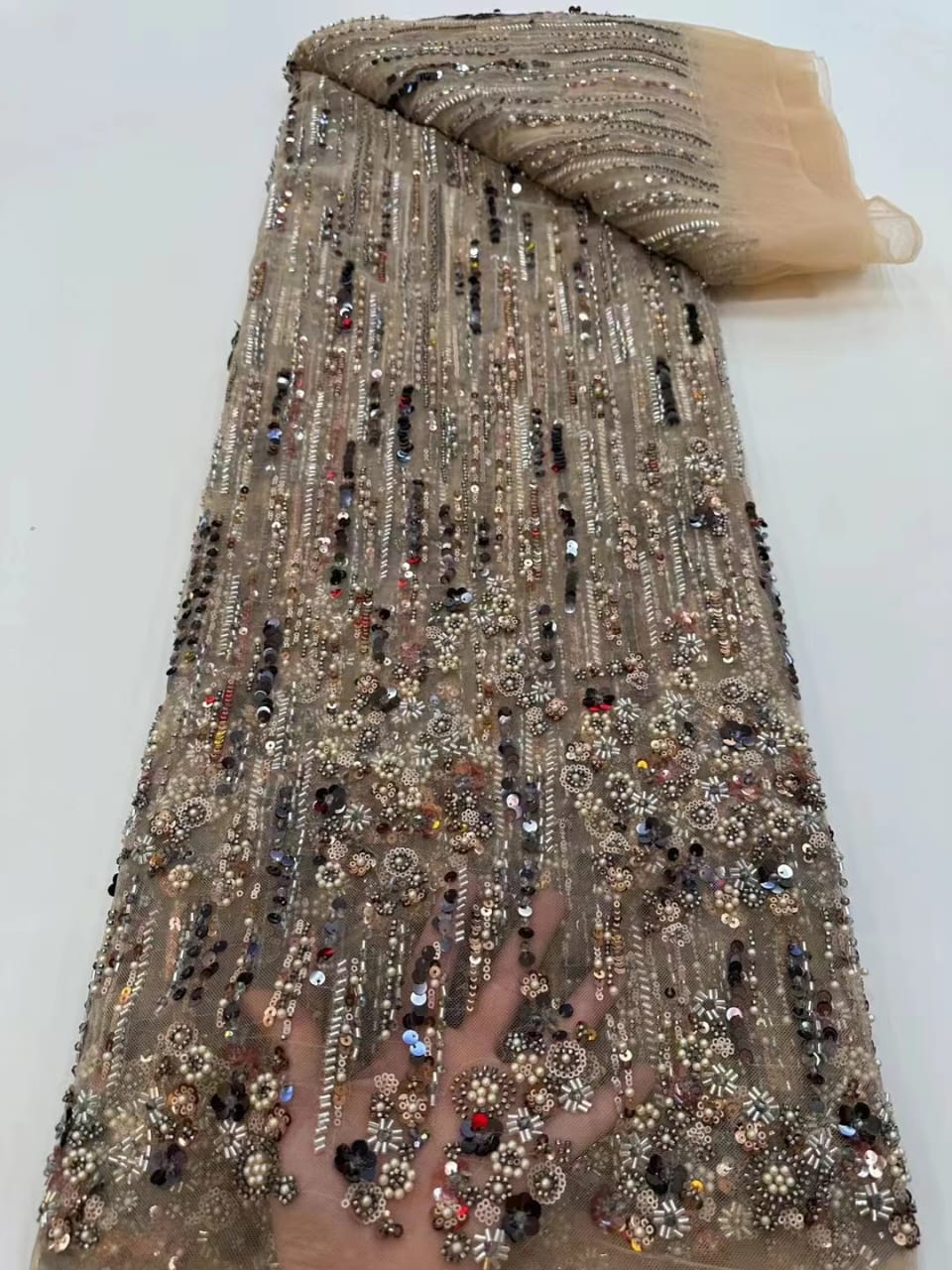 This high quality Fabric is measured in 5 Yards With Embroidered Beading and Sequin. It is soft, very delicate and beautiful.