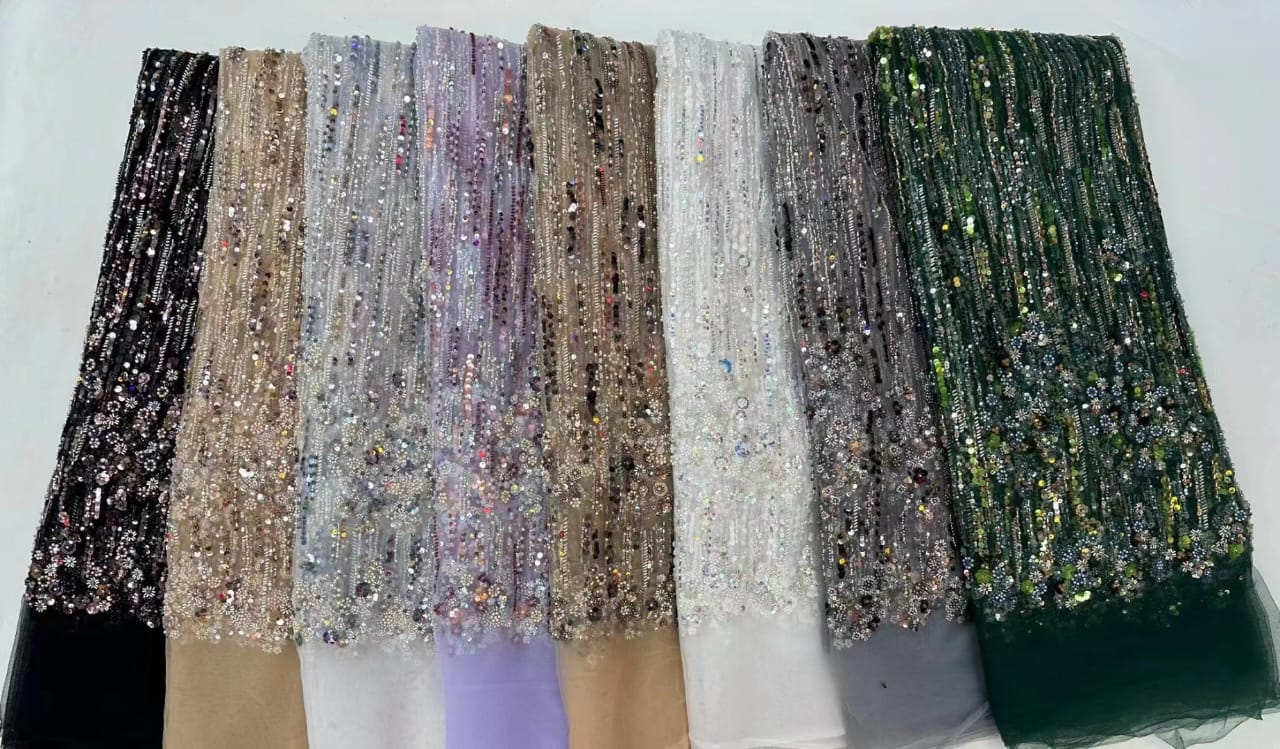 This high Quality Fabric is made with Fashion embroidered rhinestones can be used in making party wedding dresses, skirts, shawls, scarves and other other fashion apparels as you would like.