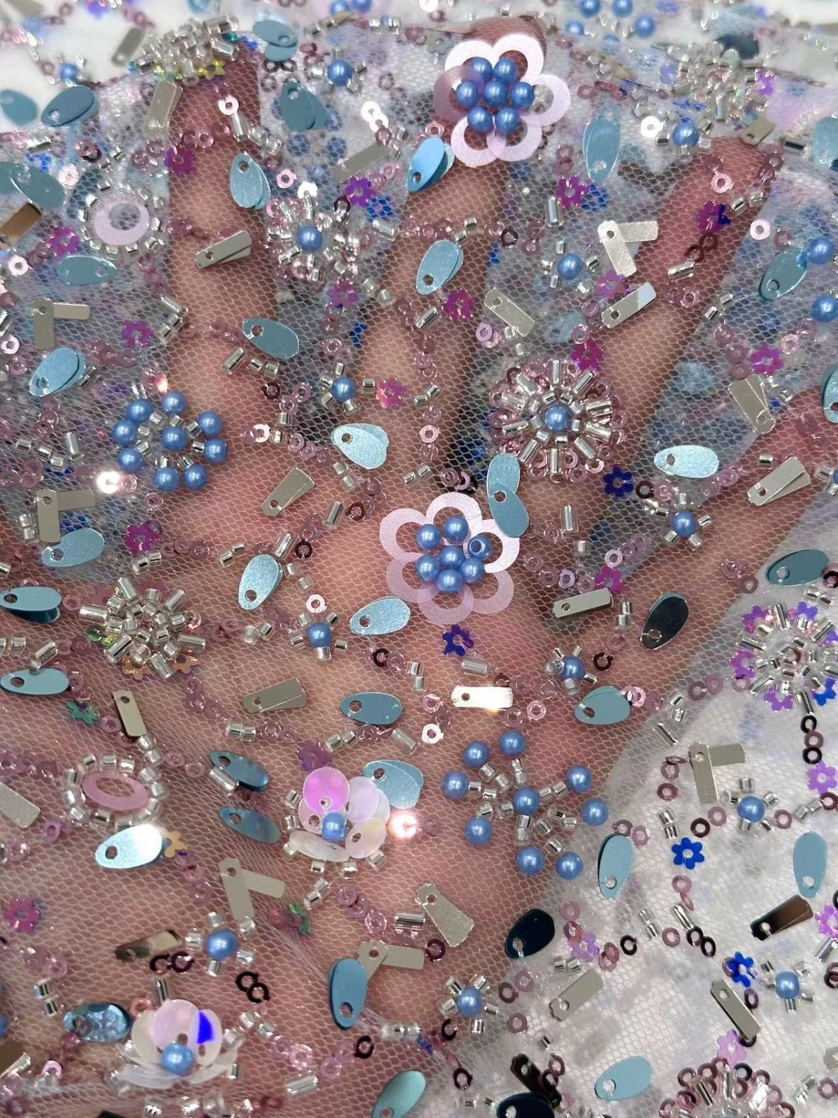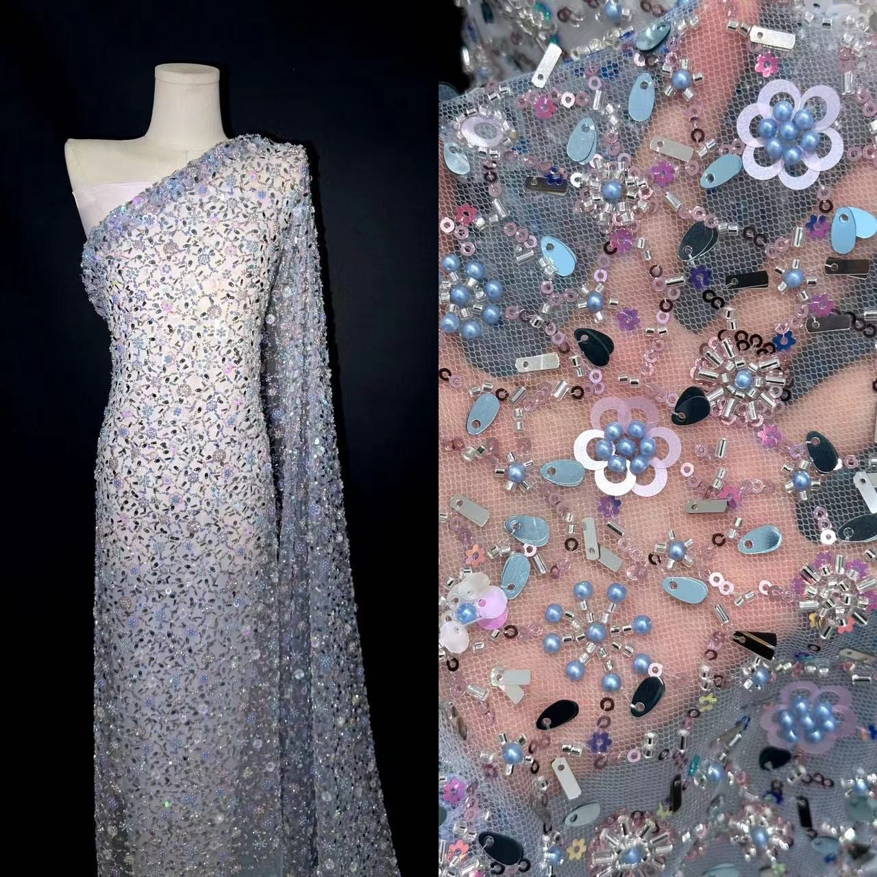 This high Quality Fabric is made with Fashion embroidered rhinestones can be used in making party wedding dresses, skirts, shawls, scarves and other other fashion apparels as you would like.