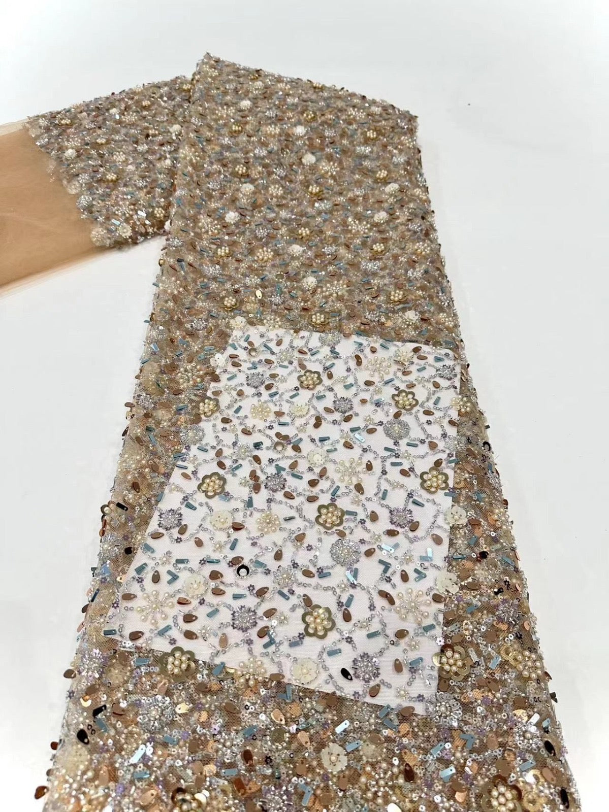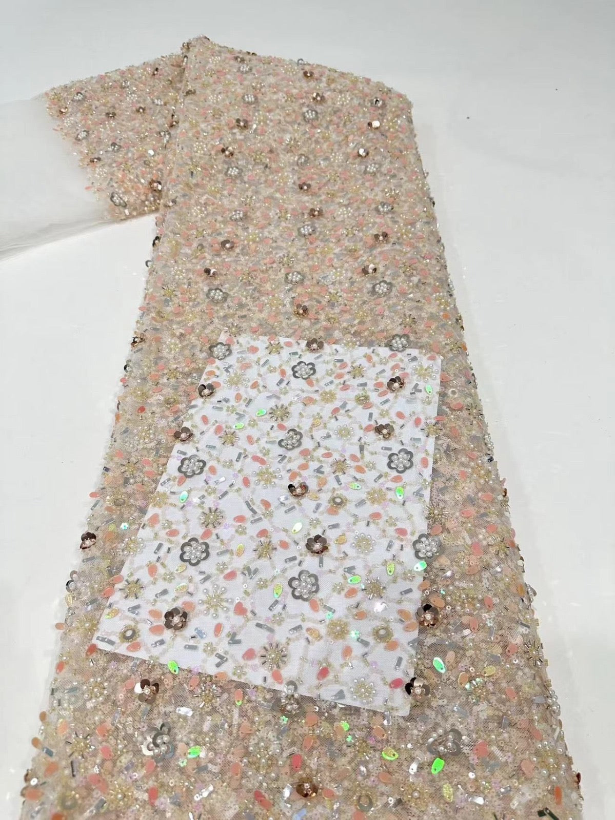 This high quality Fabric is measured in 5 Yards With Embroidered Beading and Sequin. It is soft, very delicate and beautiful.