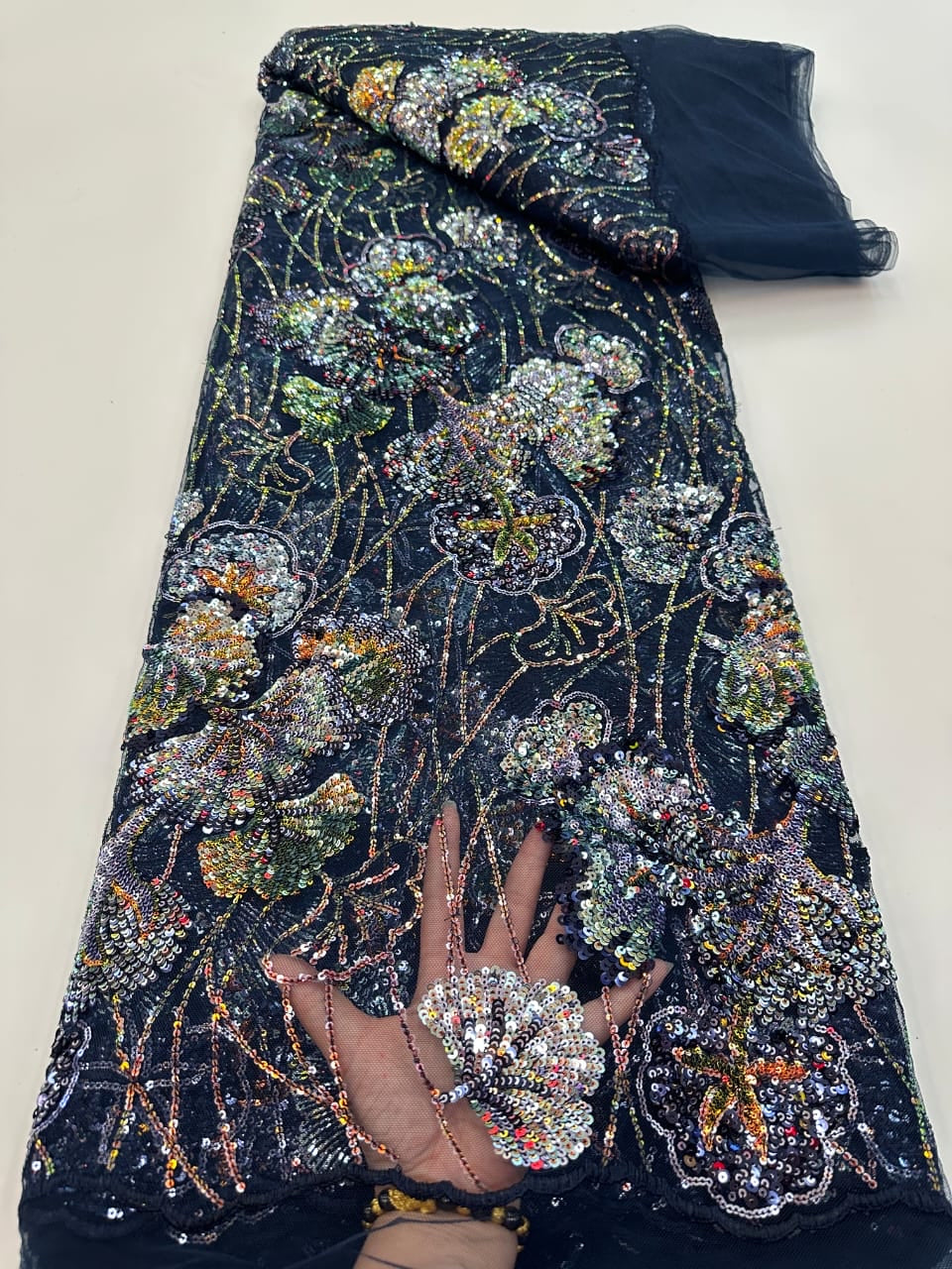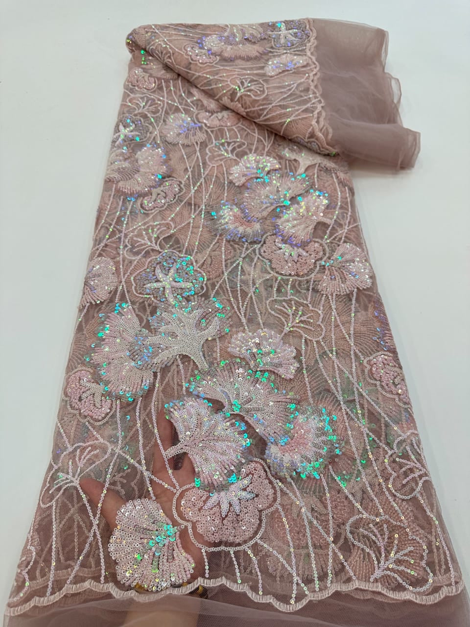 This high quality Fabric is measured in 5 Yards With Embroidered Beading and Sequin. It is soft, very delicate and beautiful.