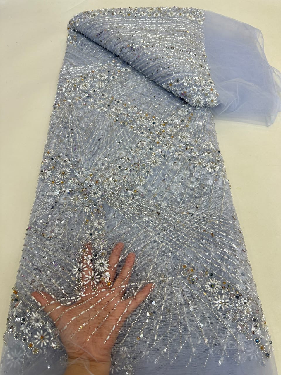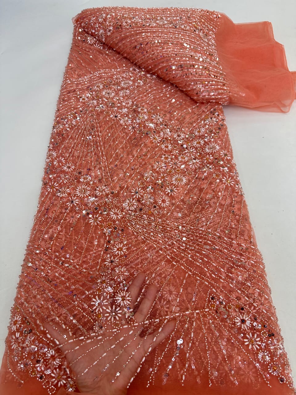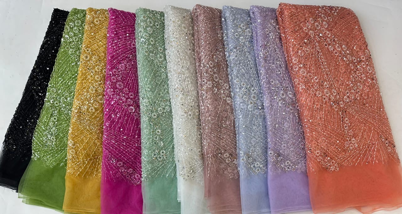 This high quality Fabric is measured in 5 Yards With Embroidered Beading and Sequin. It is soft, very delicate and beautiful.