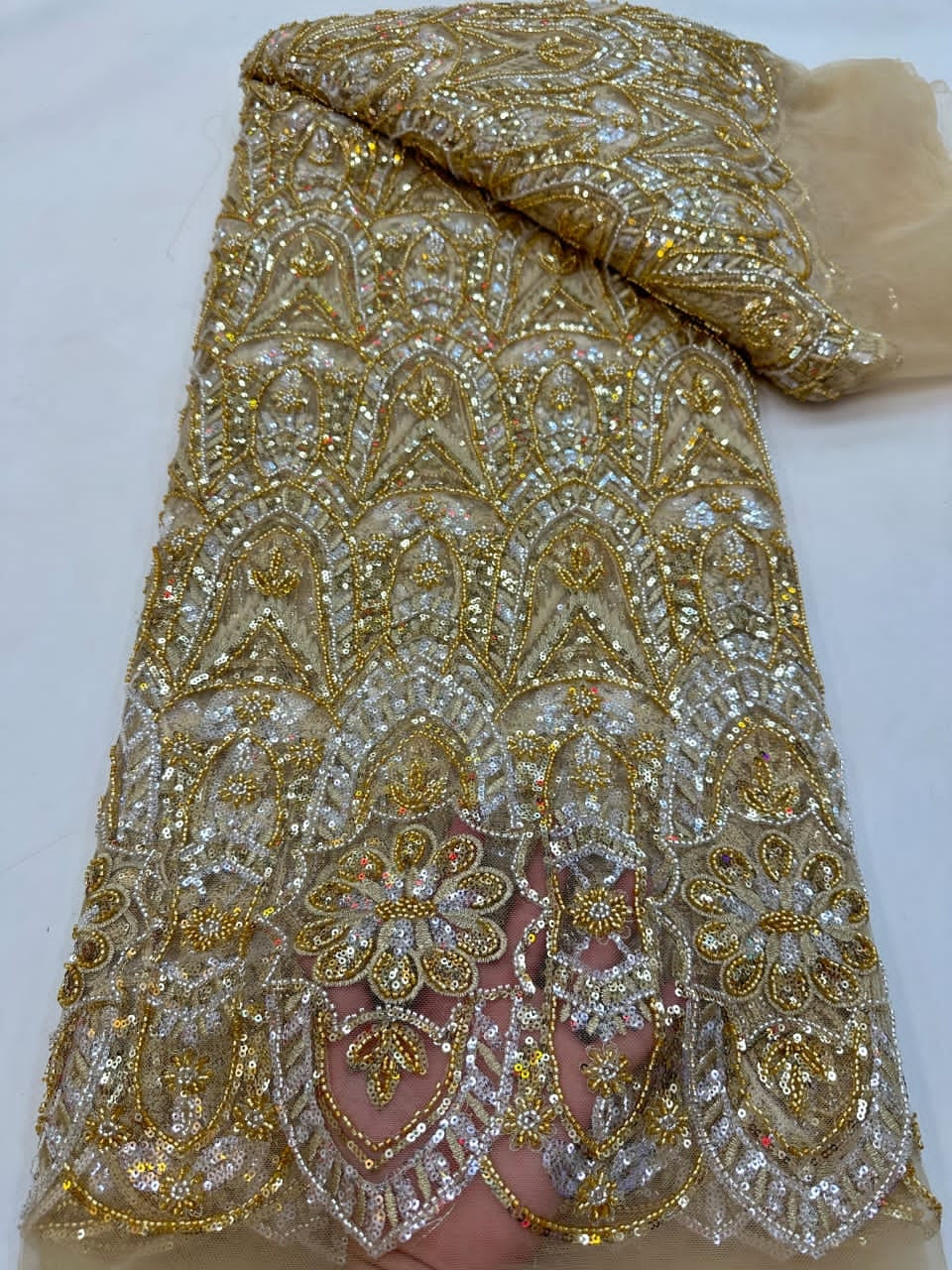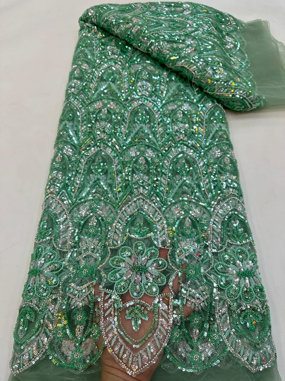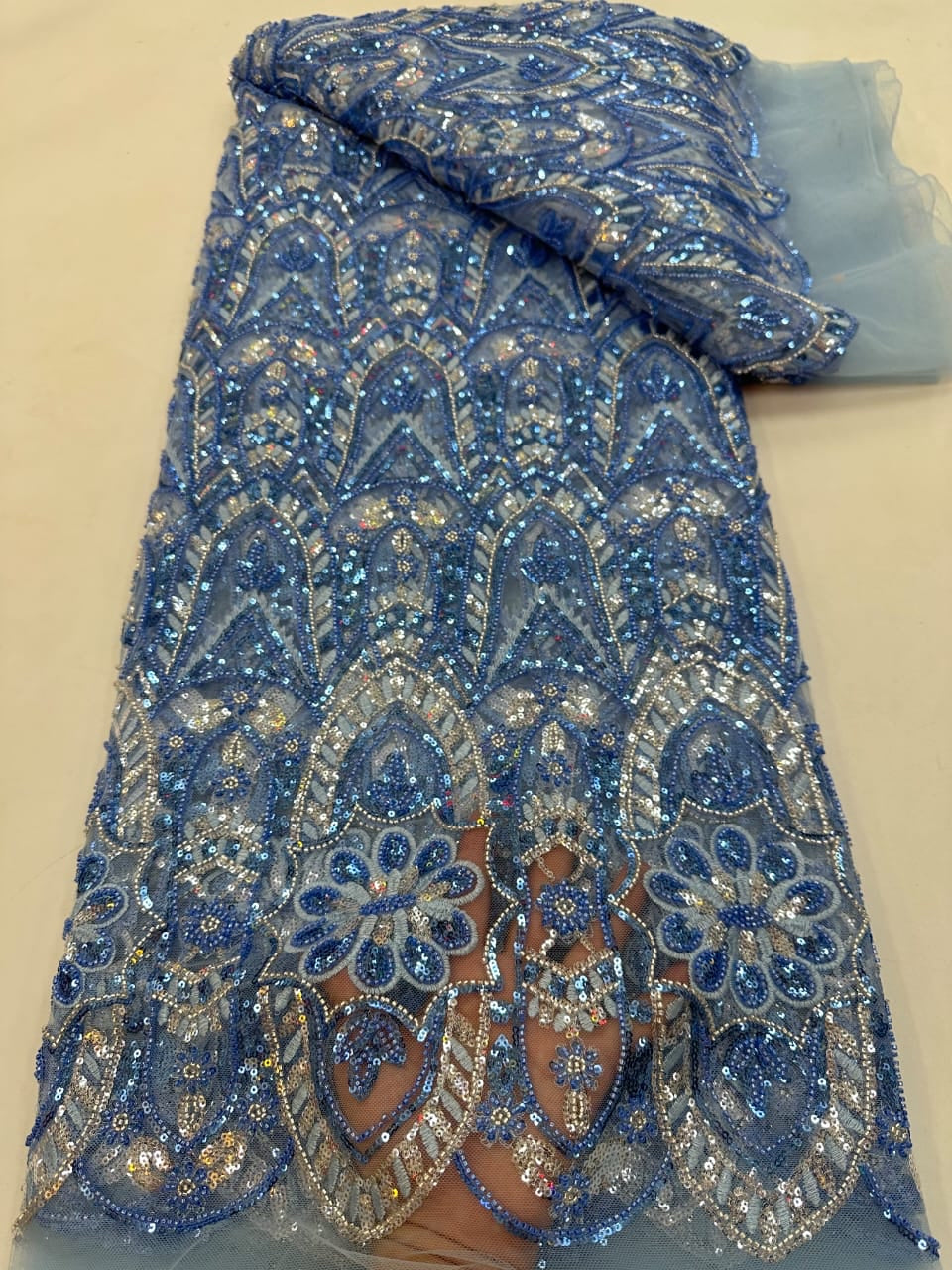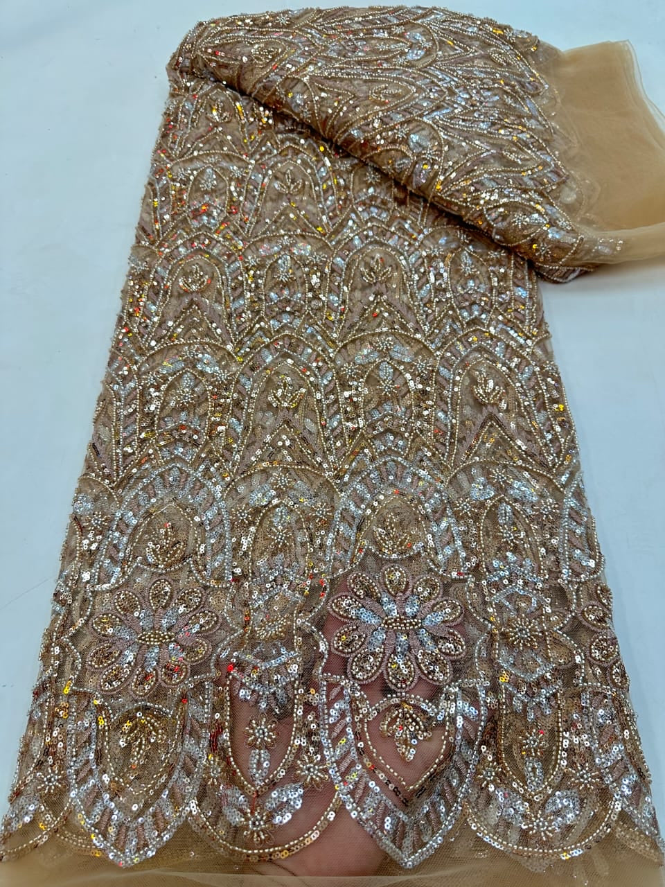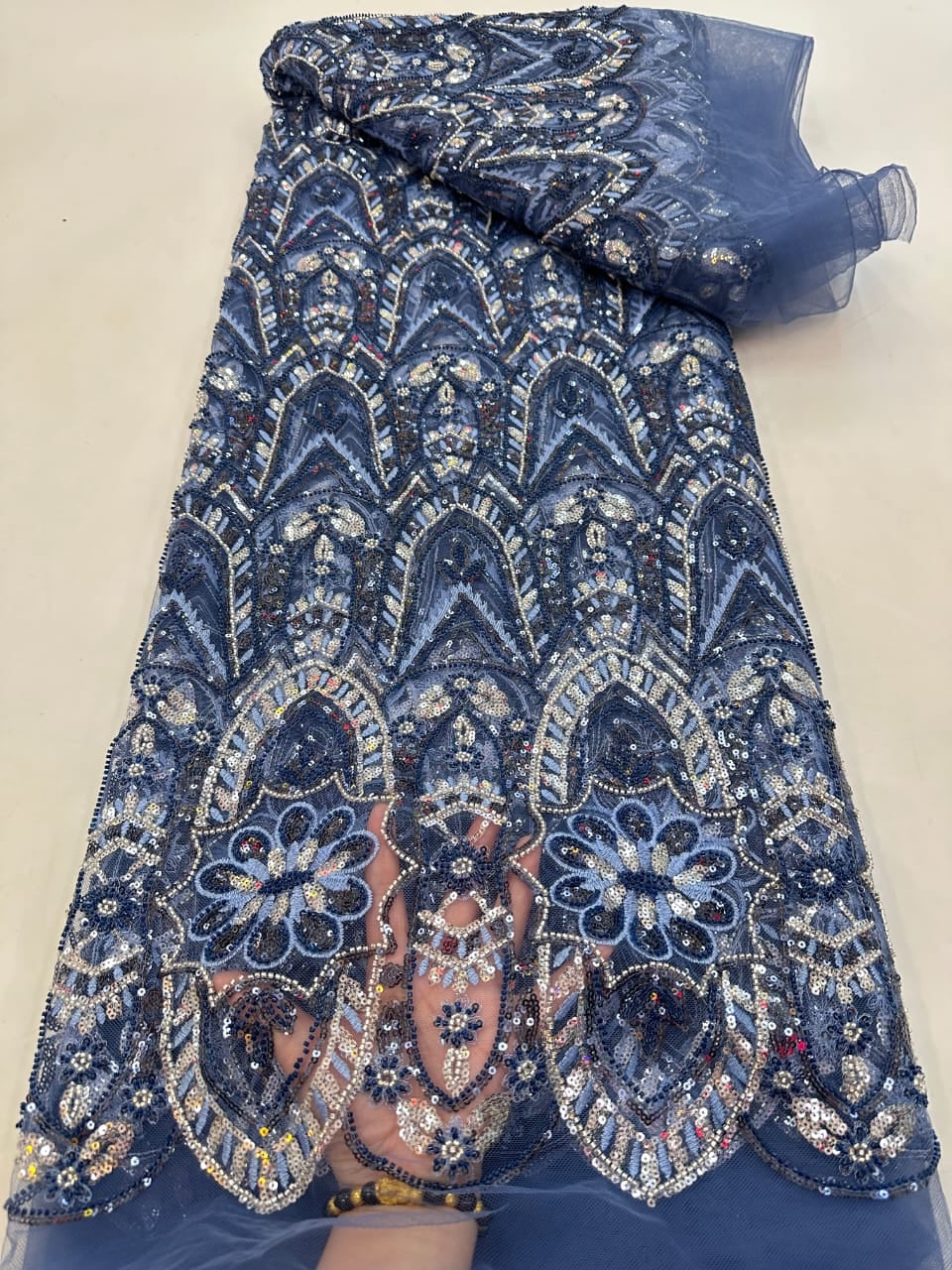 This high quality Fabric is measured in 5 Yards With Embroidered Beading and Sequin. It is soft, very delicate and beautiful.