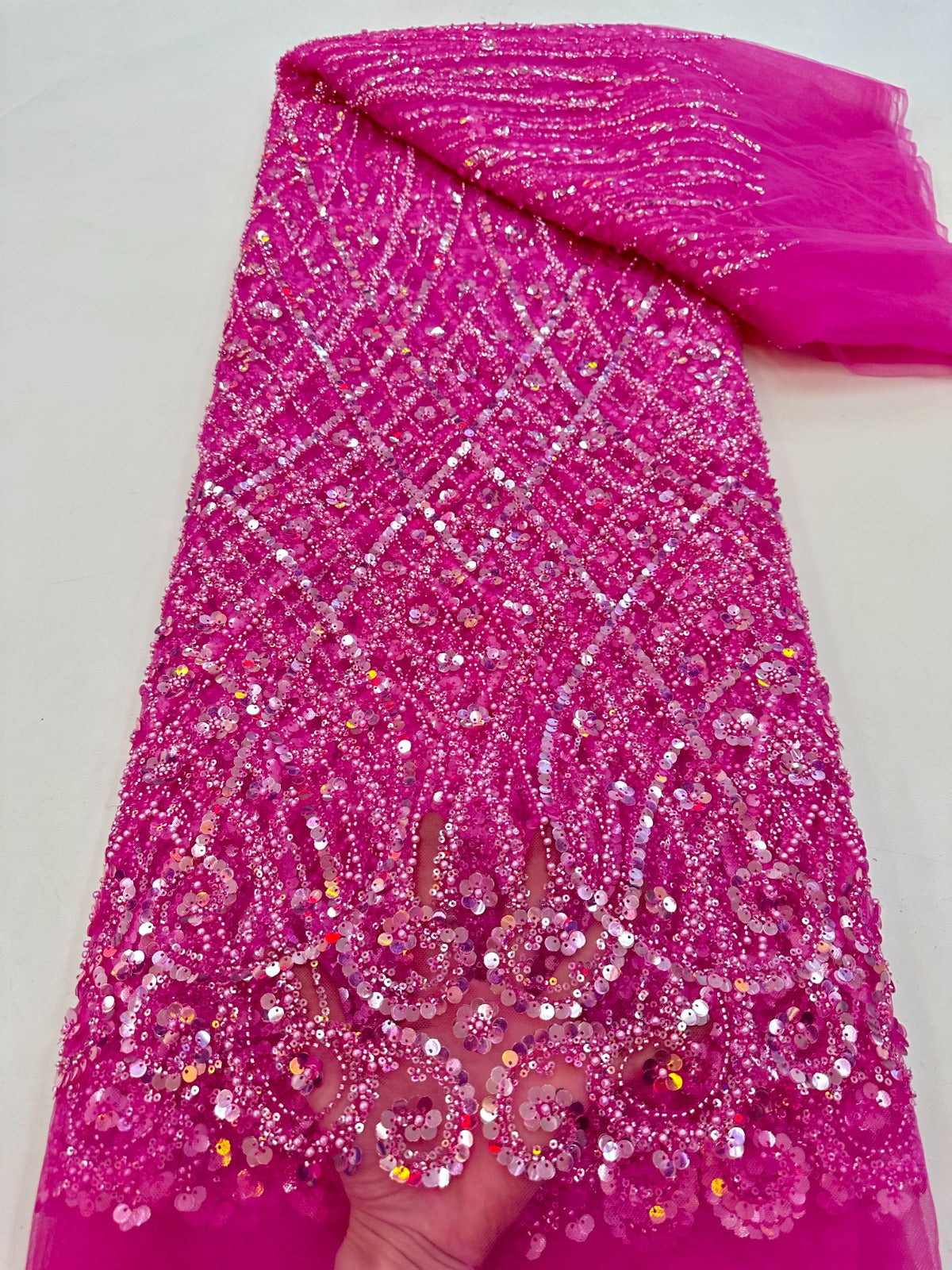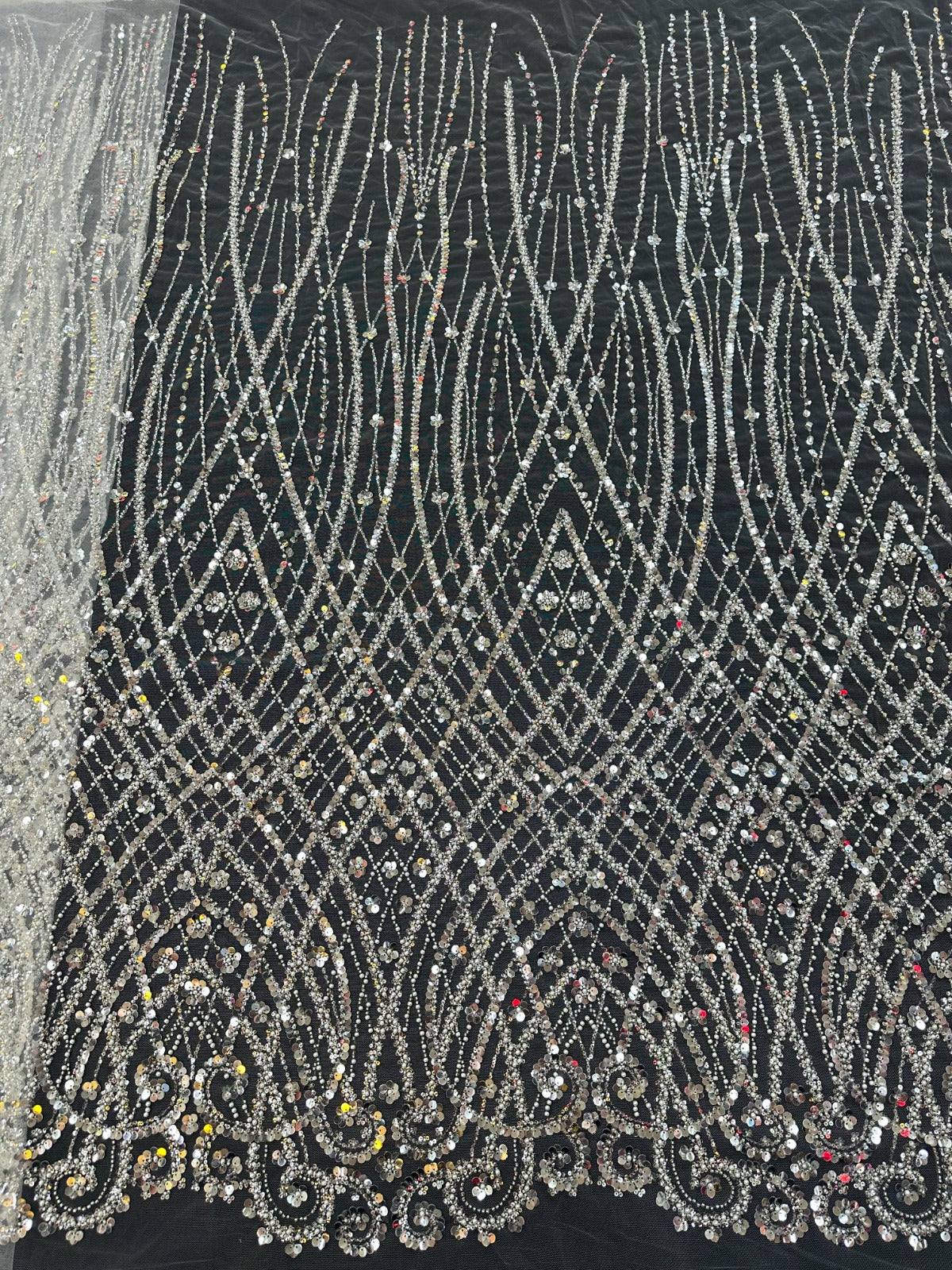 This high Quality Fabric is made with Fashion embroidered rhinestones can be used in making party wedding dresses, skirts, shawls, scarves and other other fashion apparels as you would like.
