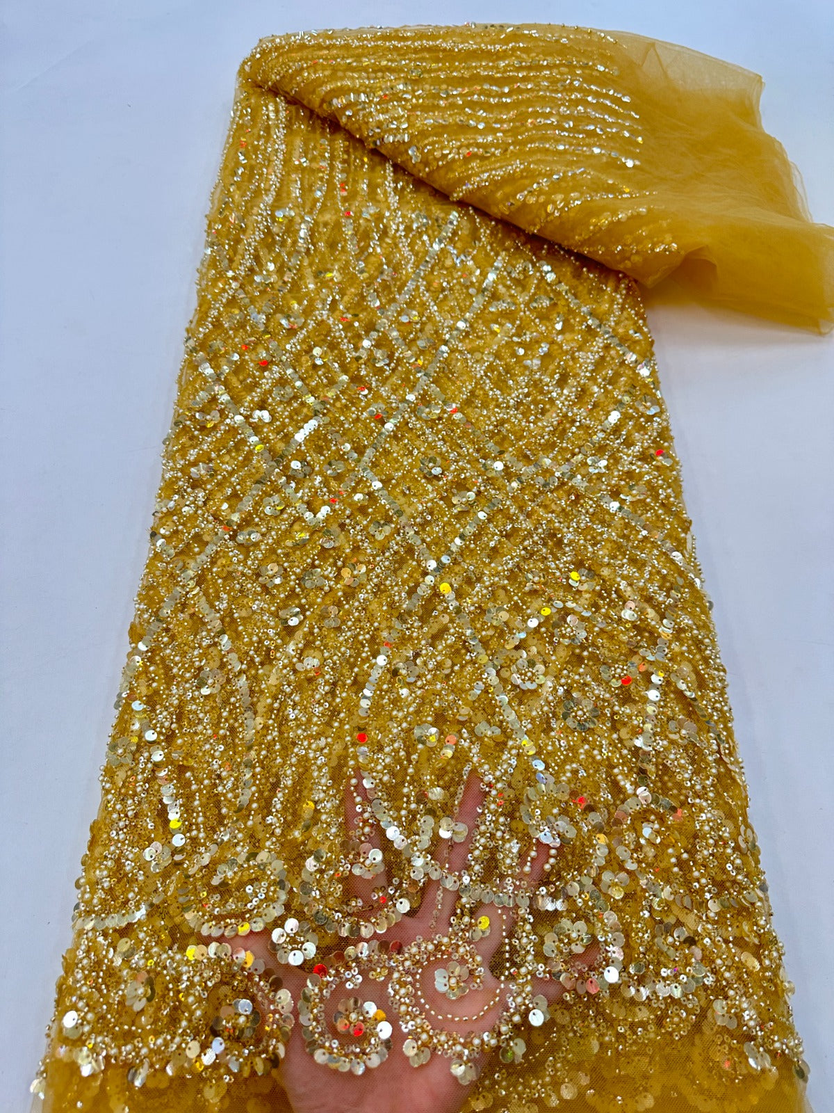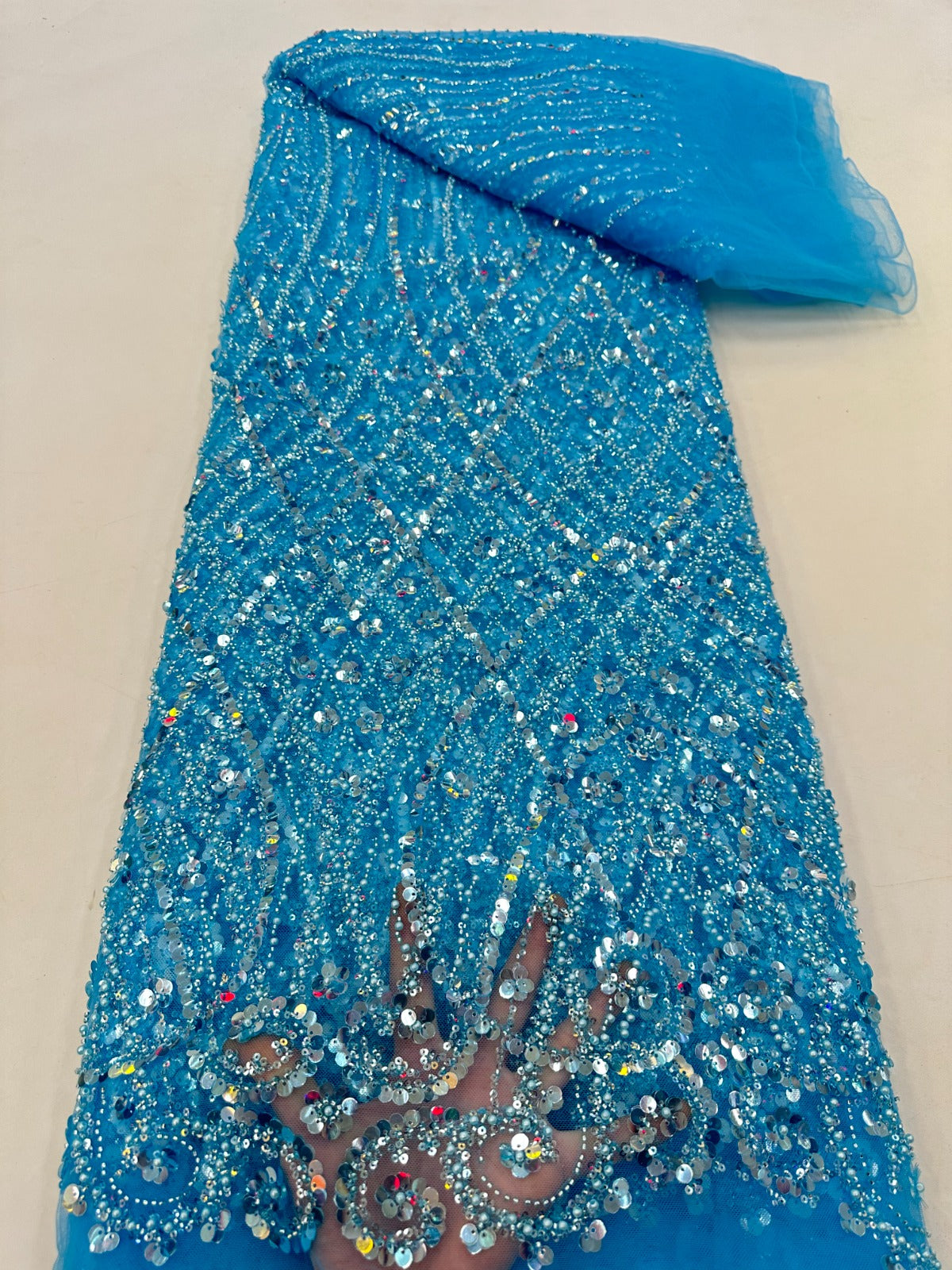 This high quality Fabric is measured in 5 Yards With Embroidered Beading and Sequin. It is soft, very delicate and beautiful.