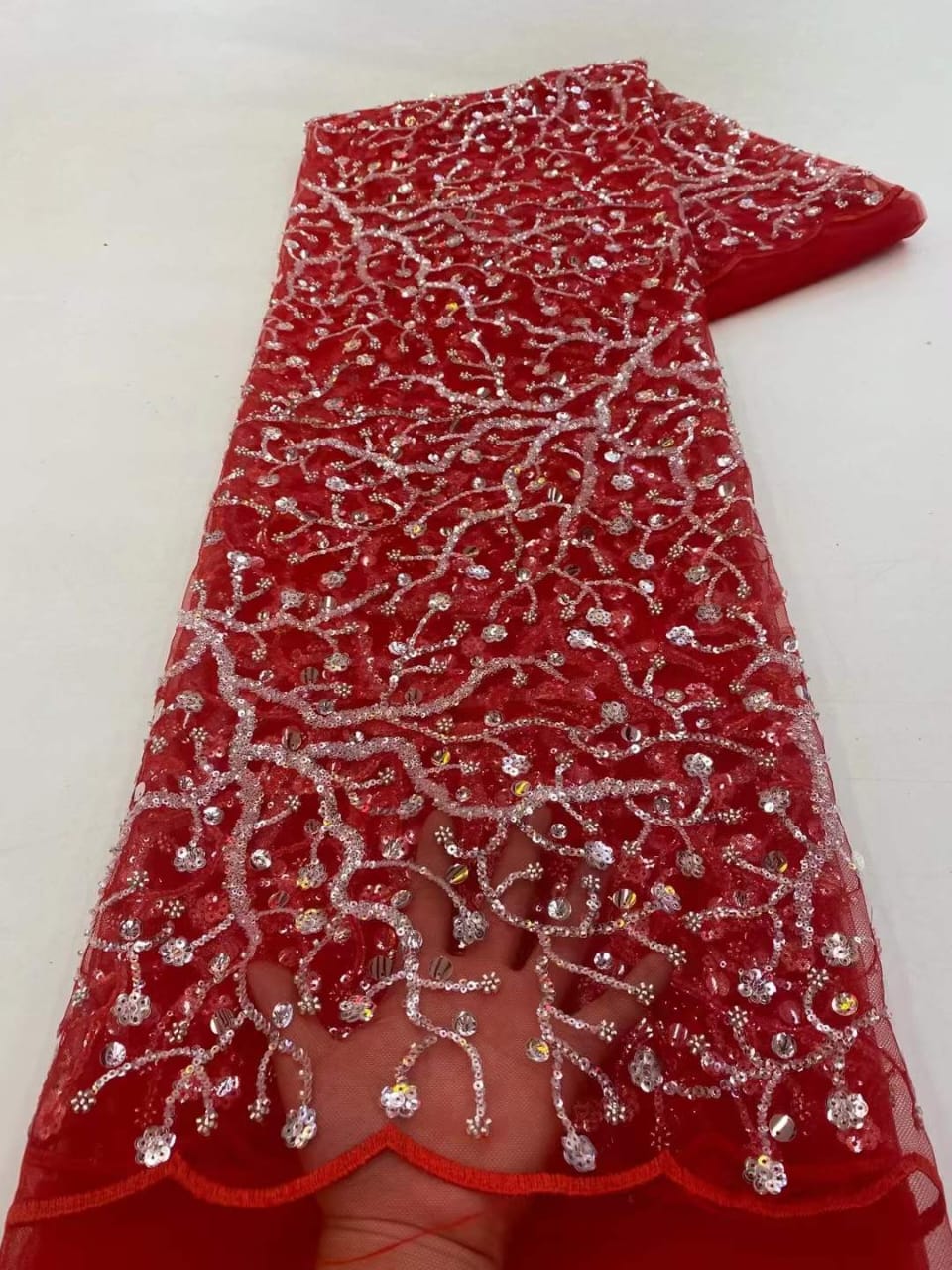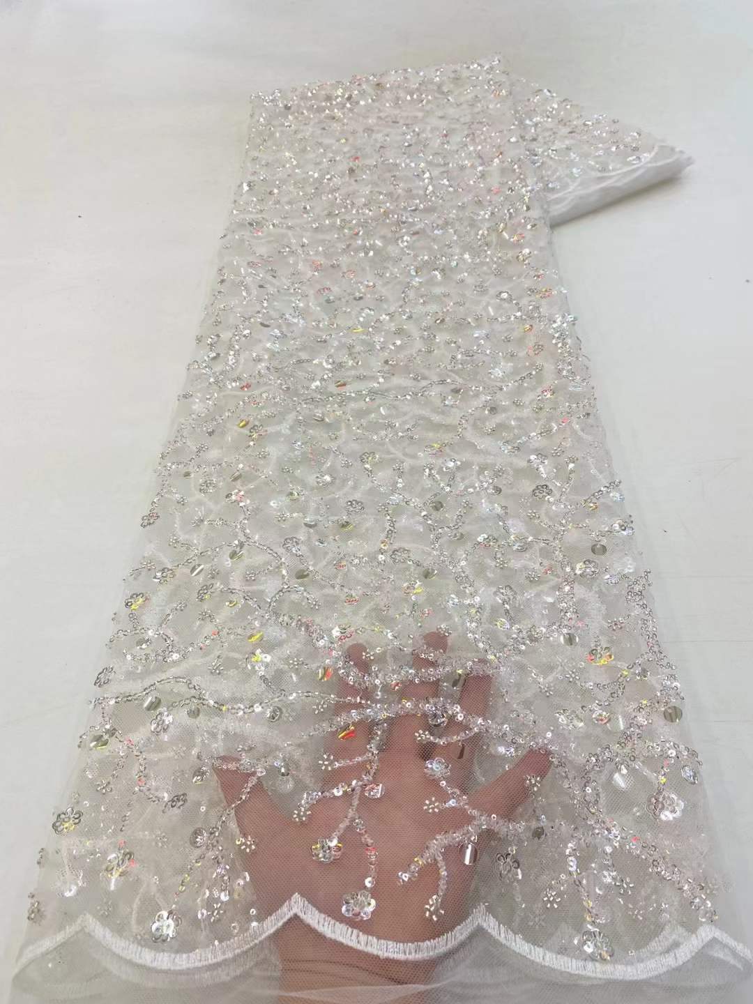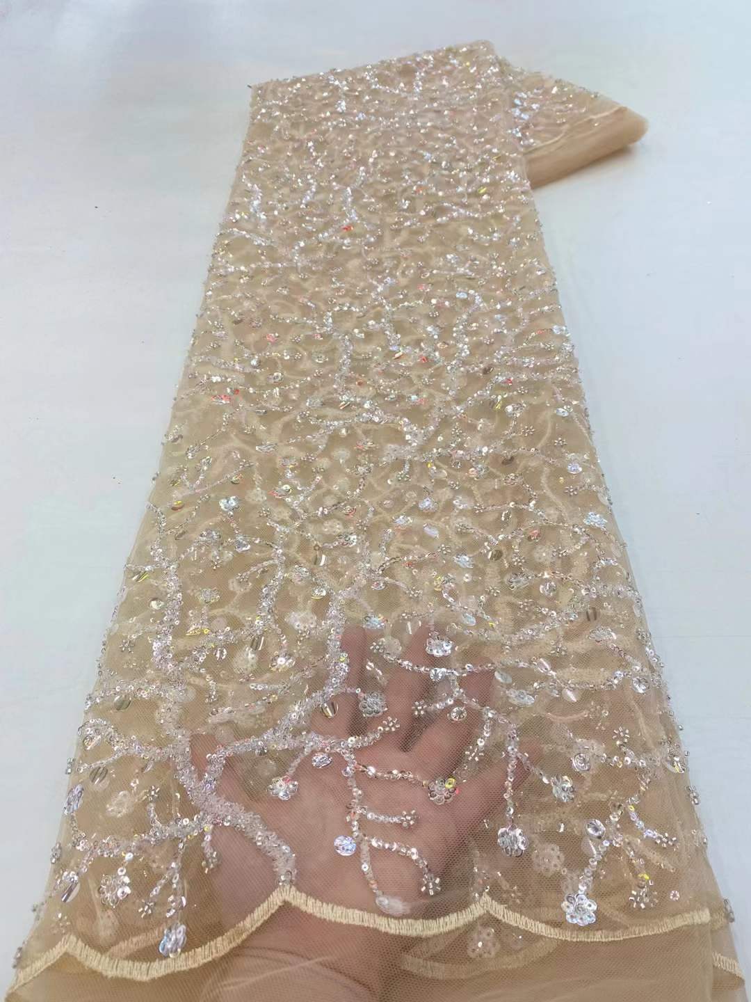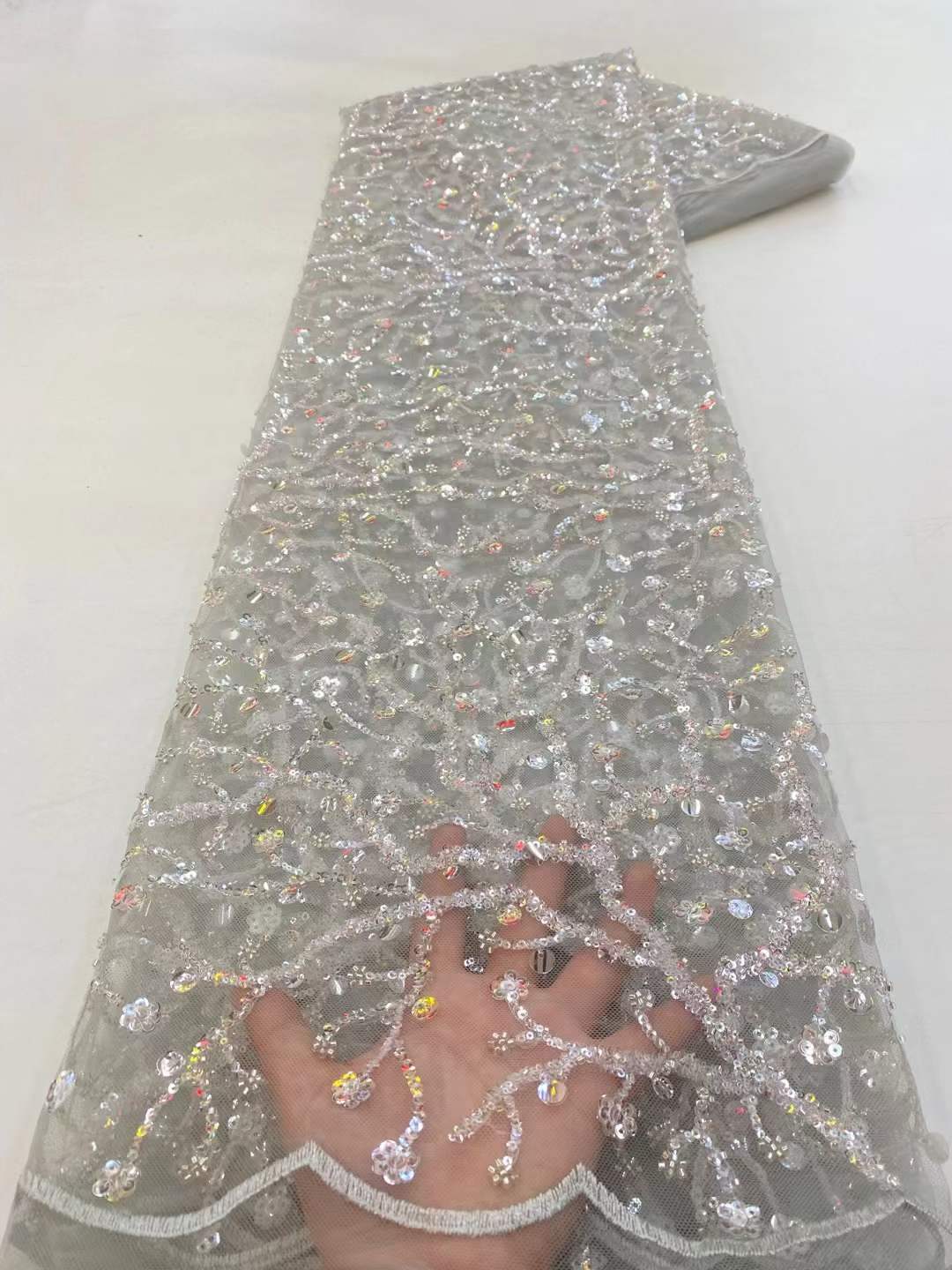This high Quality Fabric is made with Fashion embroidered rhinestones can be used in making party wedding dresses, skirts, shawls, scarves and other other fashion apparels as you would like.