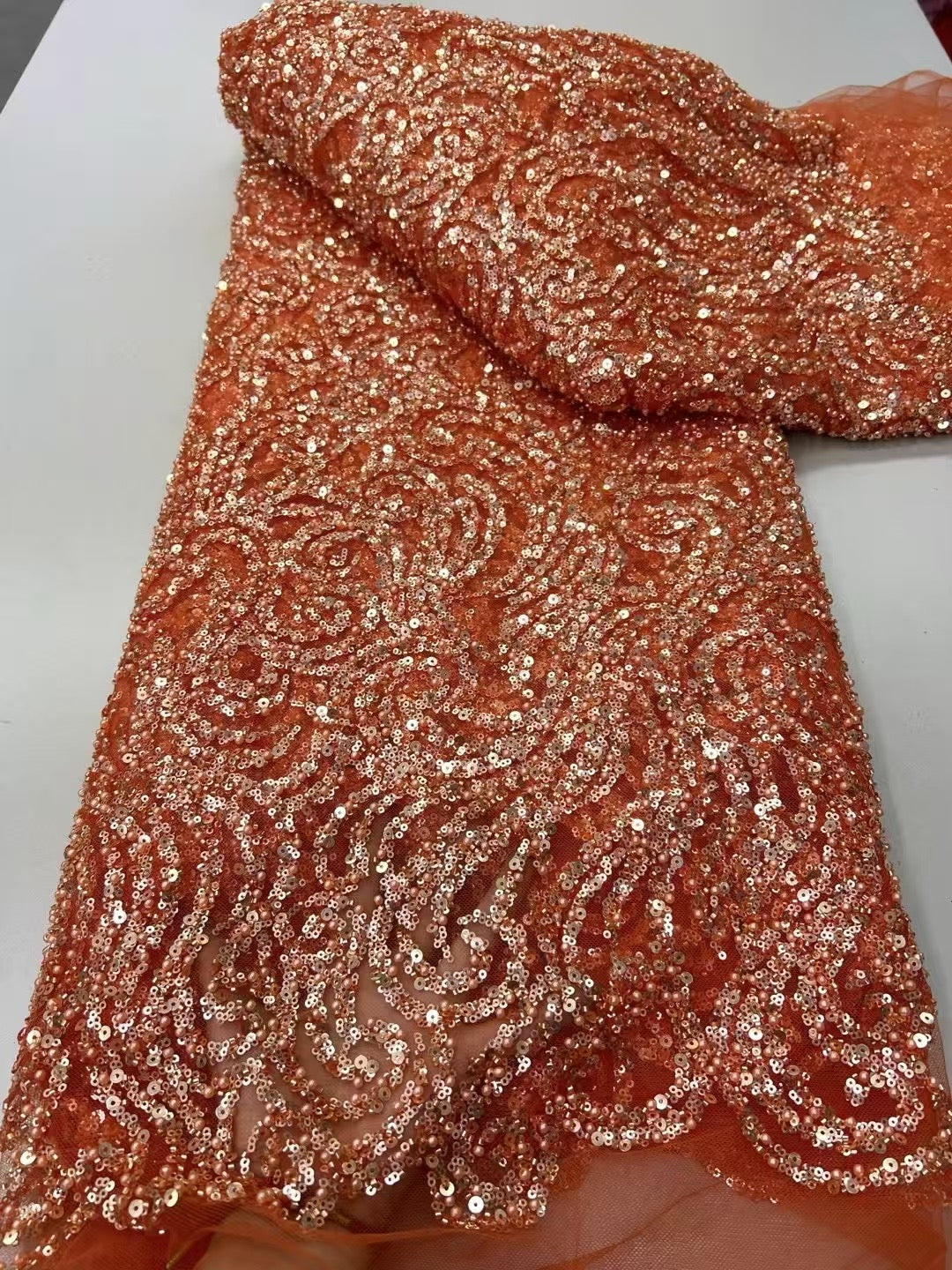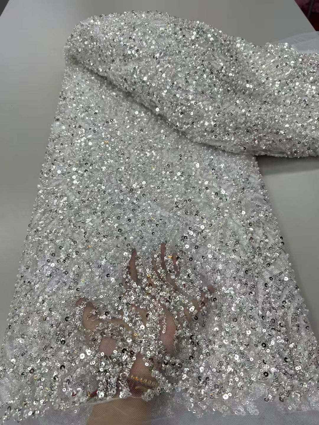 This high quality Fabric is measured in 5 Yards With Embroidered Beading and Sequin. It is soft, very delicate and beautiful.