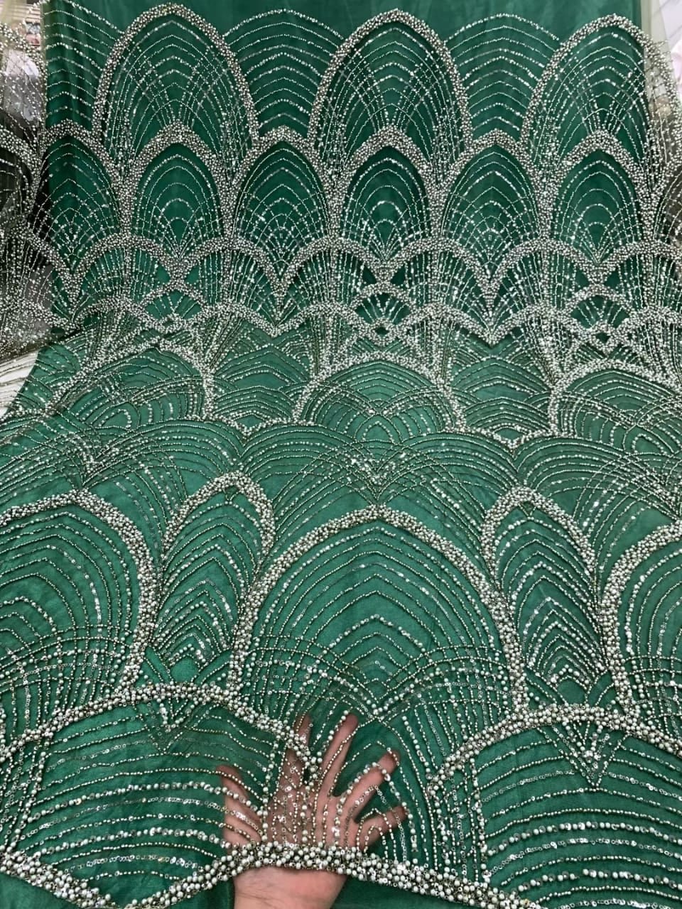 This high Quality Fabric is made with Fashion embroidered rhinestones can be used in making party wedding dresses, skirts, shawls, scarves and other other fashion apparels as you would like.