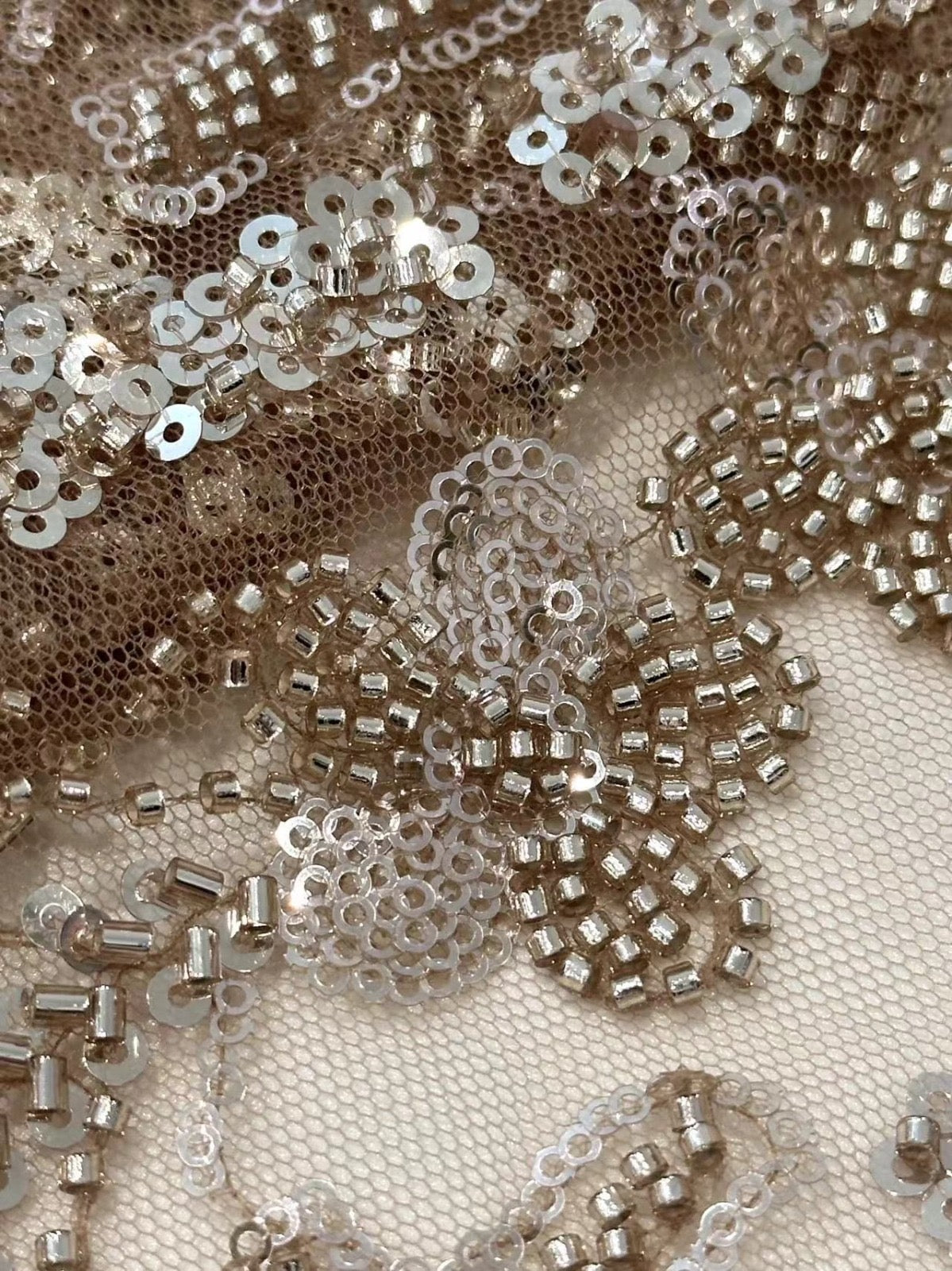This high Quality Fabric is made with Fashion embroidered rhinestones can be used in making party wedding dresses, skirts, shawls, scarves and other other fashion apparels as you would like.