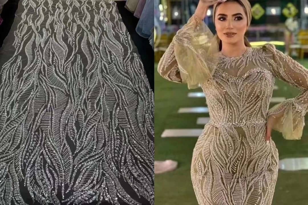 This high Quality Fabric is made with Fashion embroidered rhinestones can be used in making party wedding dresses, skirts, shawls, scarves and other other fashion apparels as you would like.
