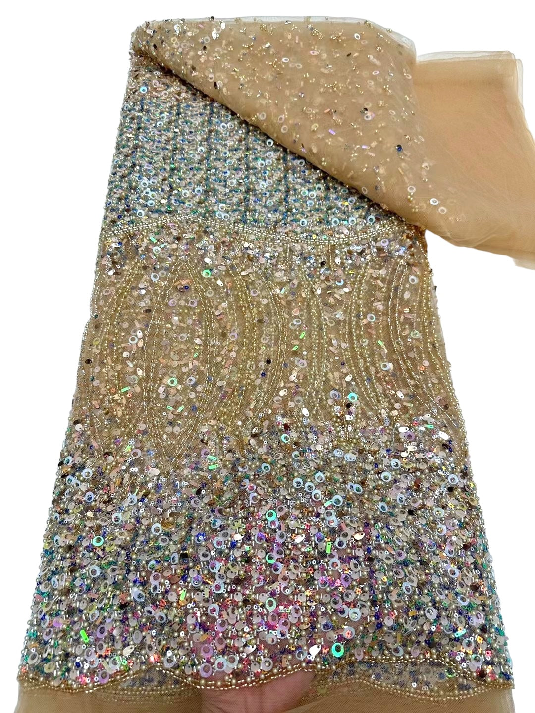 This high quality Fabric is measured in 5 Yards With Embroidered Beading and Sequin. It is soft, very delicate and beautiful.