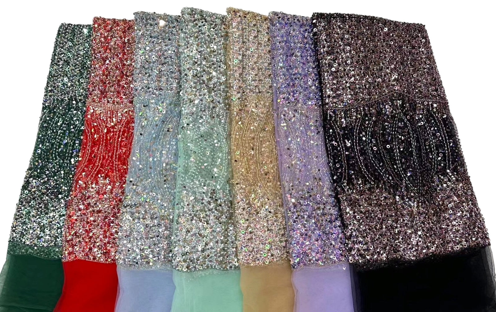 This high Quality Fabric is made with Fashion embroidered rhinestones can be used in making party wedding dresses, skirts, shawls, scarves and other other fashion apparels as you would like.