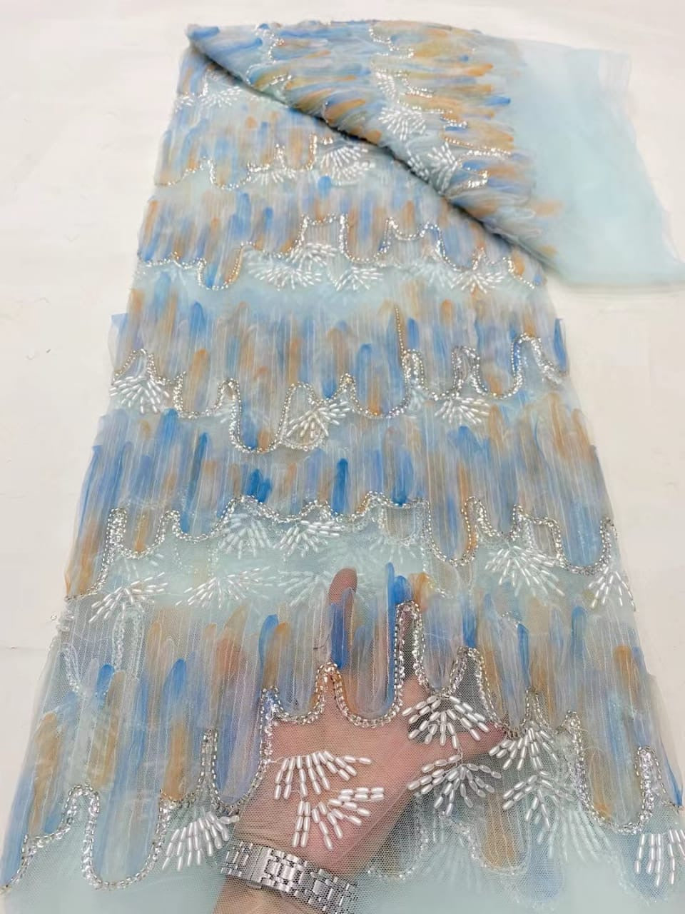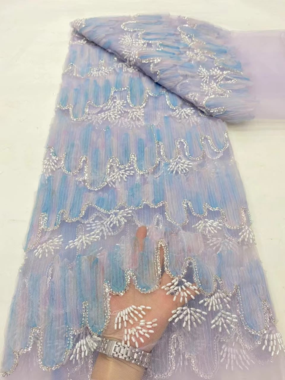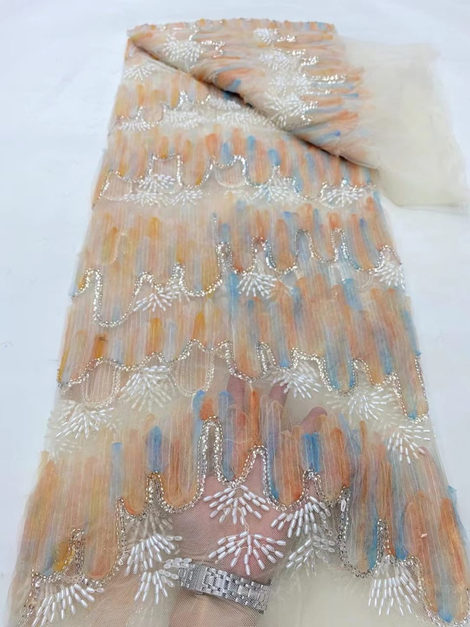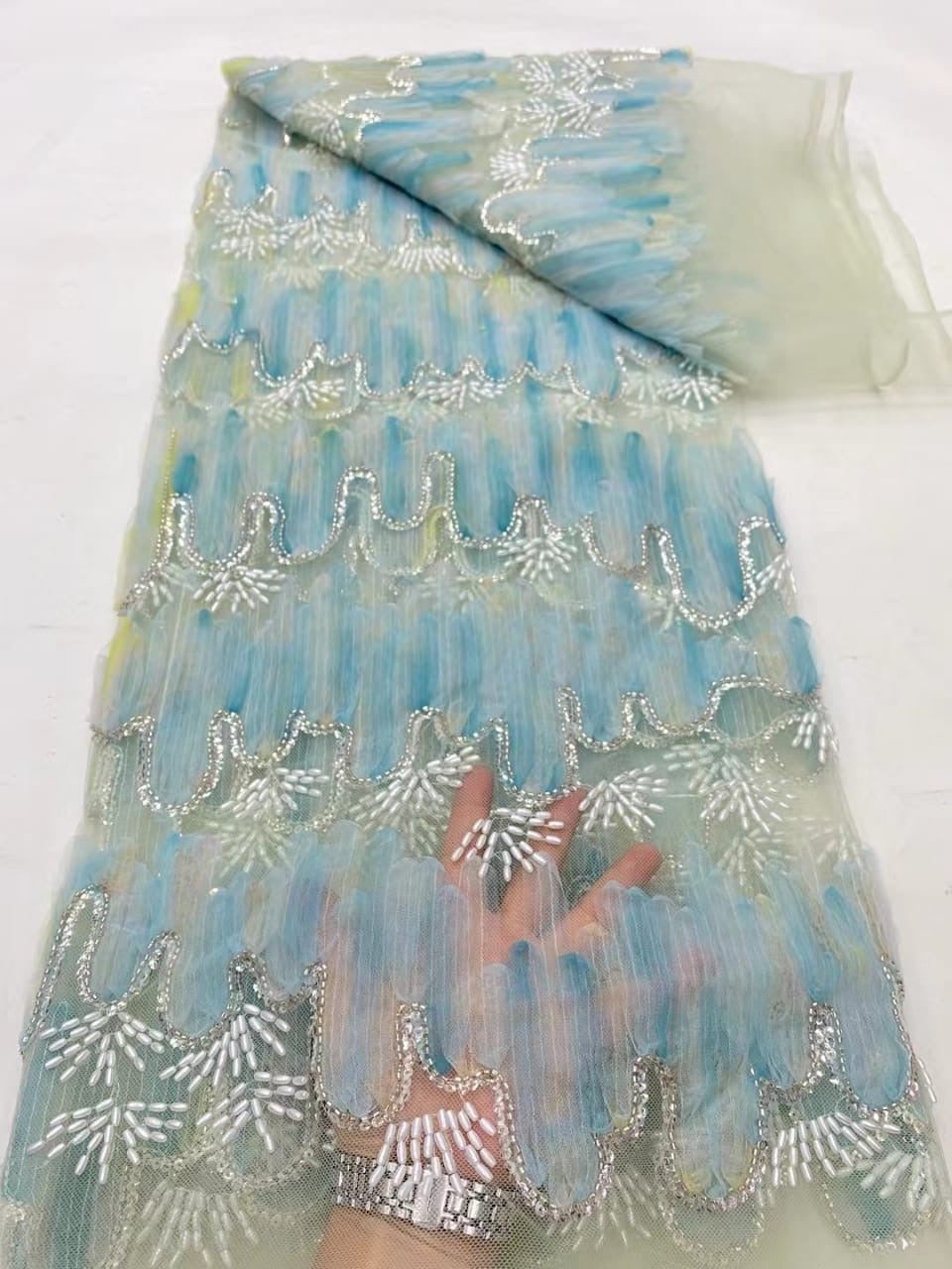 This high quality Fabric is measured in 5 Yards With Embroidered Beading and Sequin. It is soft, very delicate and beautiful.