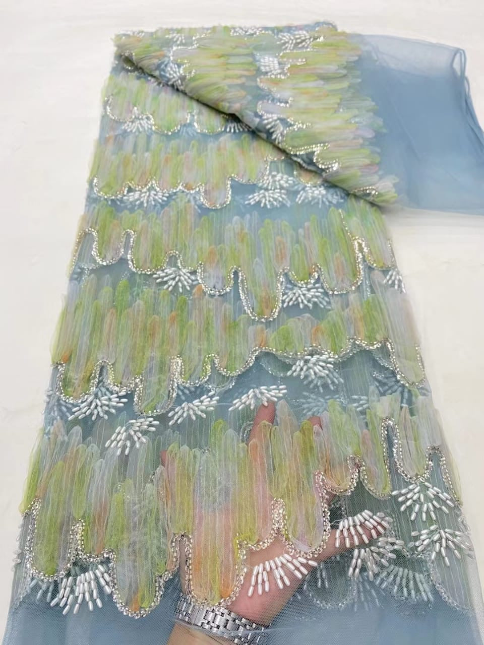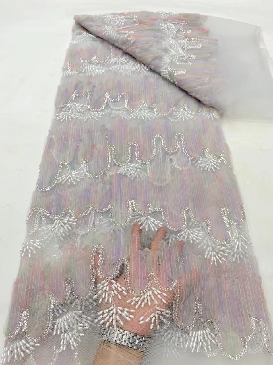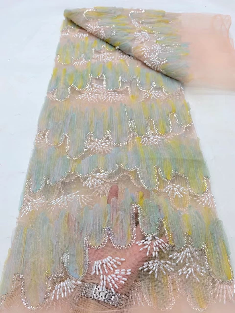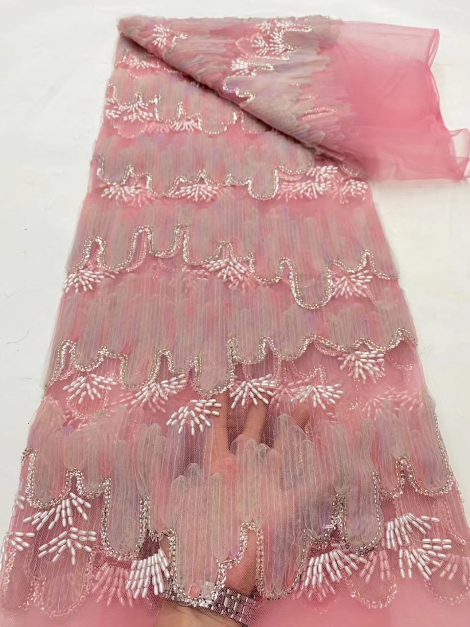 This high quality Fabric is measured in 5 Yards With Embroidered Beading and Sequin. It is soft, very delicate and beautiful.