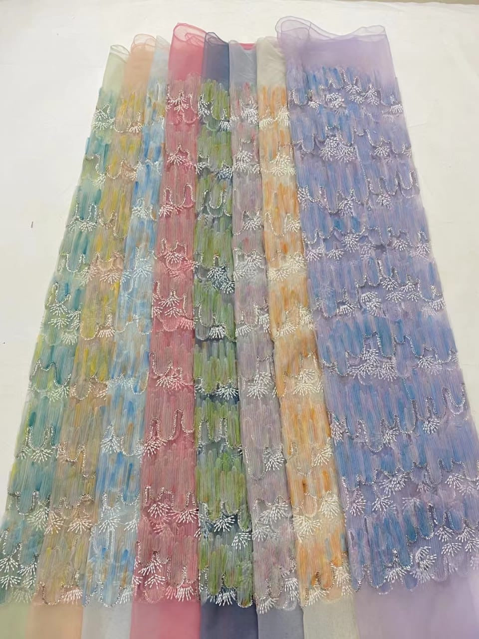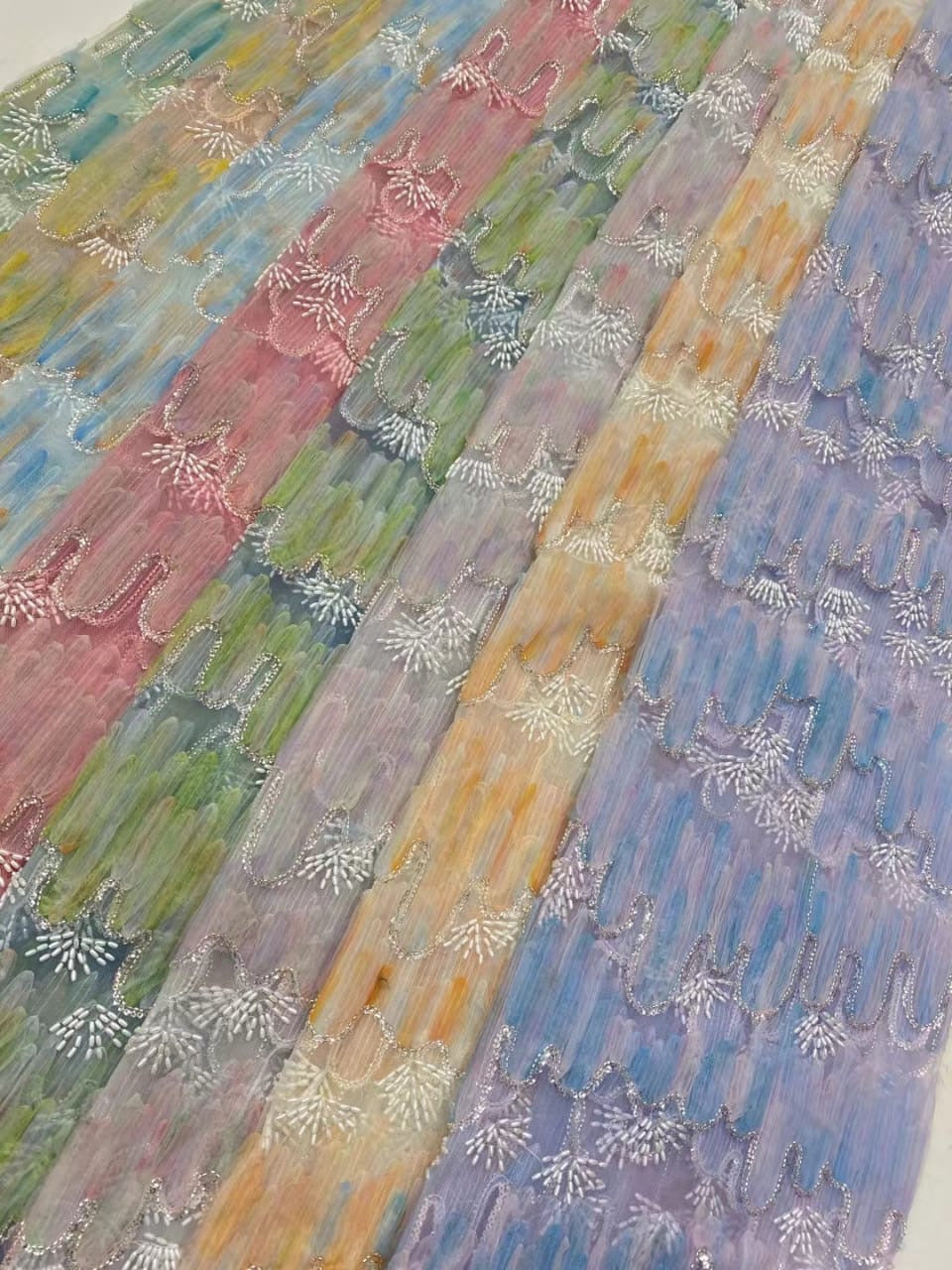This high Quality Fabric is made with Fashion embroidered rhinestones can be used in making party wedding dresses, skirts, shawls, scarves and other other fashion apparels as you would like.