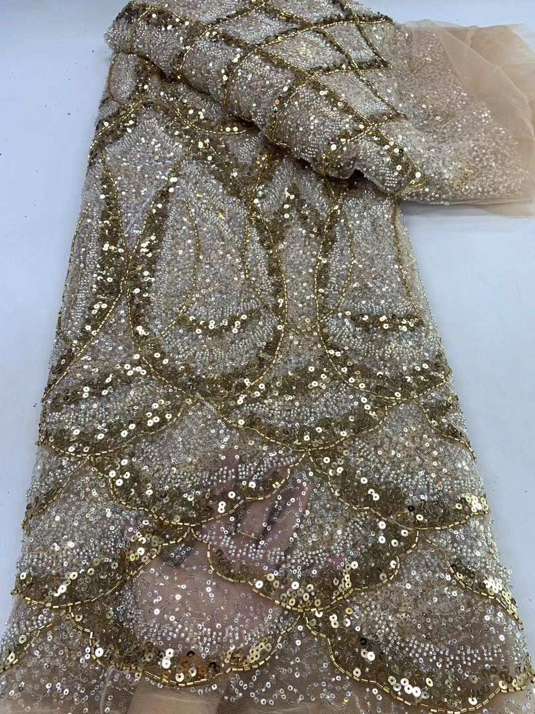 This high quality Fabric is measured in 5 Yards With Embroidered Beading and Sequin. It is soft, very delicate and beautiful.