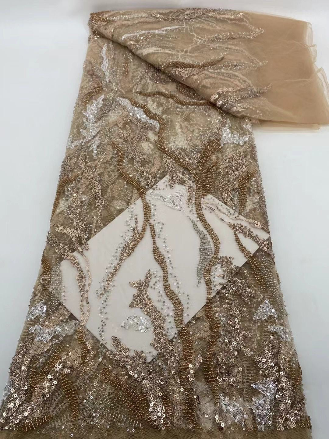This high quality Fabric is measured in 5 Yards with Beading and Sequin. It is soft, very delicate and beautiful.