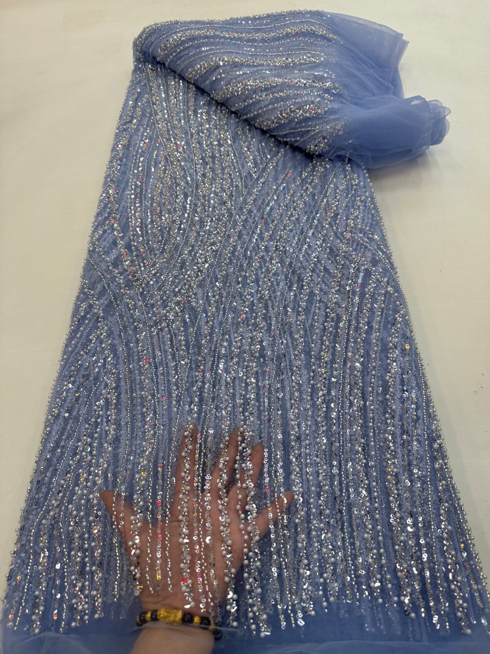 This high quality Fabric is measured in 5 Yards With Embroidered Beading and Sequin. It is soft, very delicate and beautiful.