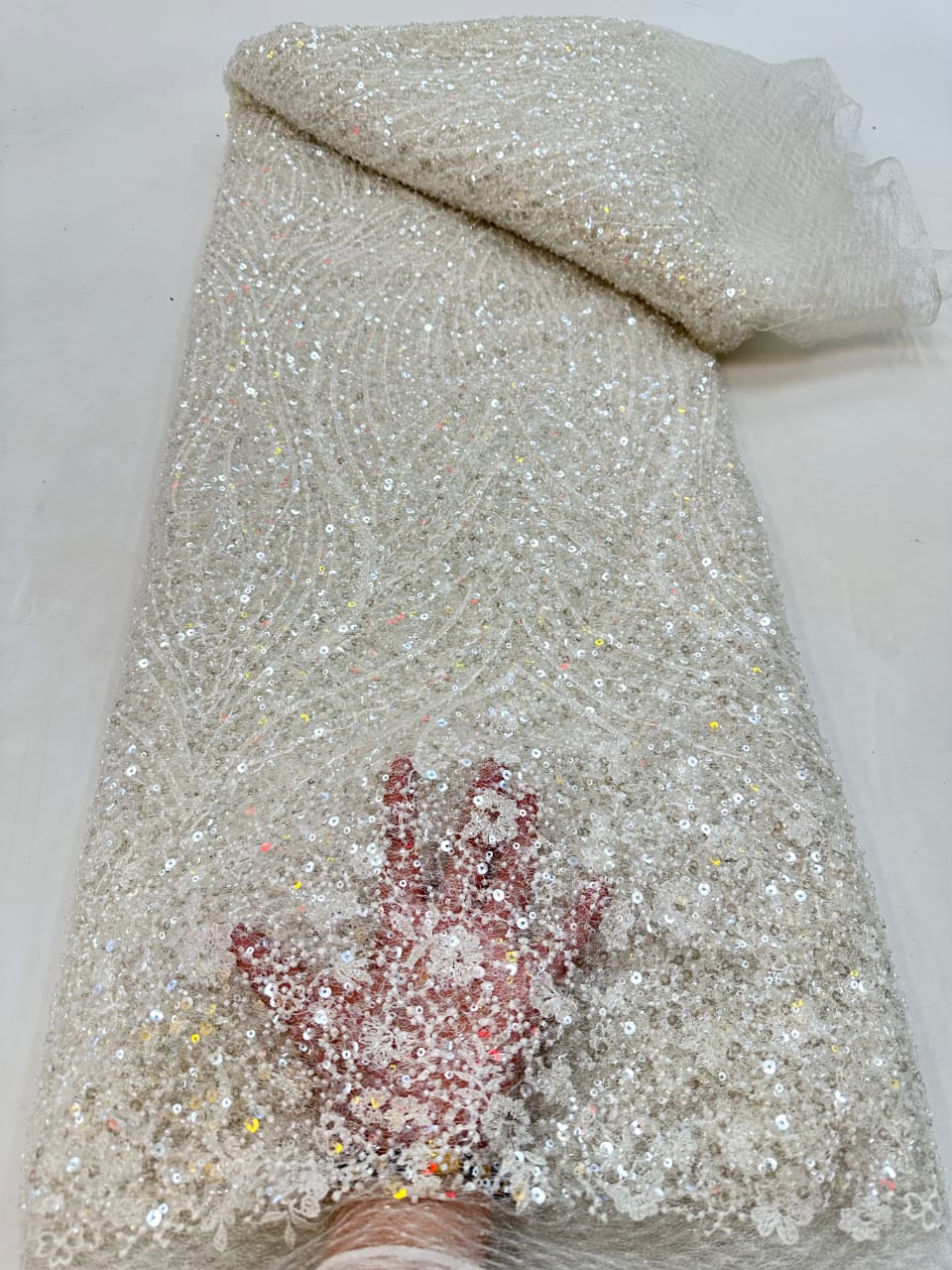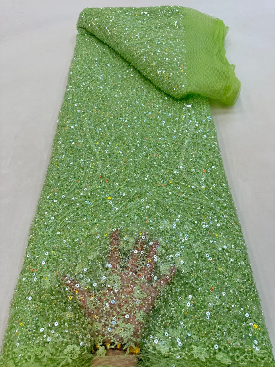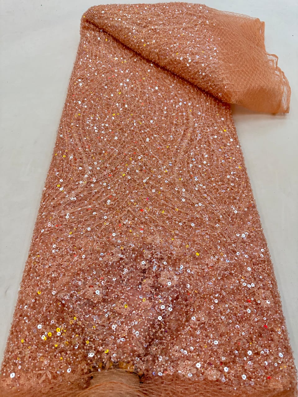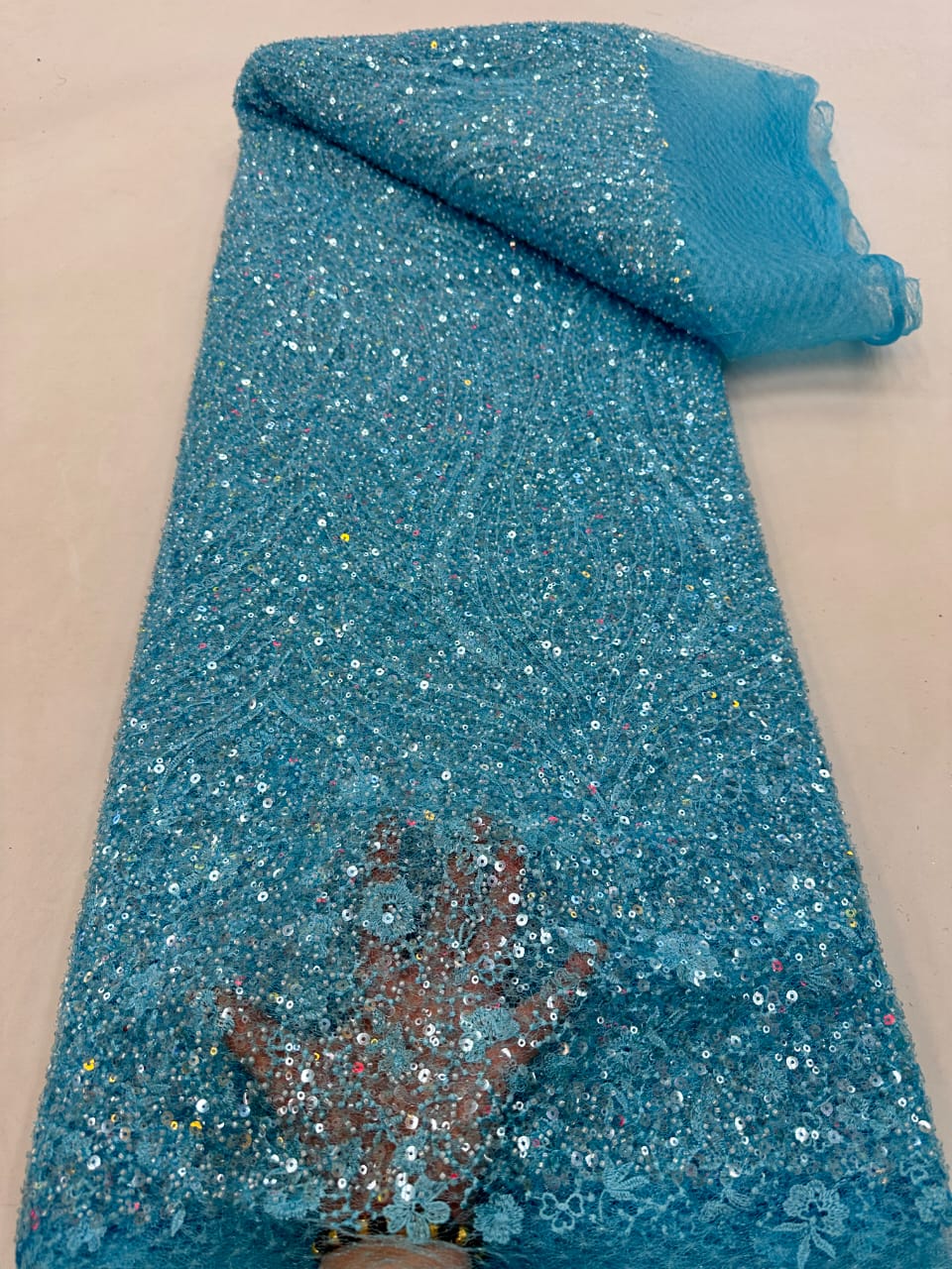 This high quality Fabric is measured in 5 Yards With Embroidered Beading and Sequin. It is soft, very delicate and beautiful.