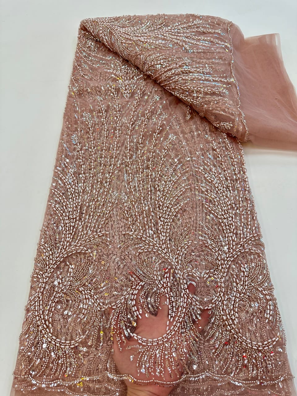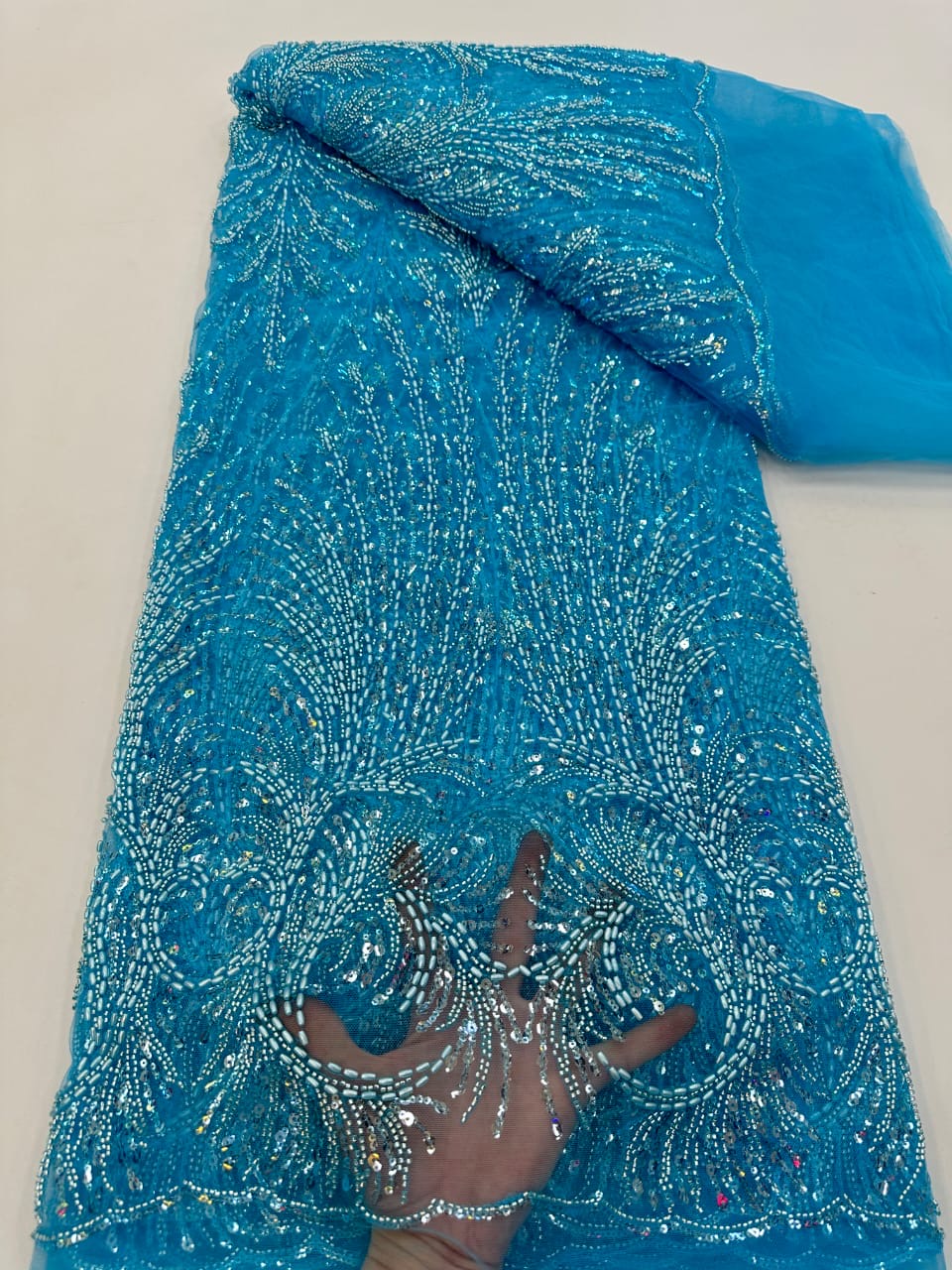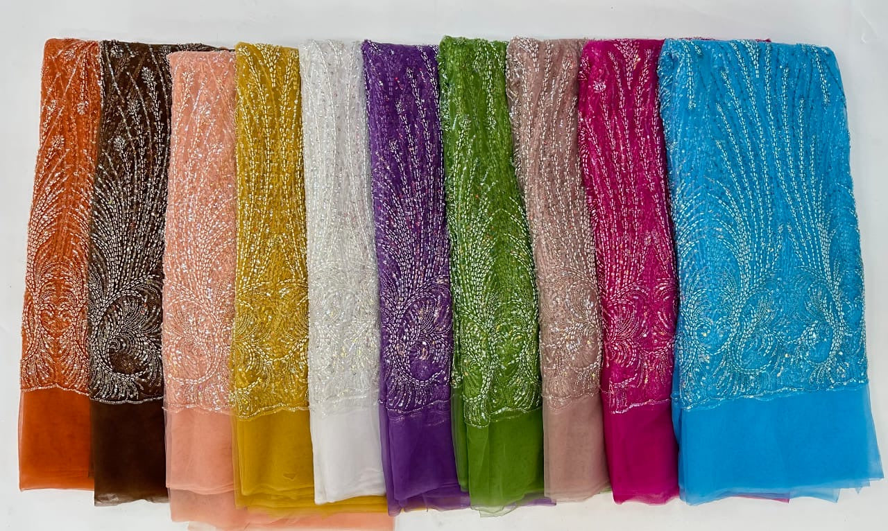 This high quality Fabric is measured in 5 Yards With Embroidered Beading and Sequin. It is soft, very delicate and beautiful.