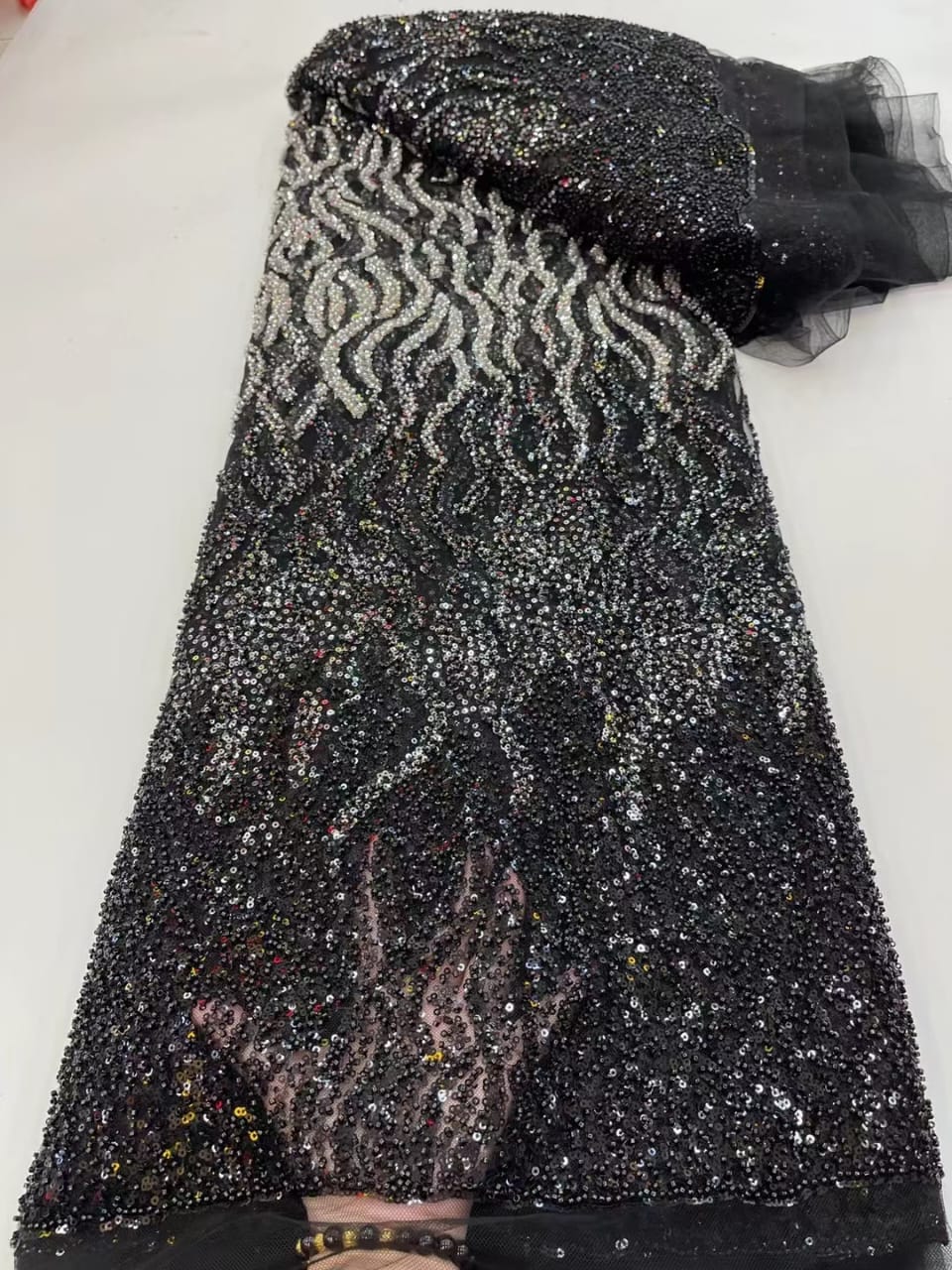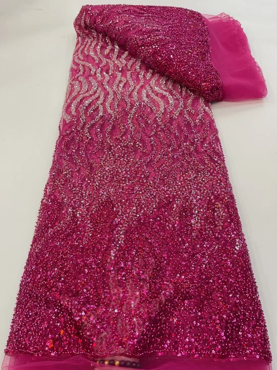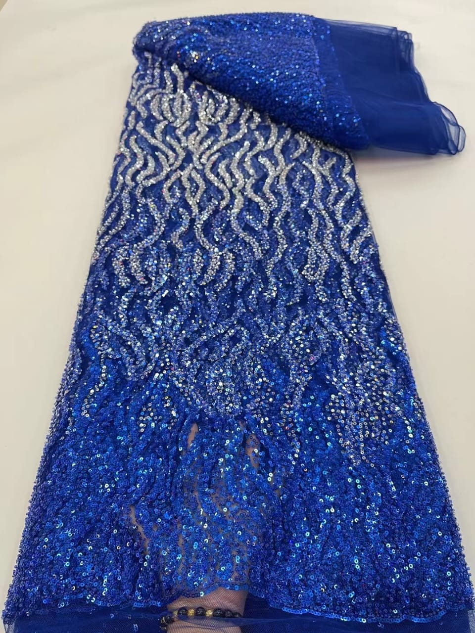 Esta tela de alta calidad se mide en 5 yardas con cuentas bordadas y lentejuelas. Es suave, muy delicado y bonito.