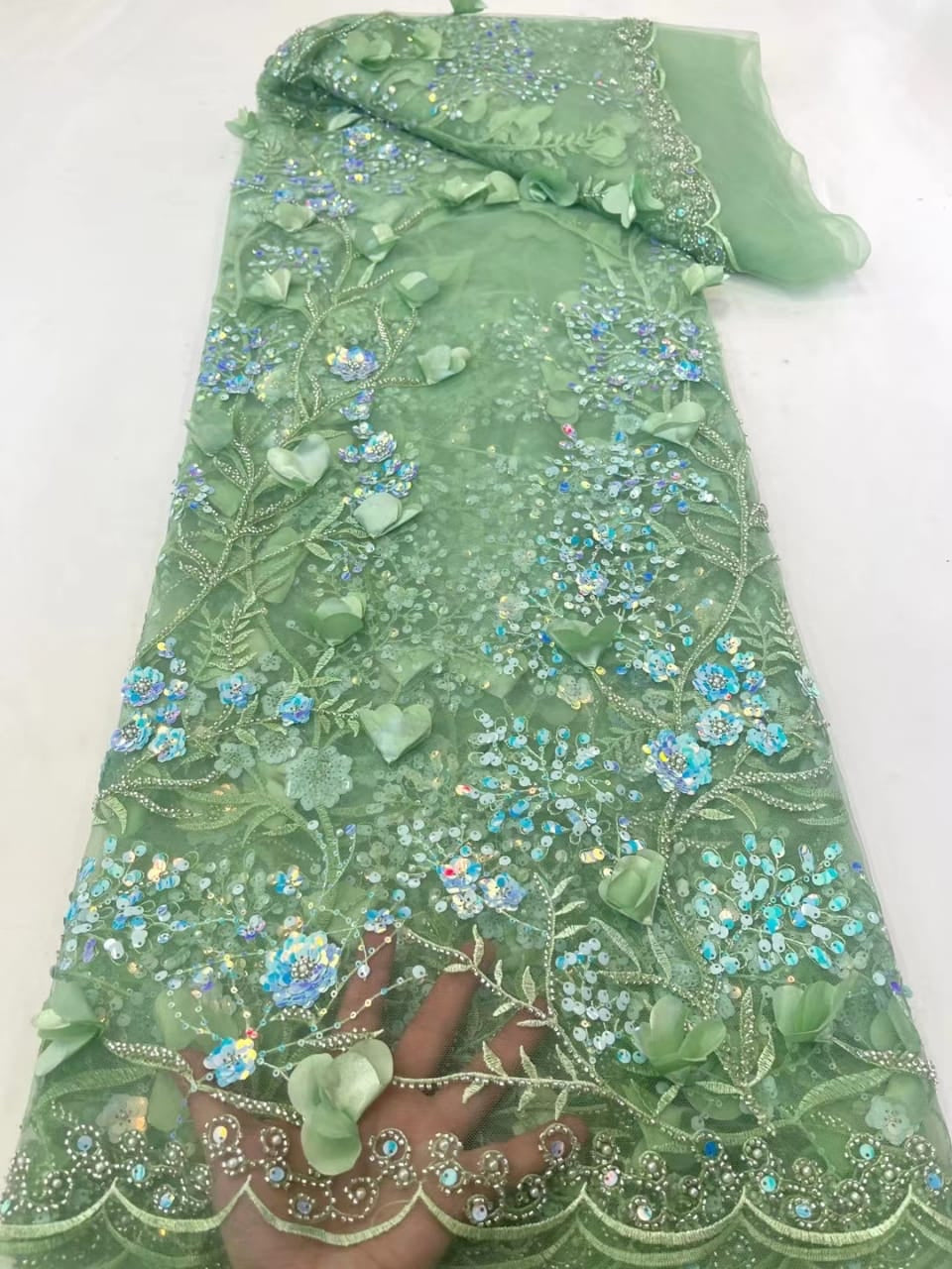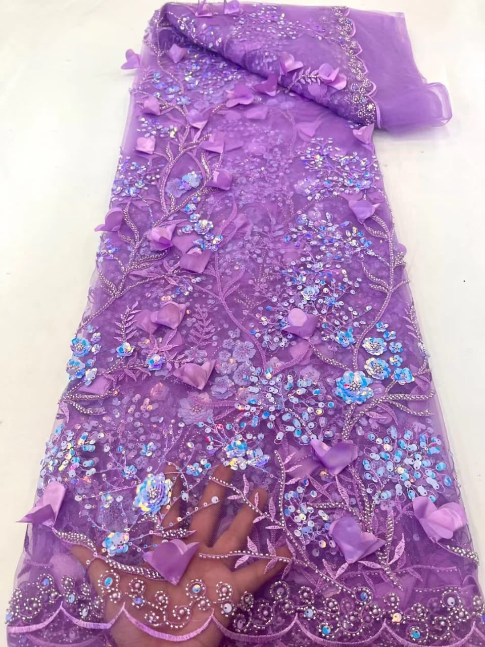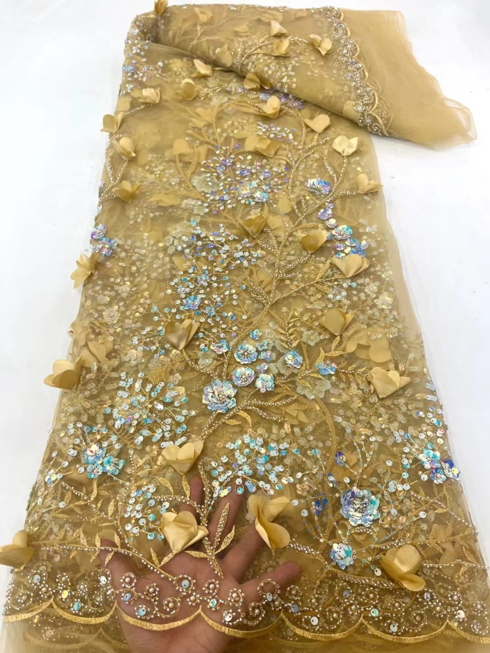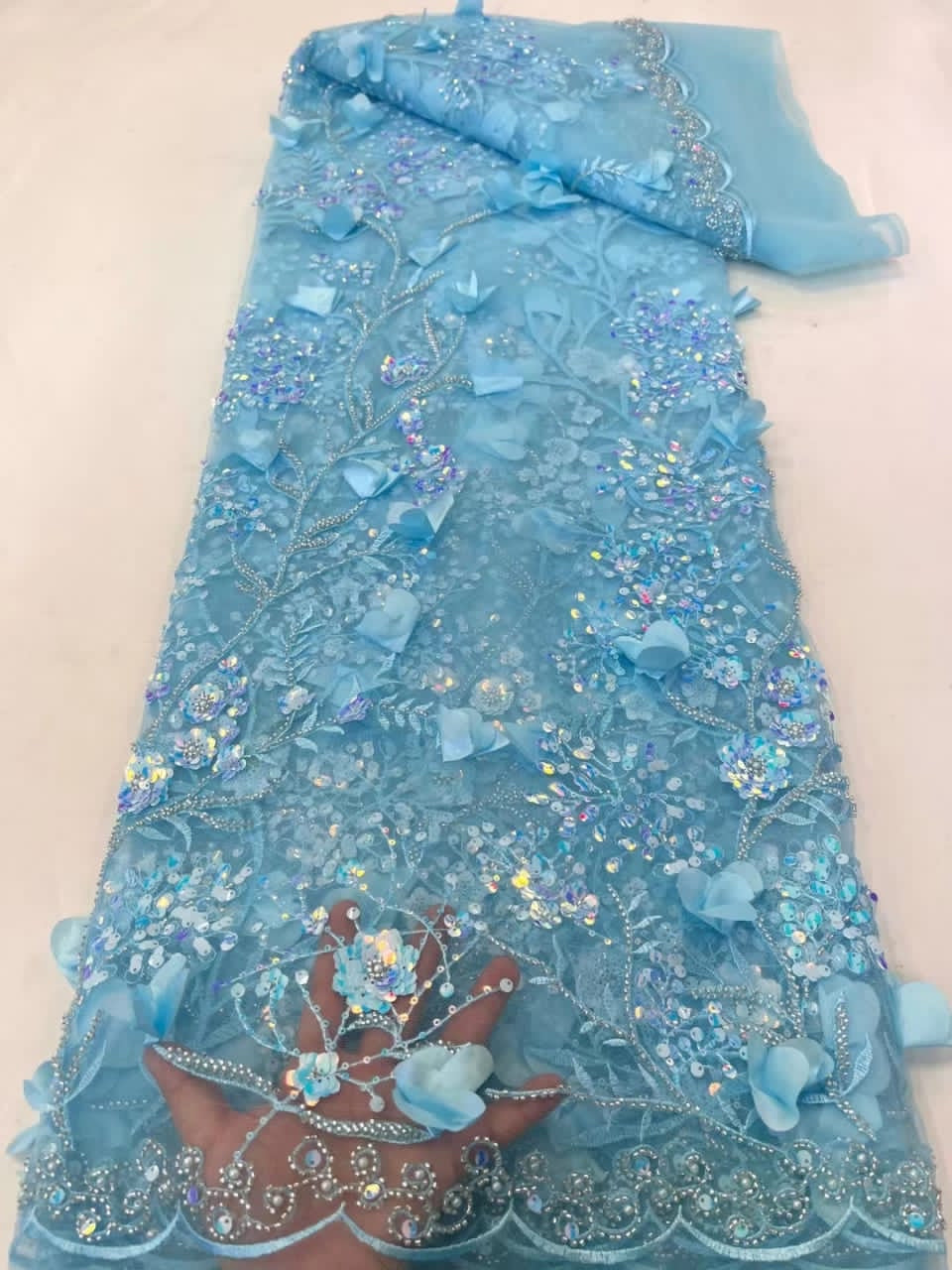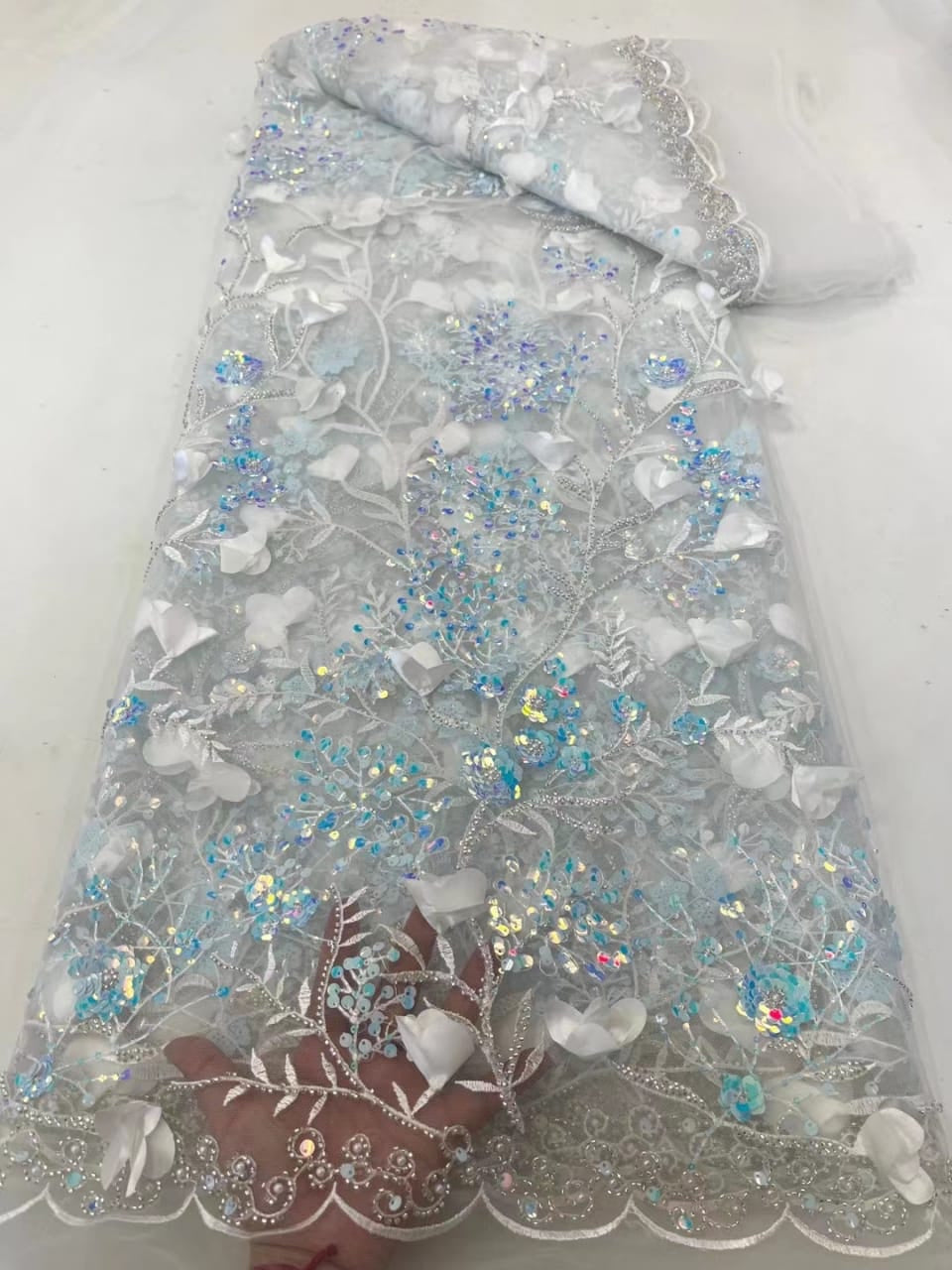Esta tela de alta calidad se mide en 5 yardas con cuentas bordadas y lentejuelas. Es suave, muy delicado y bonito.