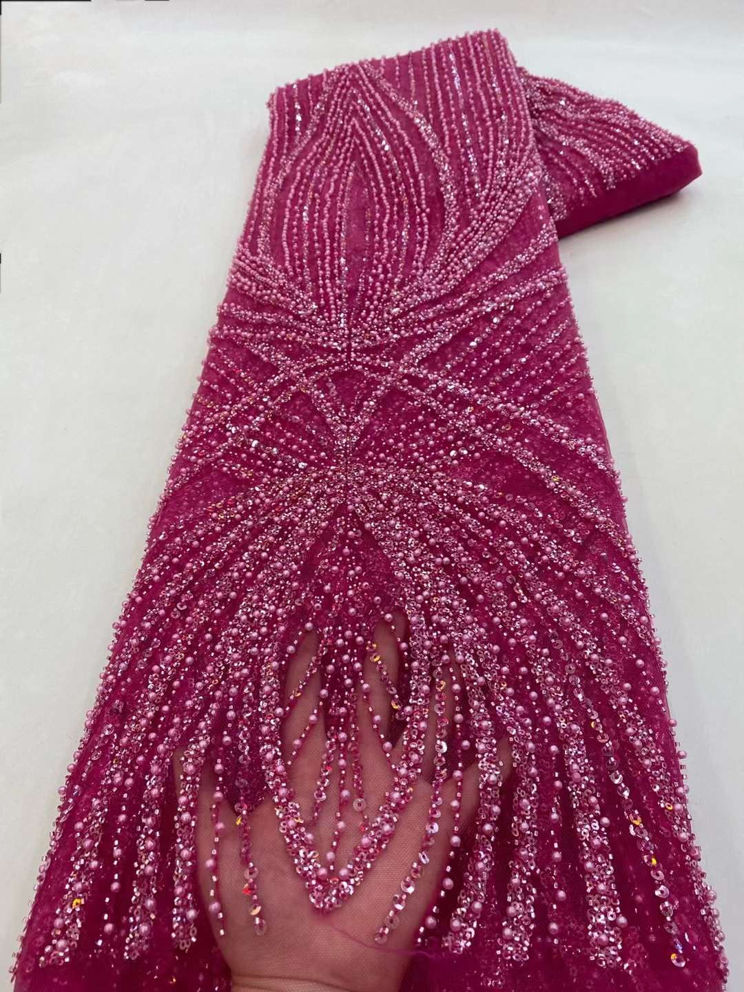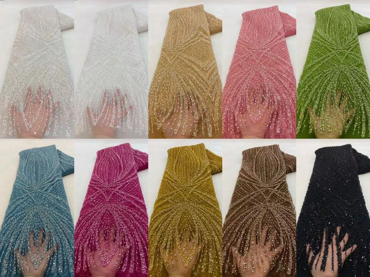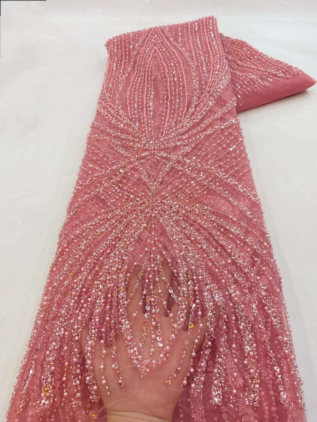Esta tela de alta calidad se mide en 5 yardas con cuentas bordadas y lentejuelas. Es suave, muy delicado y bonito.