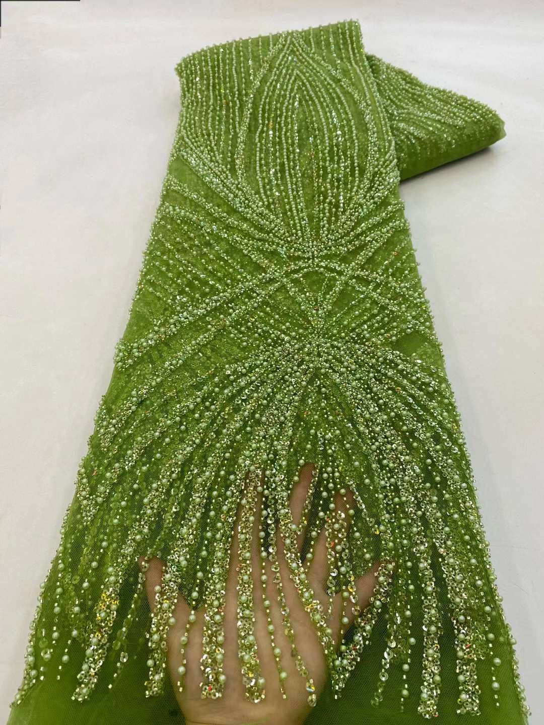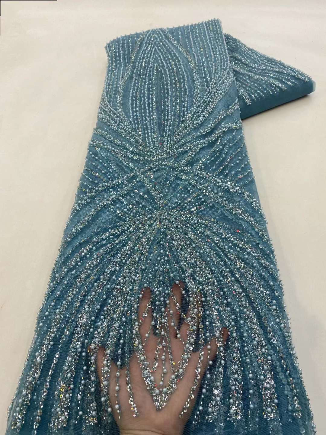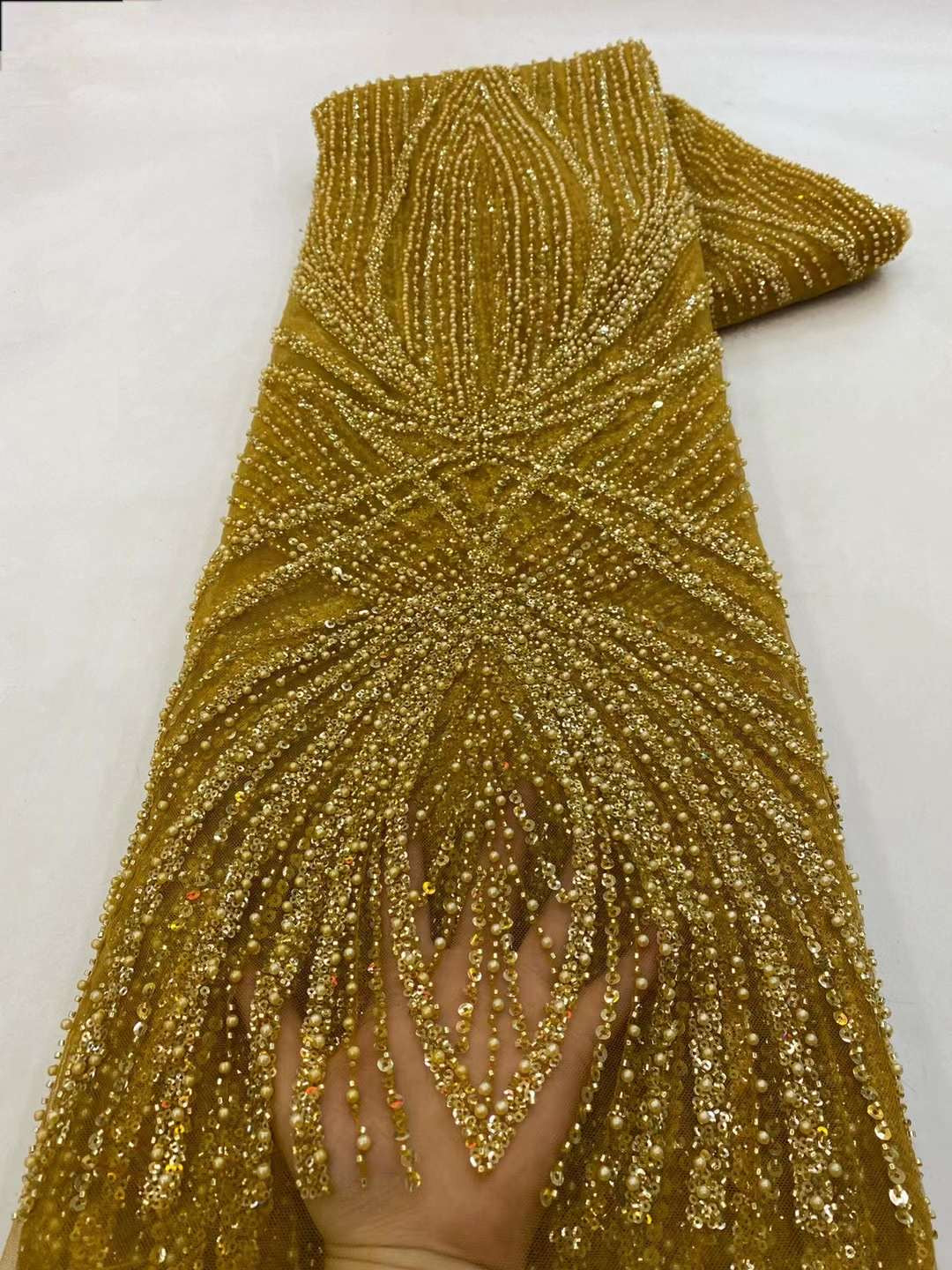 Esta tela de alta calidad se mide en 5 yardas con cuentas bordadas y lentejuelas. Es suave, muy delicado y bonito.