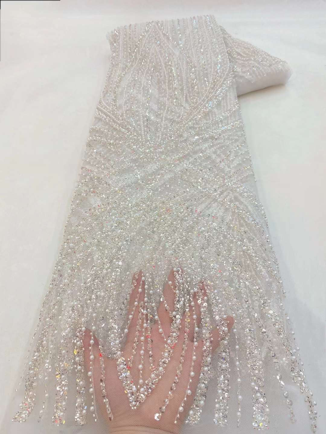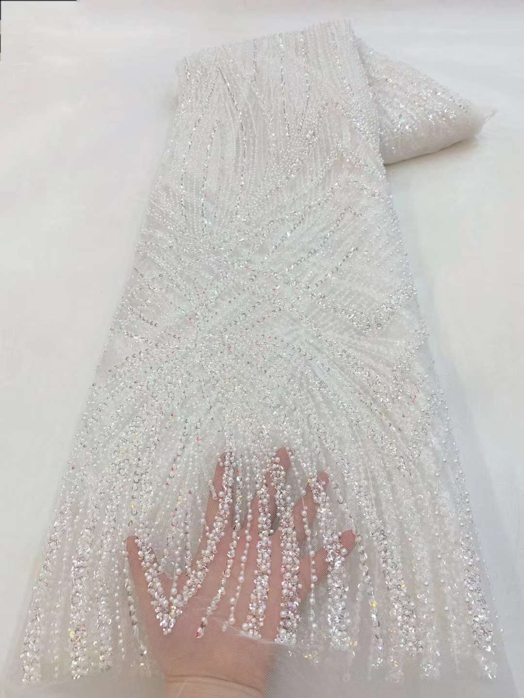 Esta tela de alta calidad está hecha con pedrería bordada a la moda y se puede usar para hacer vestidos de novia, faldas, chales, bufandas y otras prendas de moda que desee.