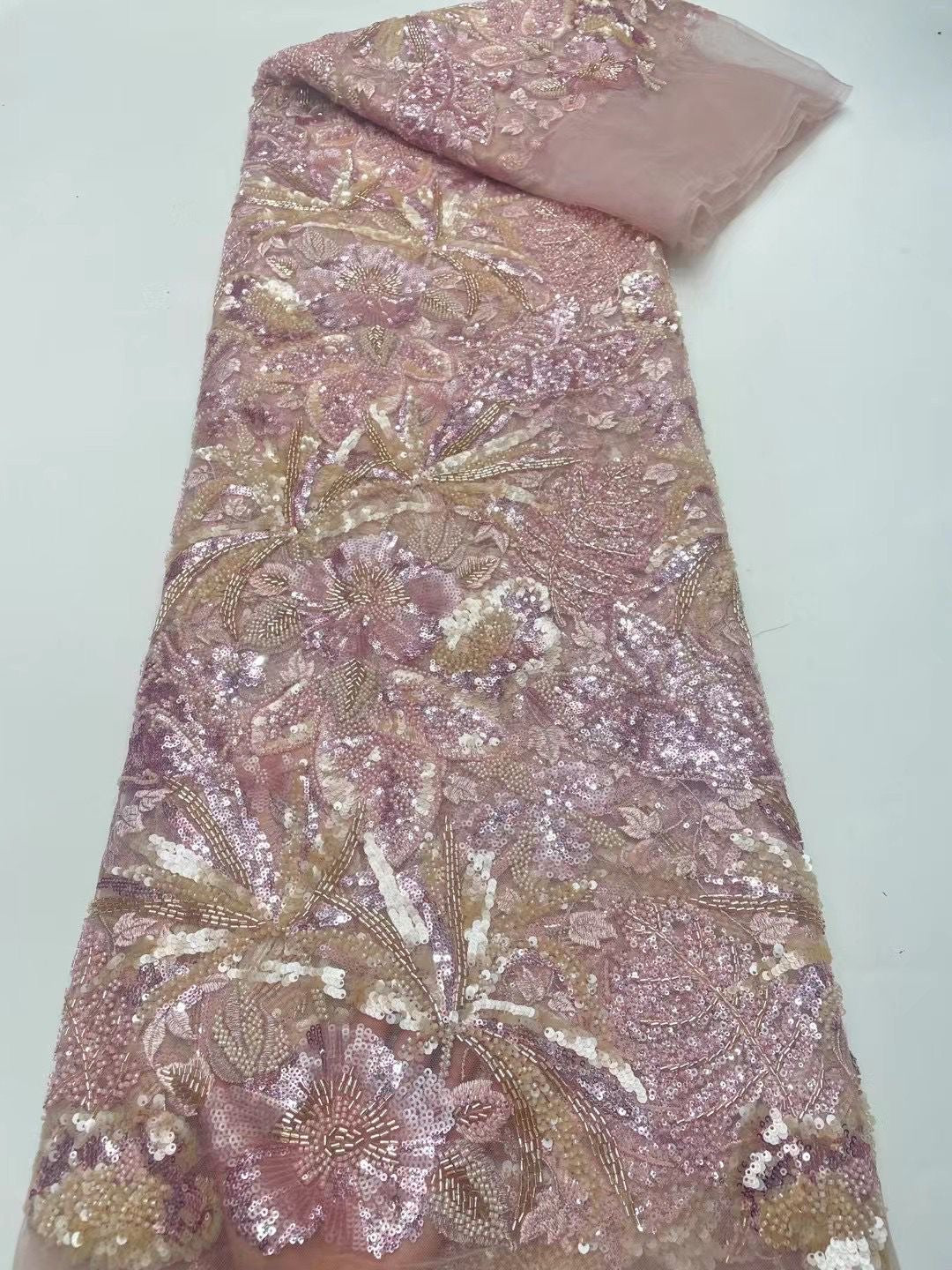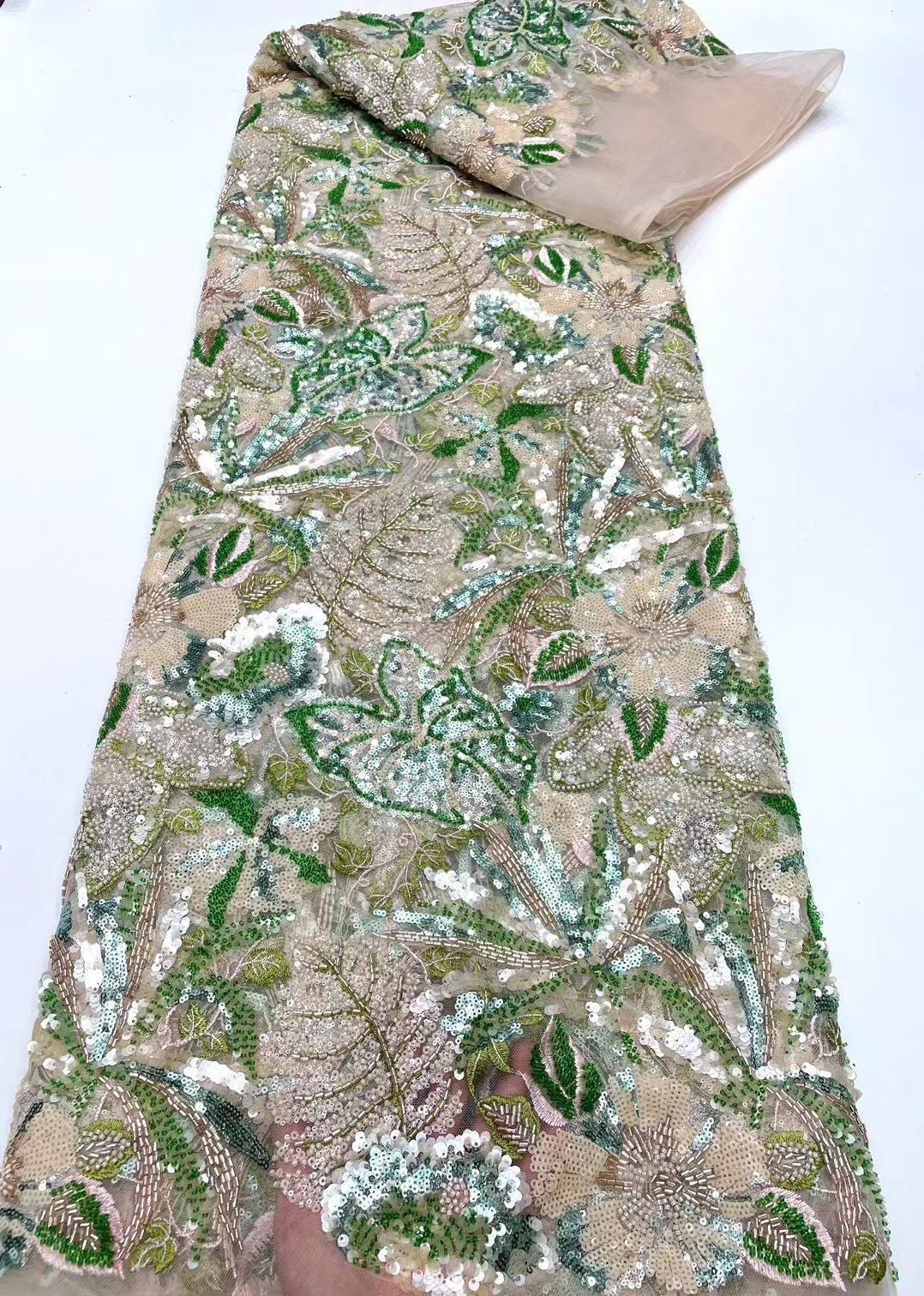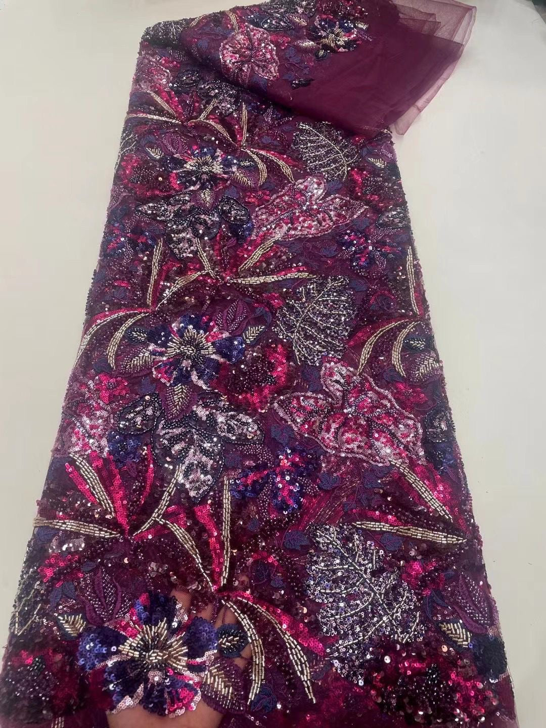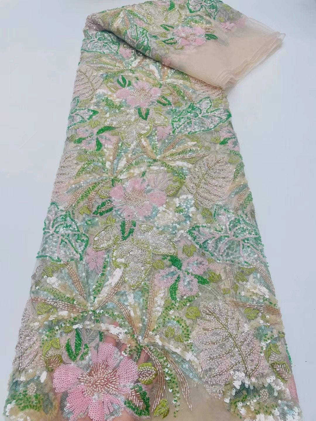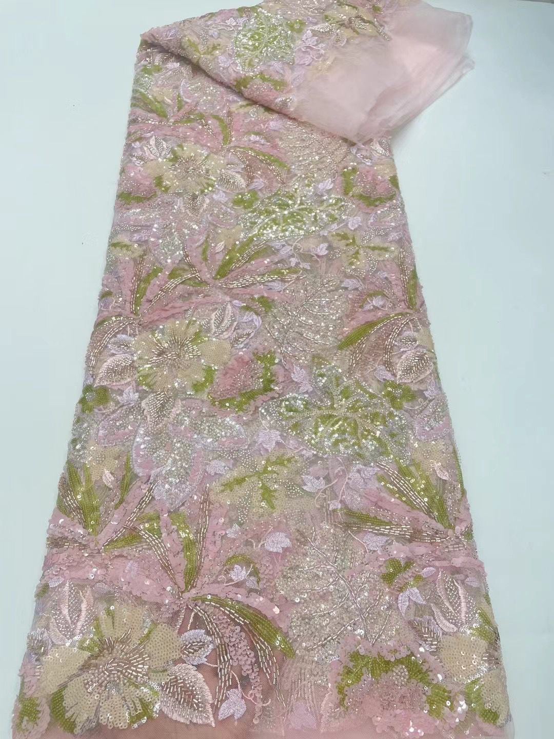 This high quality Fabric is measured in 5 Yards With Embroidered Beading and Sequin. It is soft, very delicate and beautiful.