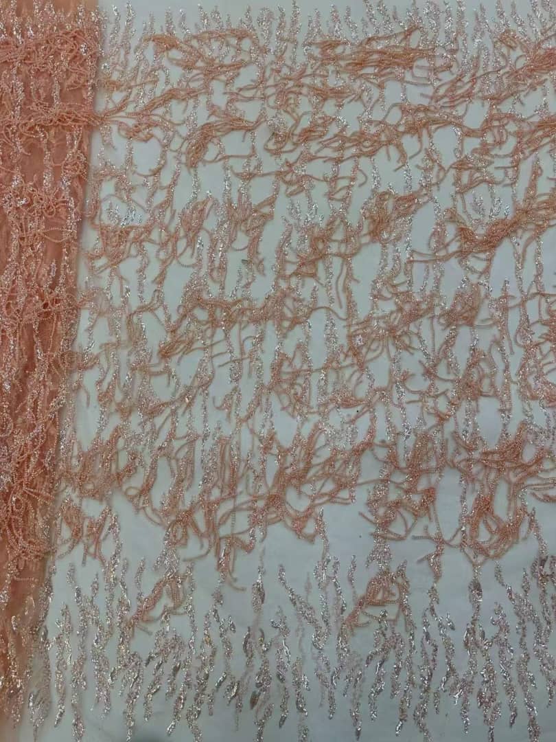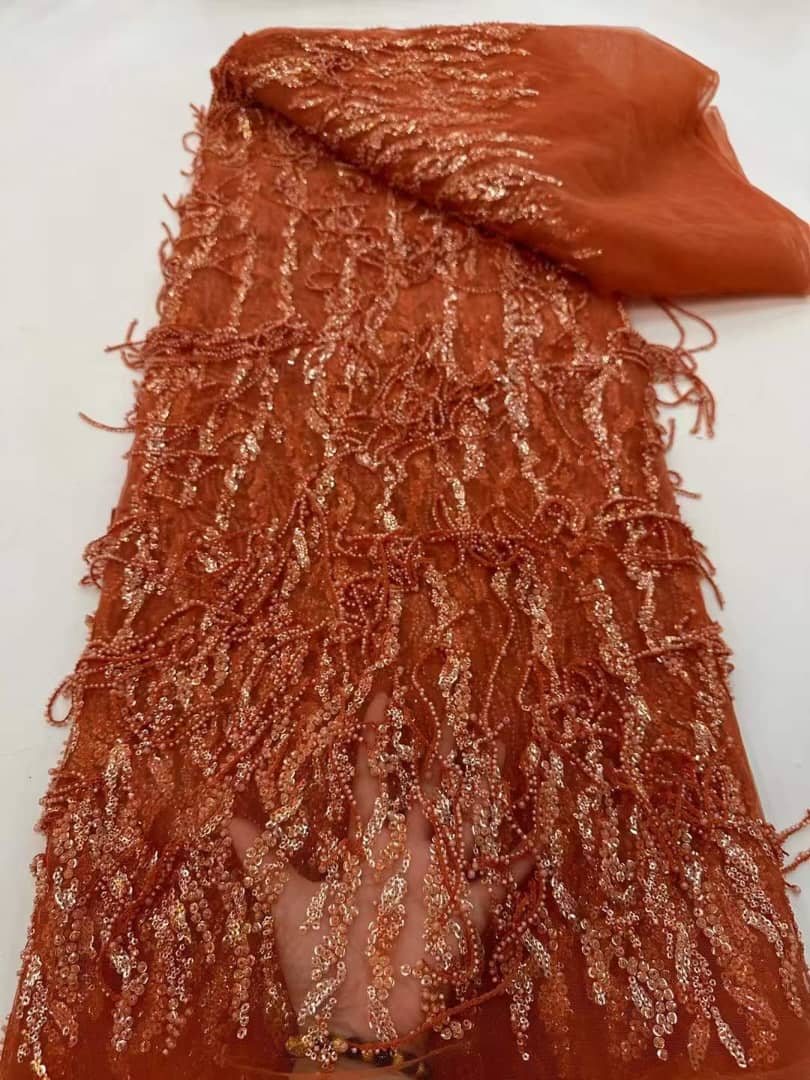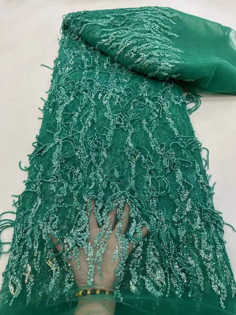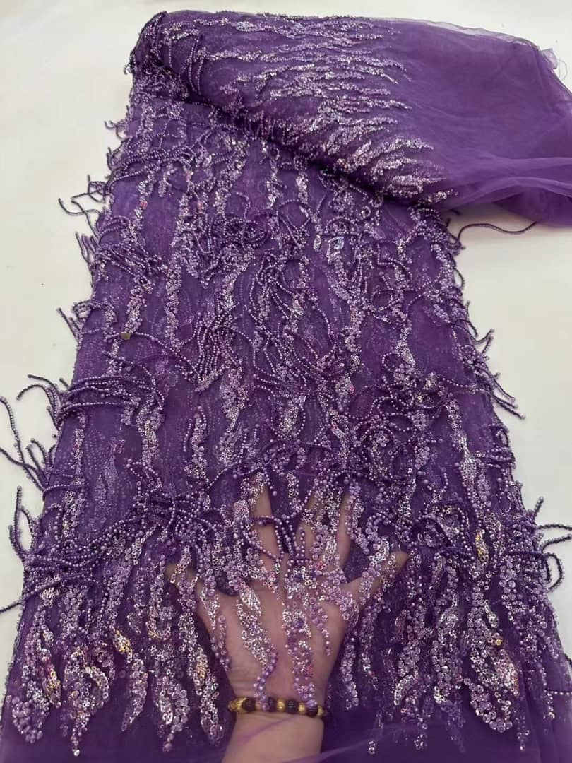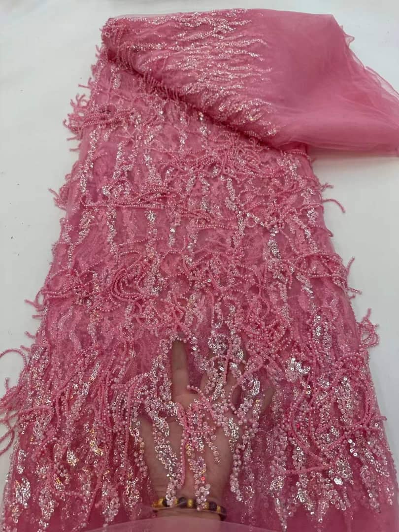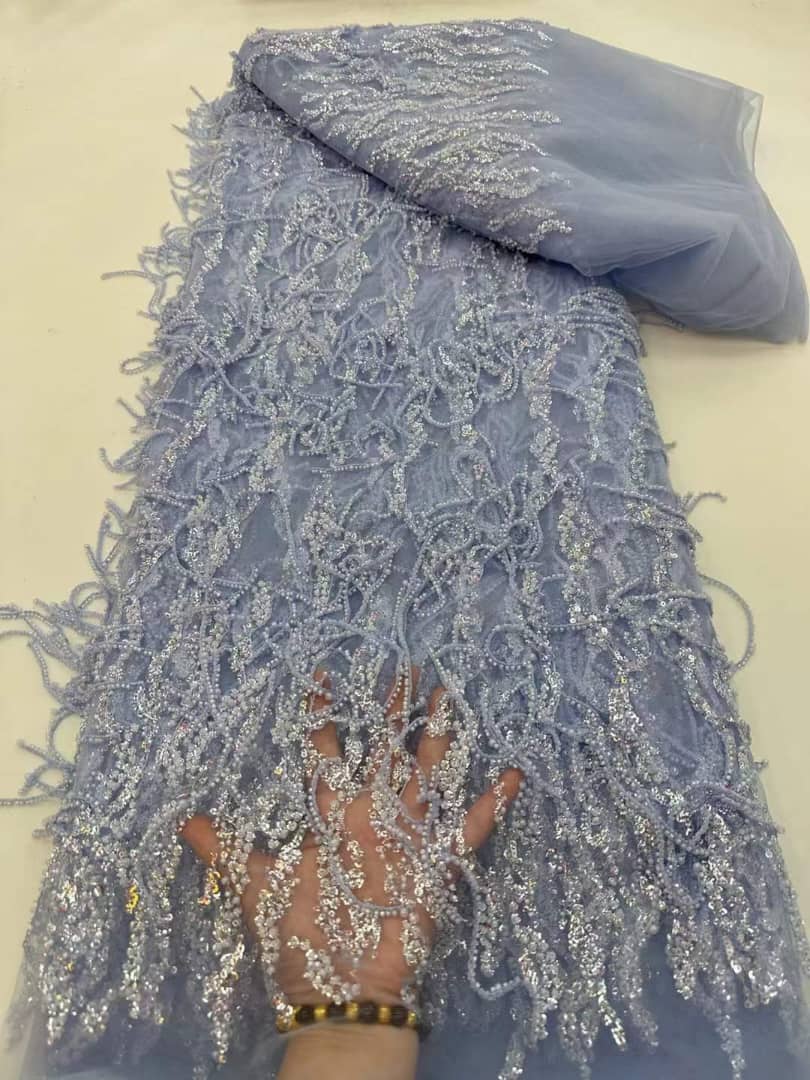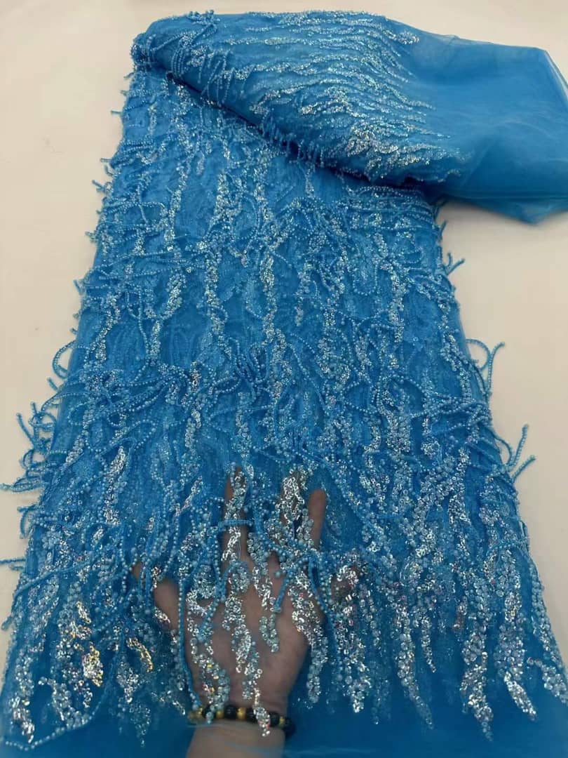 Esta tela de alta calidad se mide en 5 yardas con cuentas bordadas y lentejuelas. Es suave, muy delicado y bonito.