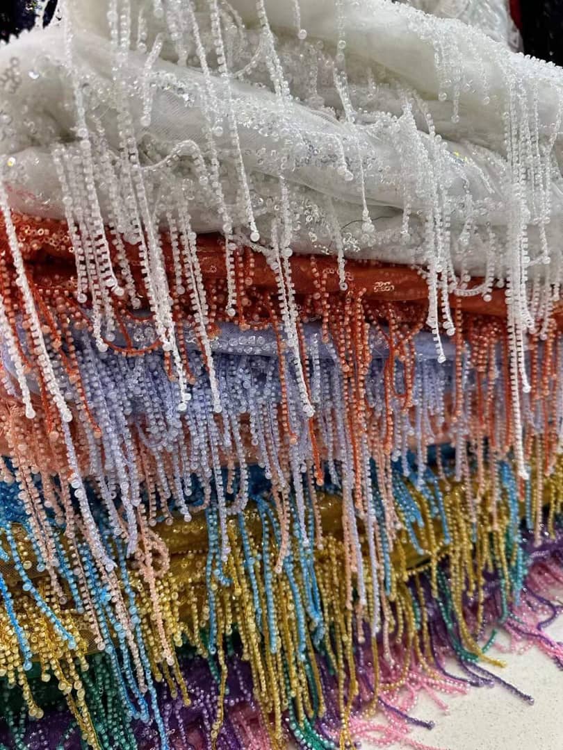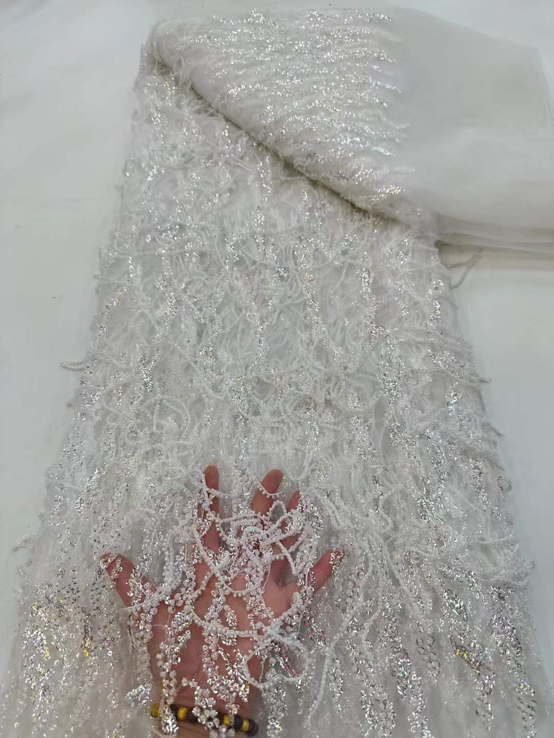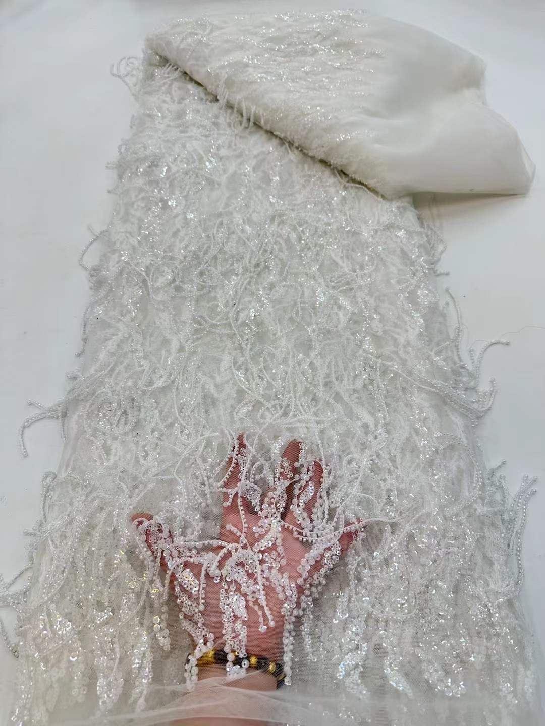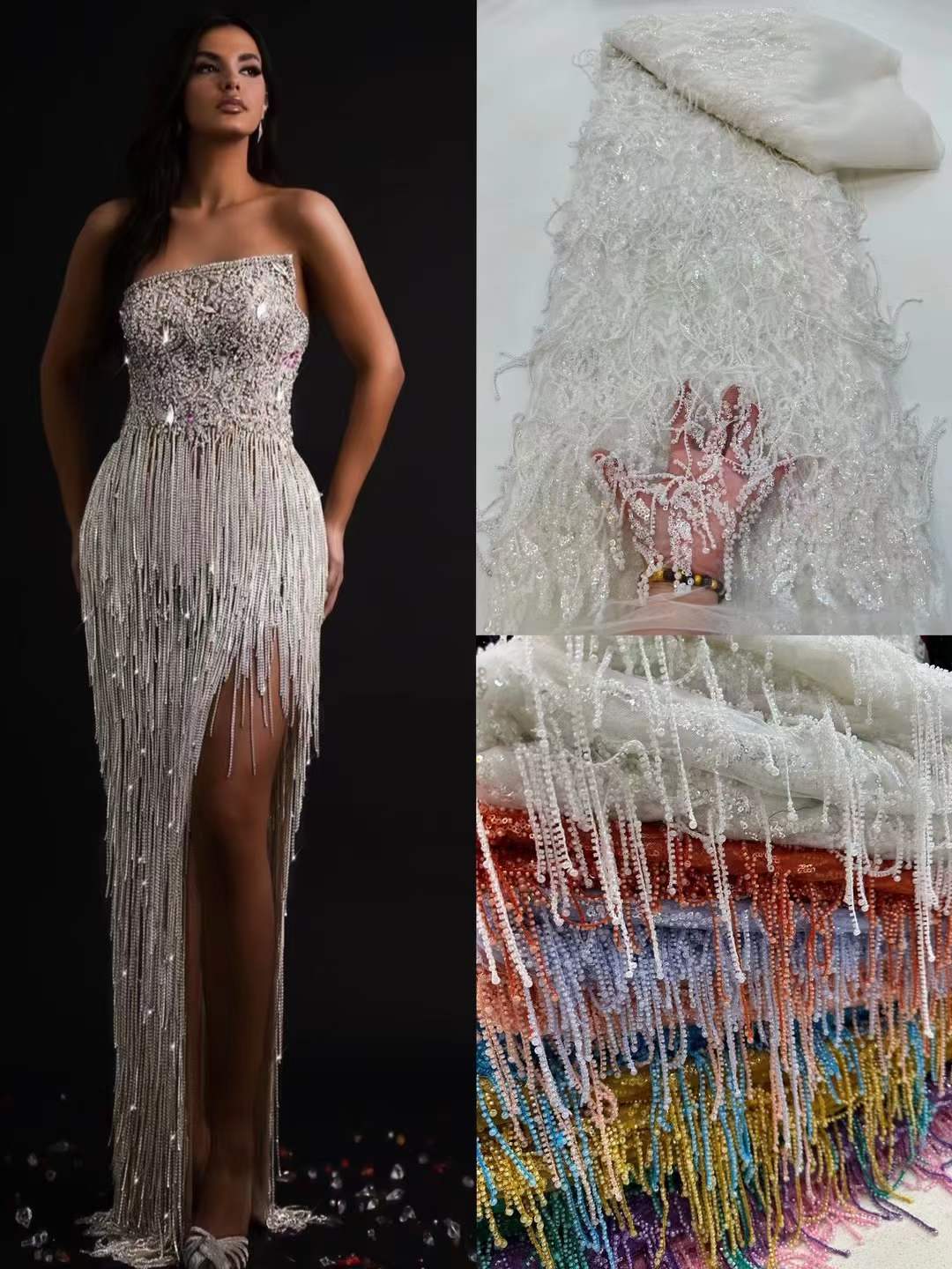 Esta tela de alta calidad está hecha con pedrería bordada a la moda y se puede usar para hacer vestidos de novia, faldas, chales, bufandas y otras prendas de moda que desee.
