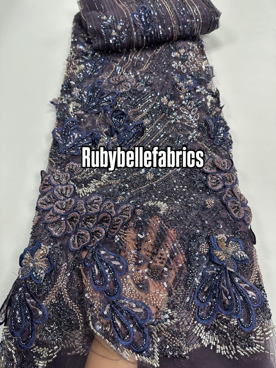 Material: High-quality lace base with sequins & bead embroidery