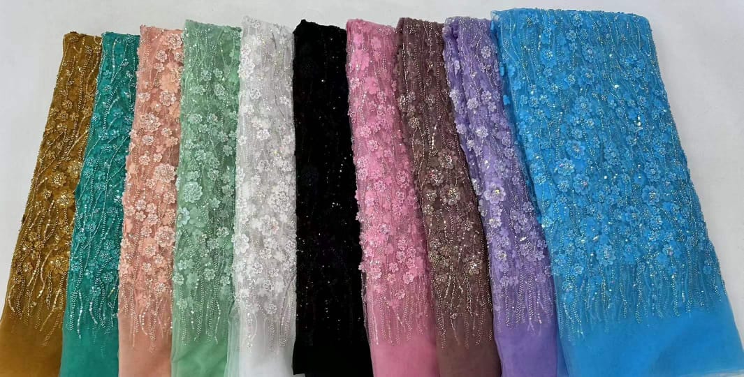Esta tela de alta calidad está hecha con pedrería bordada a la moda y se puede usar para hacer vestidos de novia, faldas, chales, bufandas y otras prendas de moda que desee.