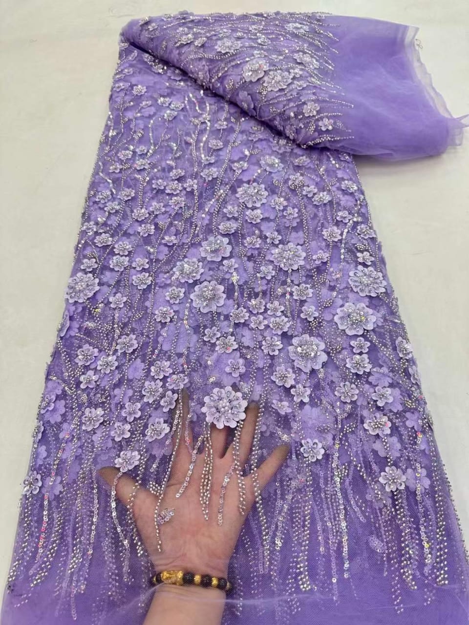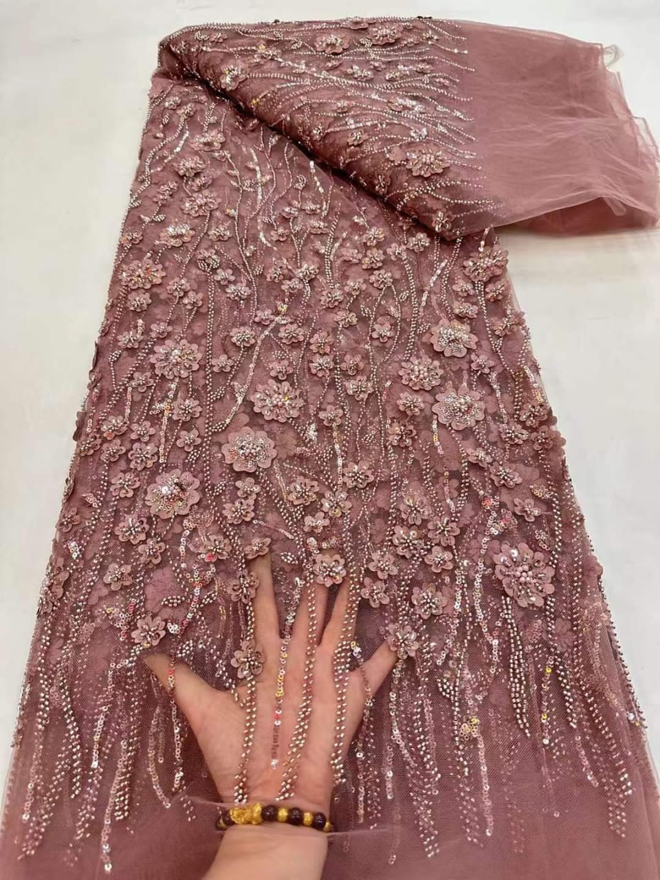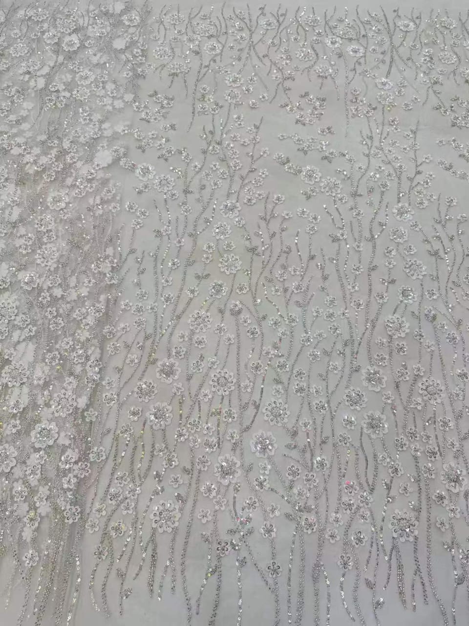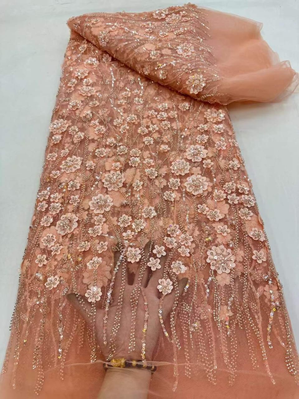 Esta tela de alta calidad se mide en 5 yardas con cuentas bordadas y lentejuelas. Es suave, muy delicado y bonito.