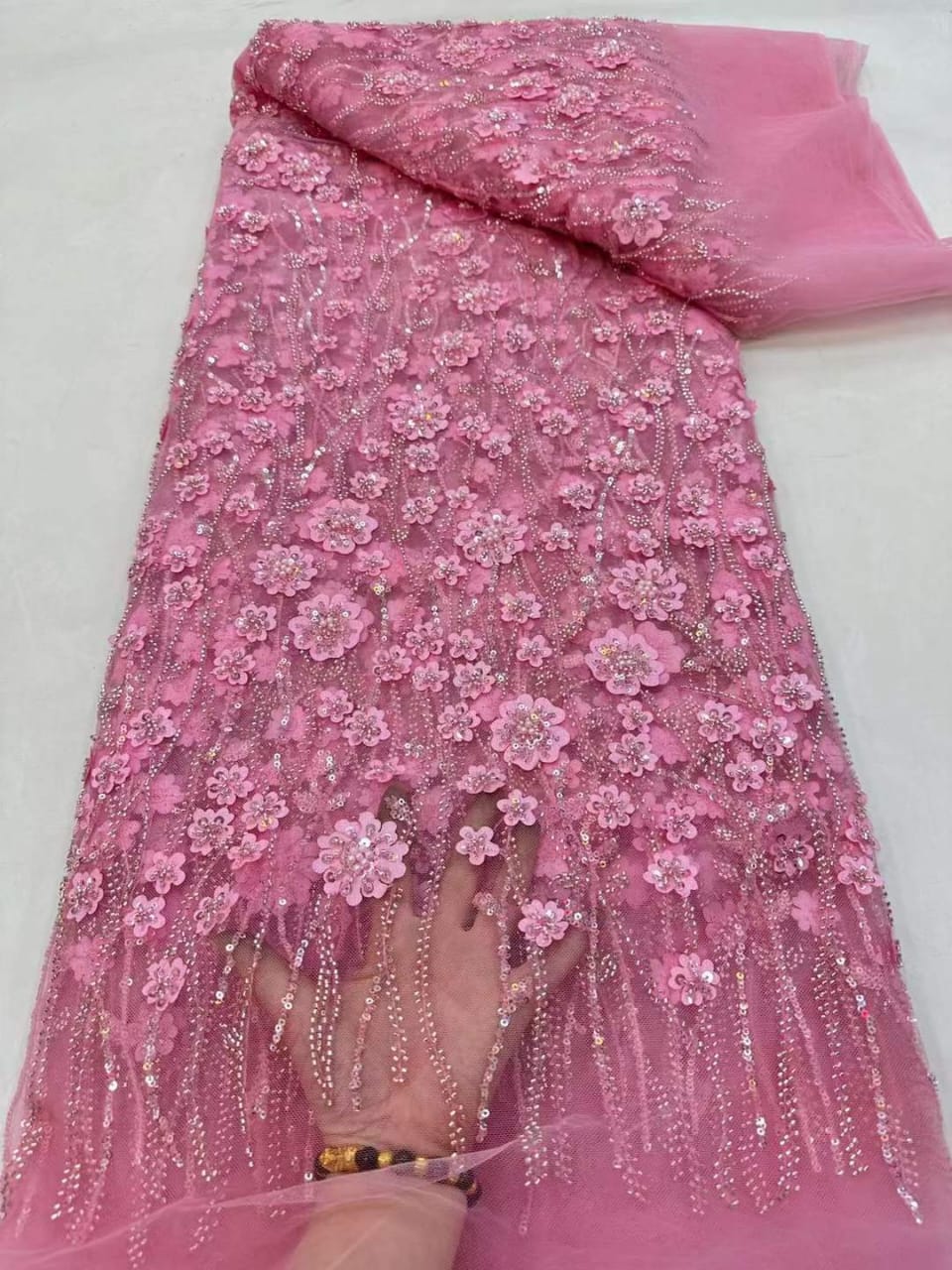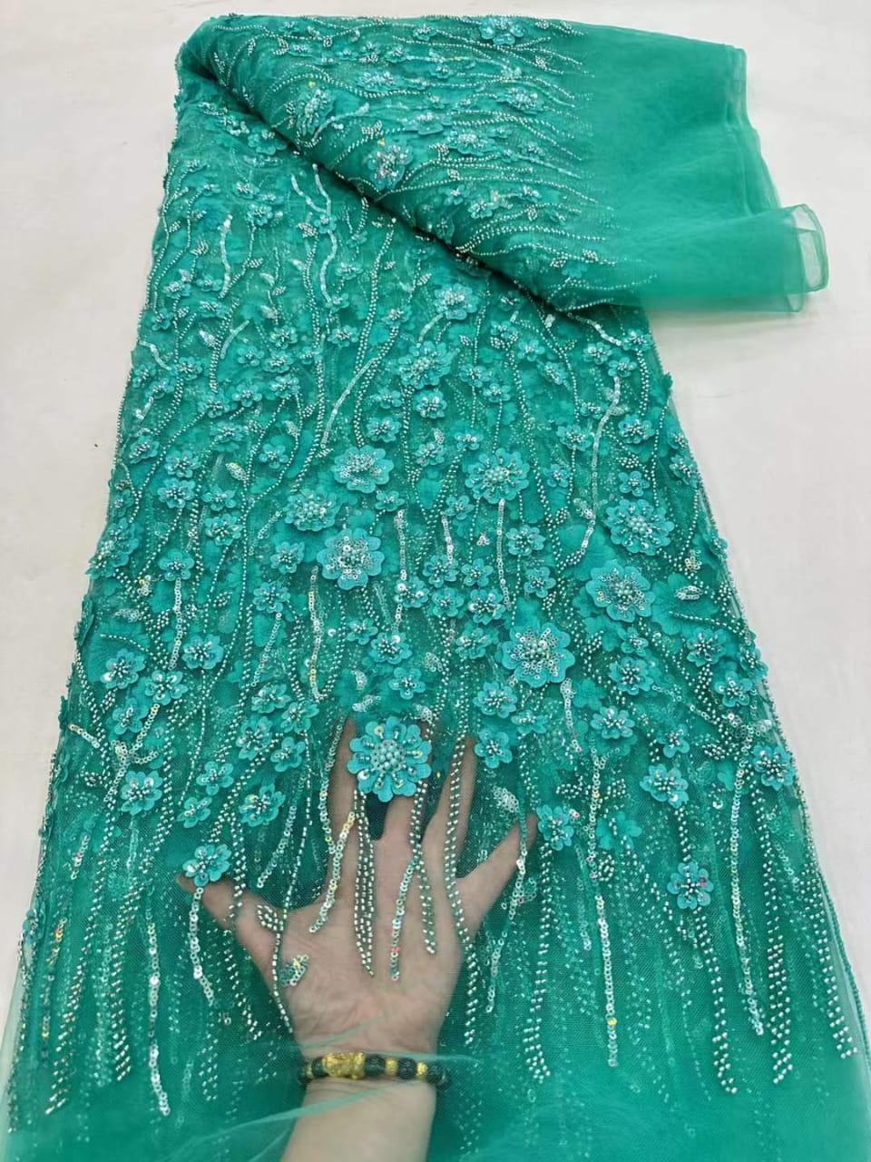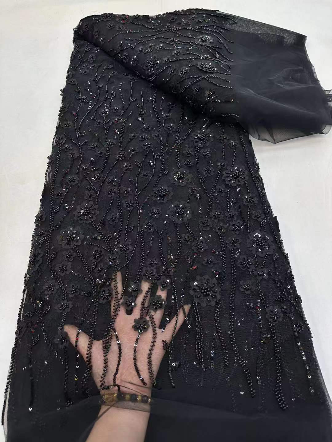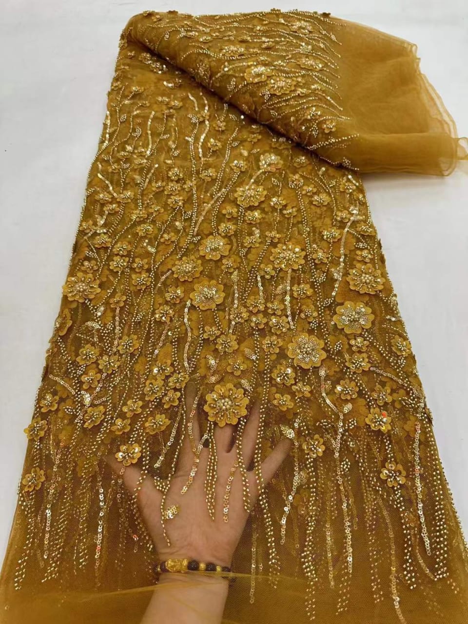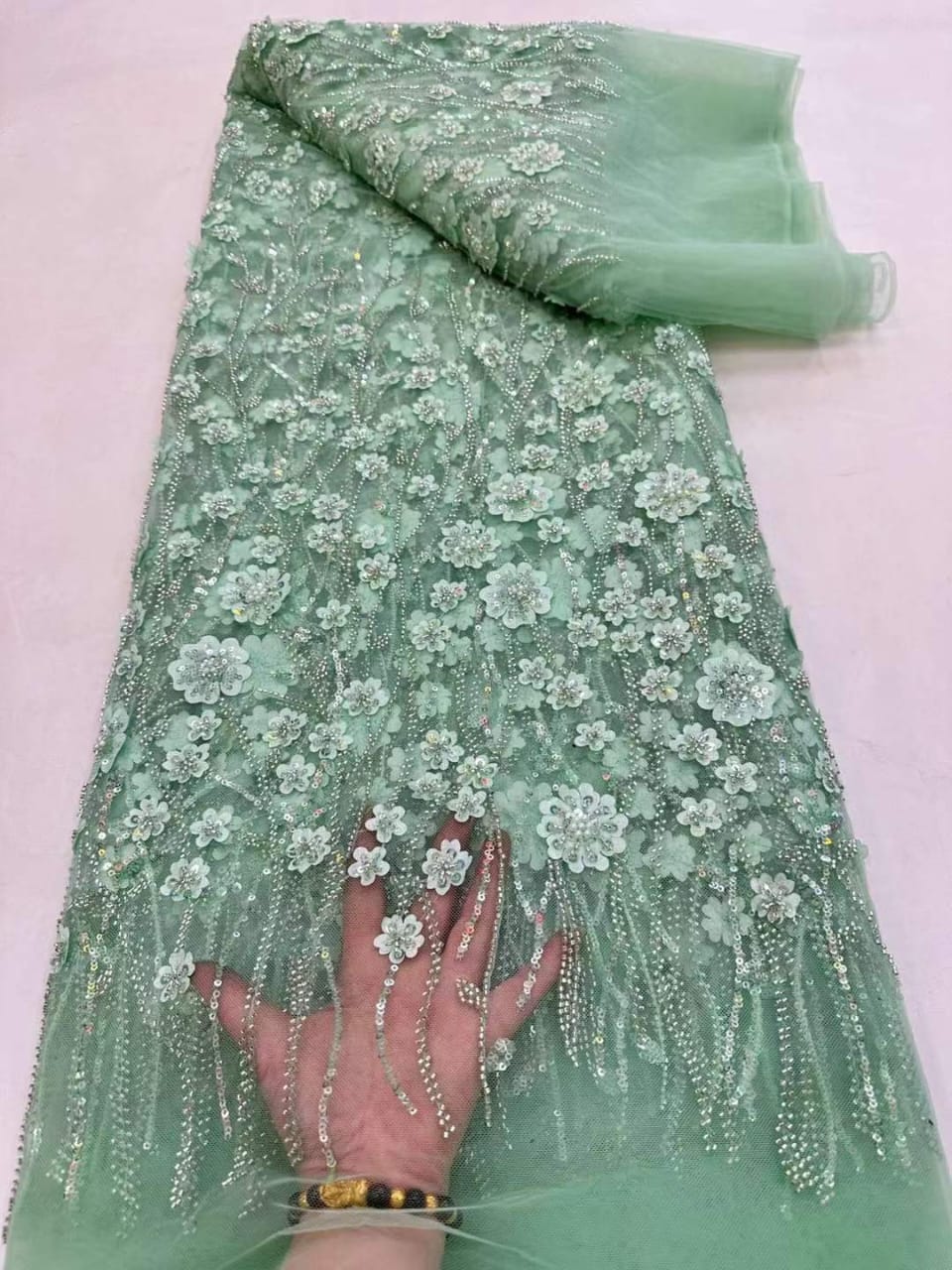 Esta tela de alta calidad se mide en 5 yardas con cuentas bordadas y lentejuelas. Es suave, muy delicado y bonito.