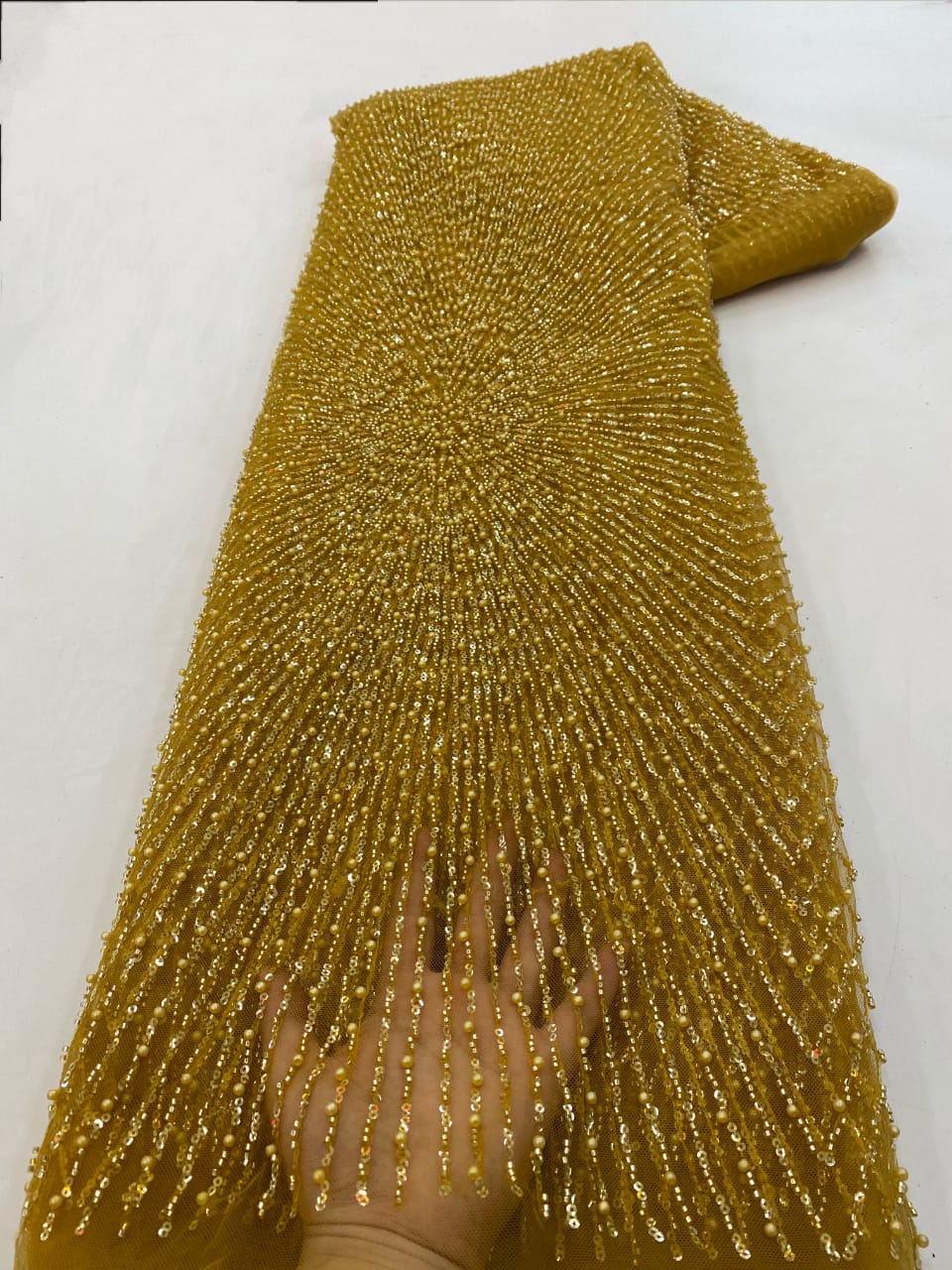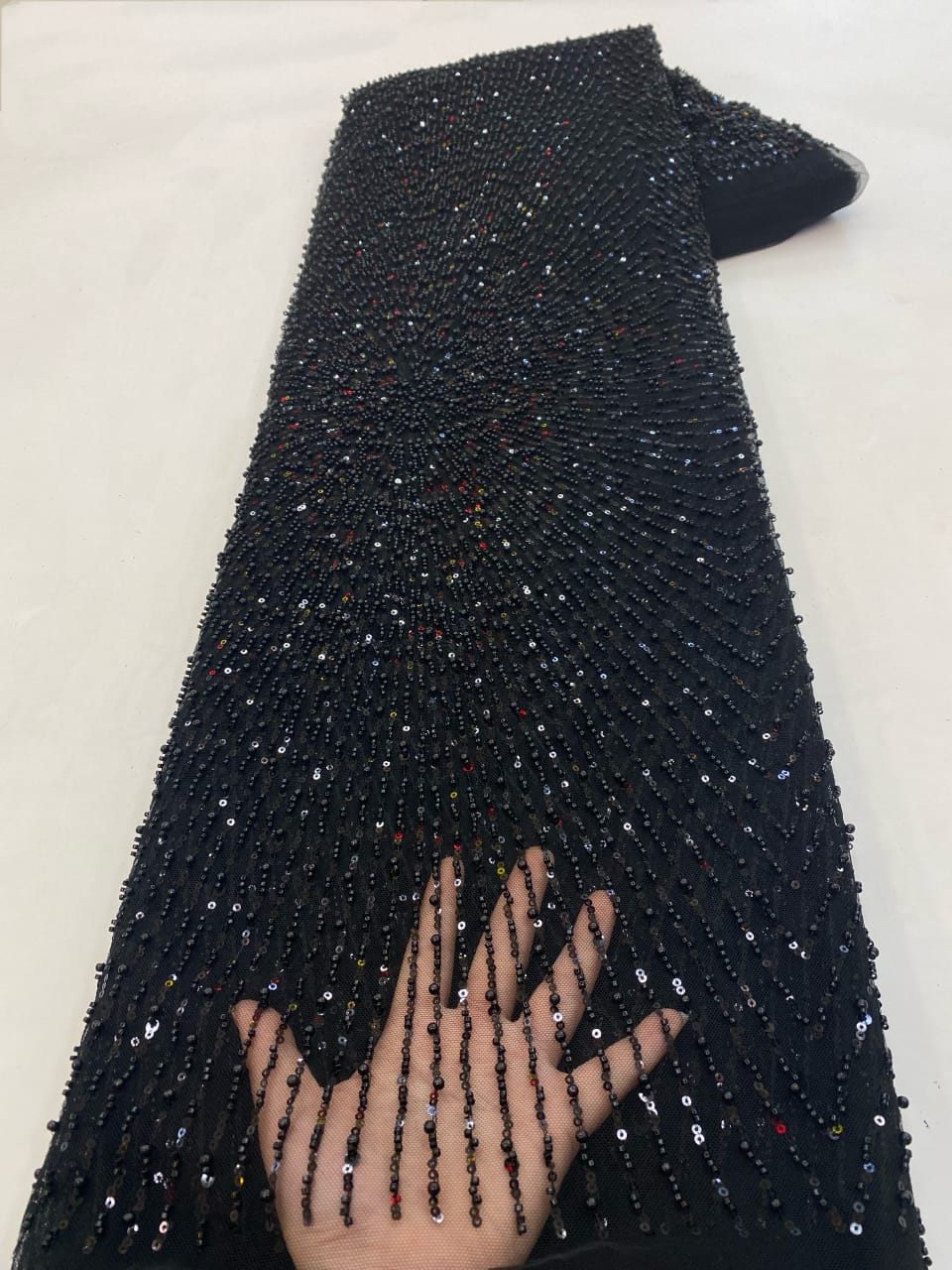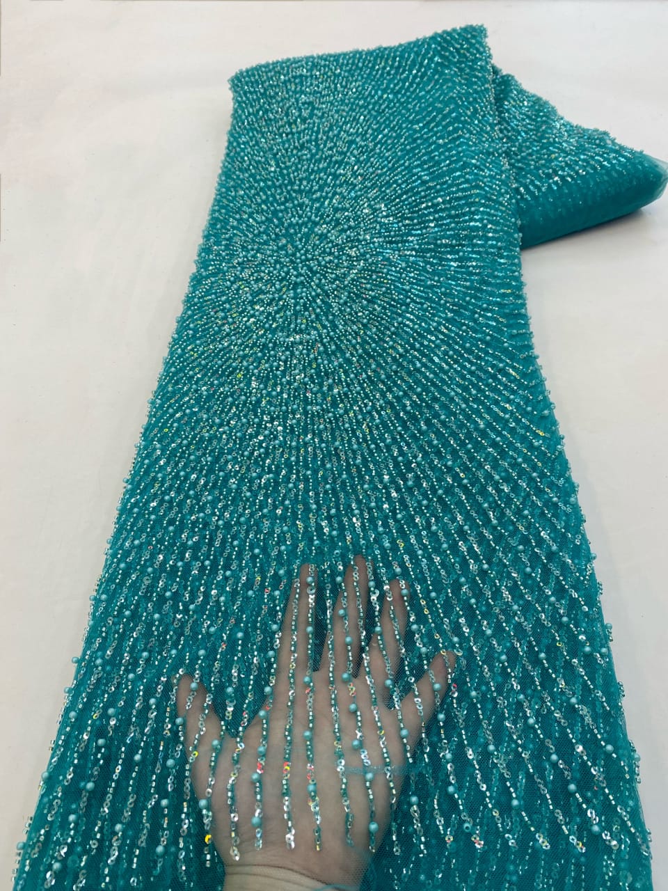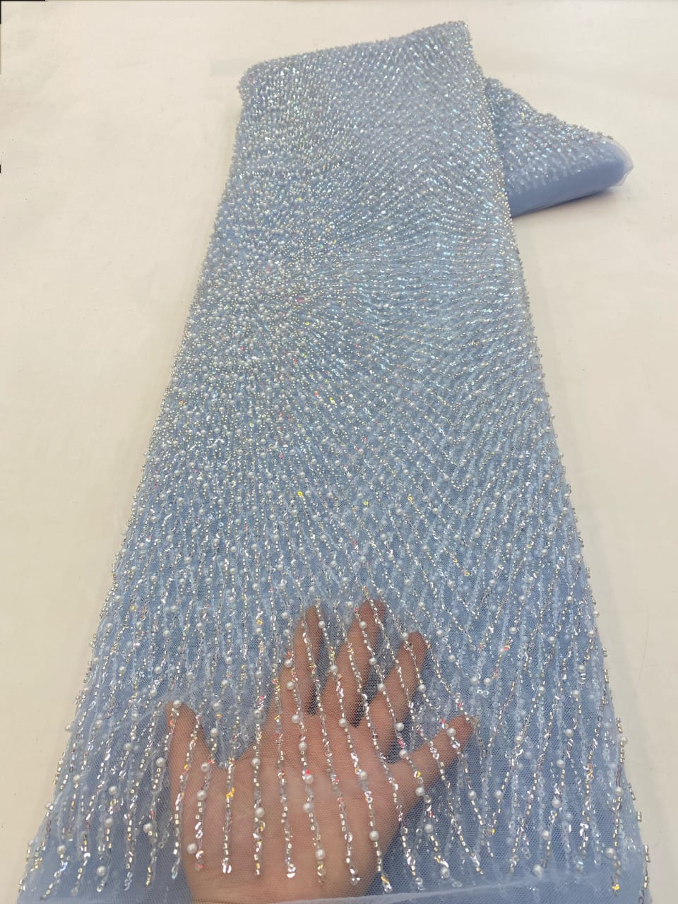 Esta tela de alta calidad se mide en 5 yardas con cuentas bordadas y lentejuelas. Es suave, muy delicado y bonito.