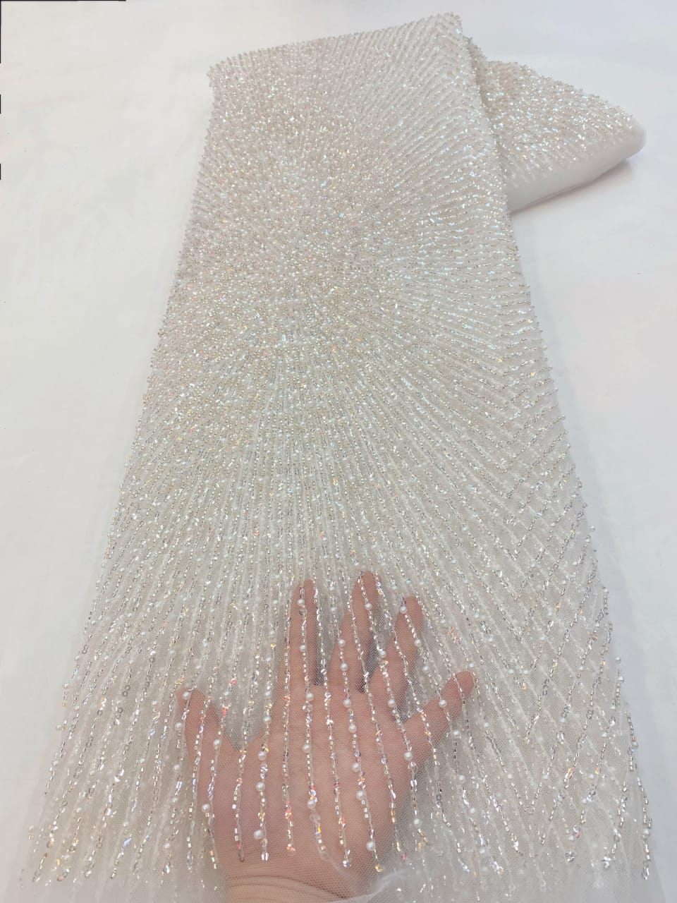 Esta tela de alta calidad está hecha con pedrería bordada a la moda y se puede usar para hacer vestidos de novia, faldas, chales, bufandas y otras prendas de moda que desee.