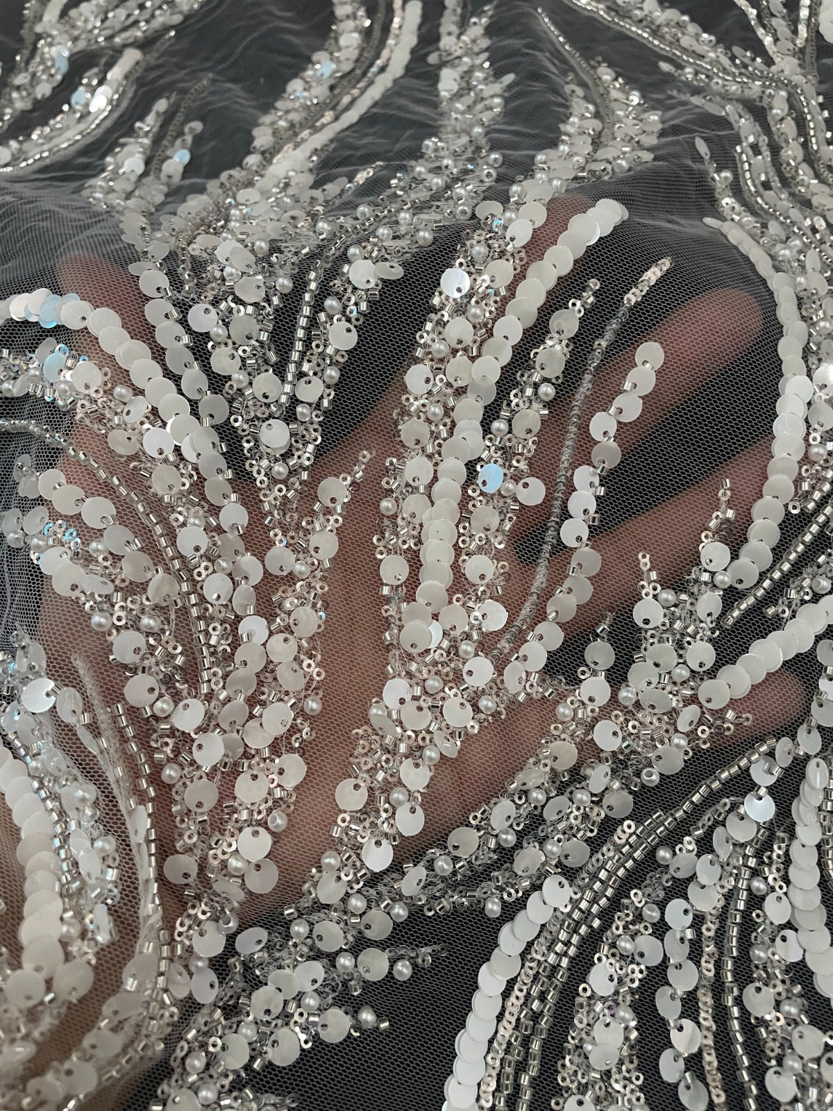 Esta tela de alta calidad se mide en 5 yardas con cuentas bordadas y lentejuelas. Es suave, muy delicado y bonito.