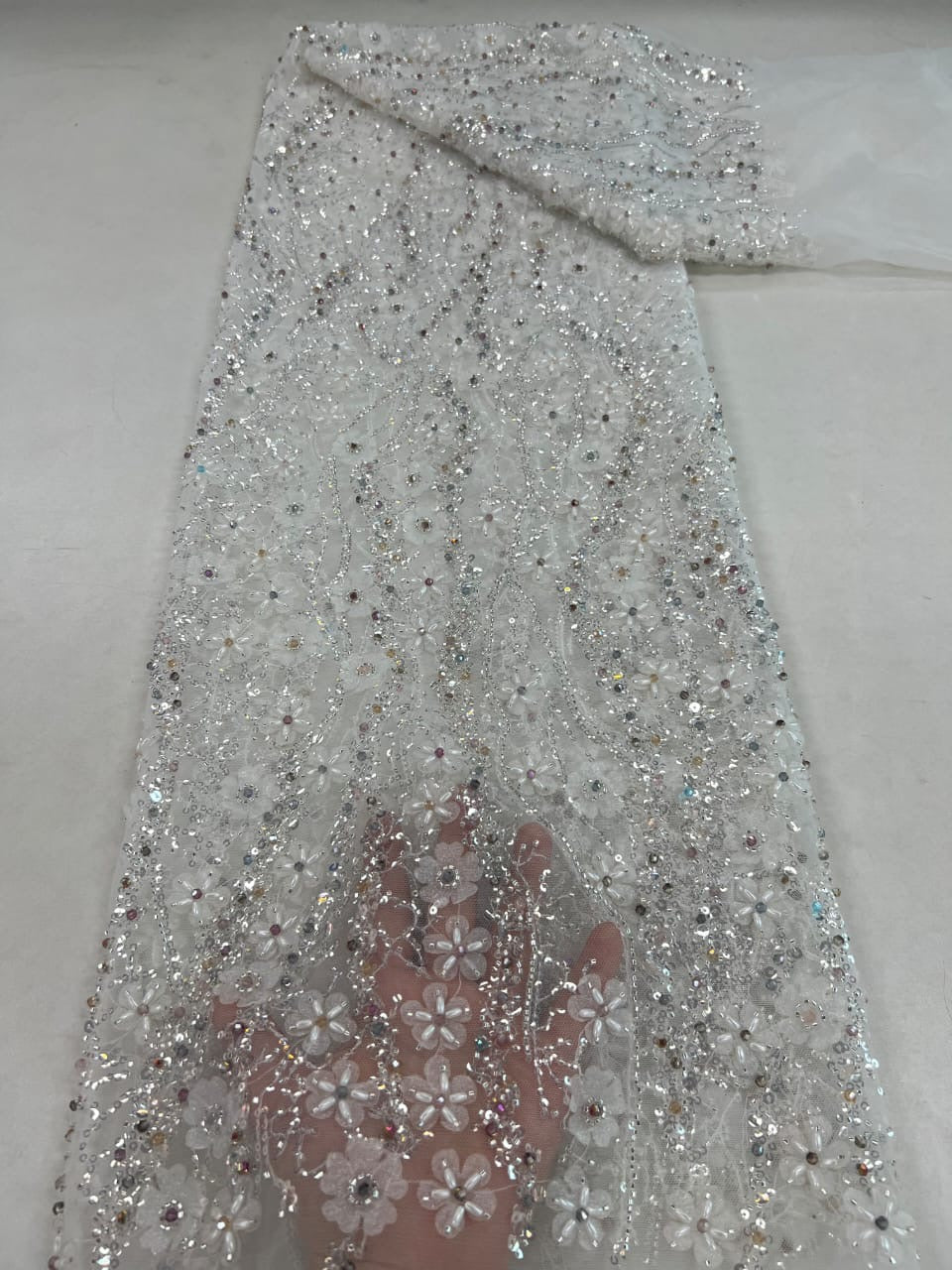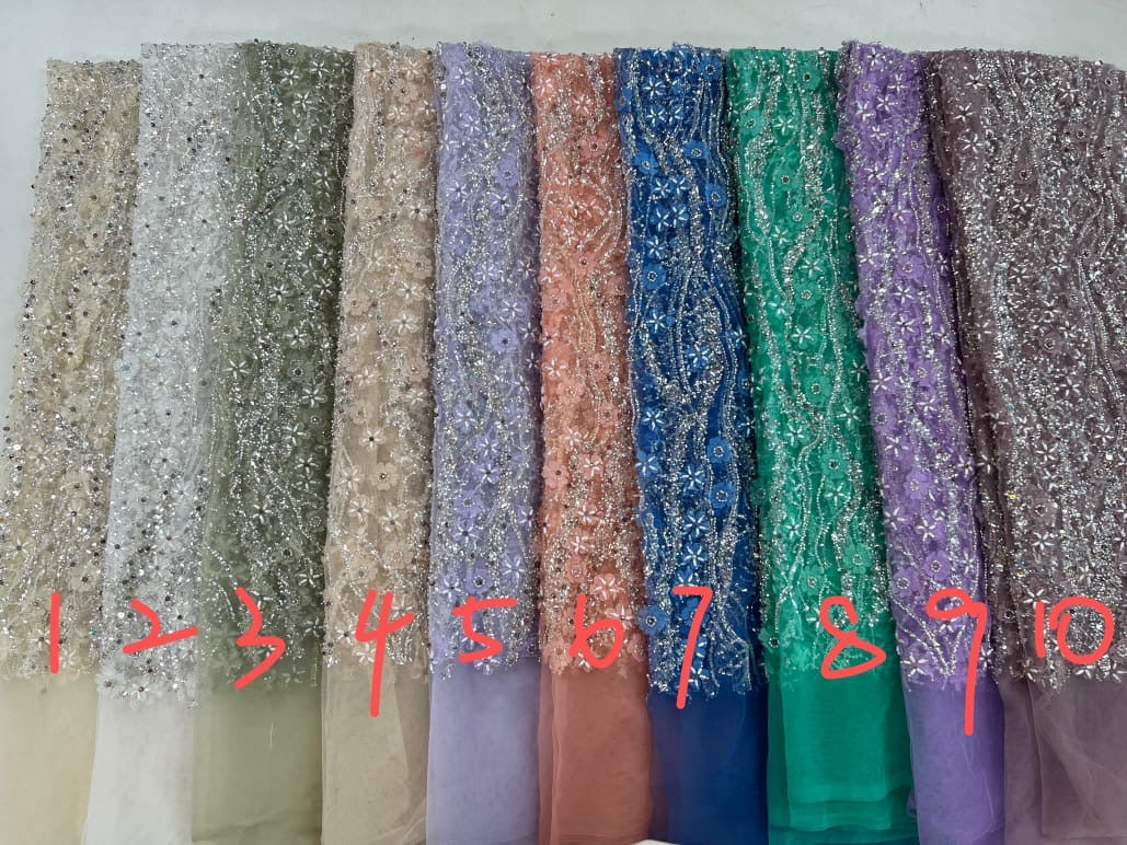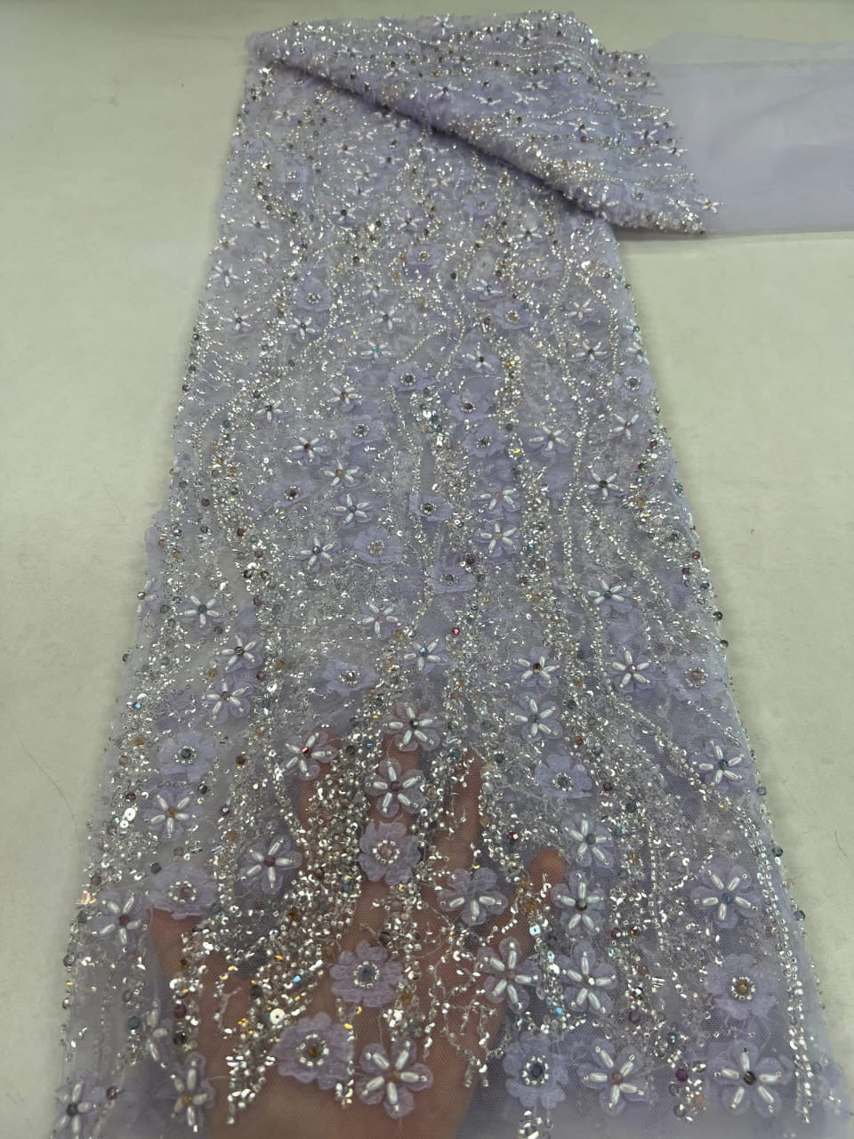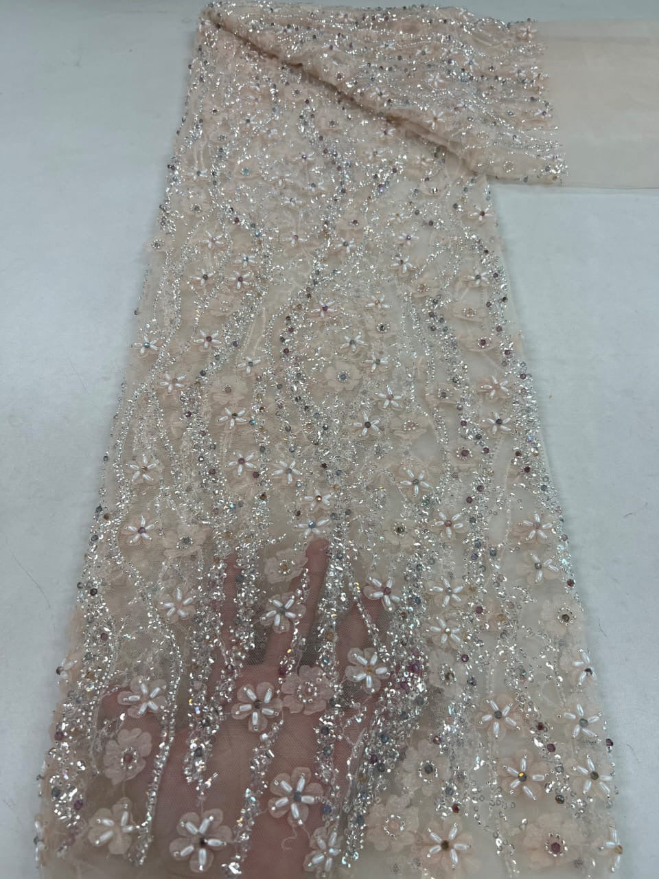 Esta tela de alta calidad se mide en 5 yardas con cuentas bordadas y lentejuelas. Es suave, muy delicado y bonito.