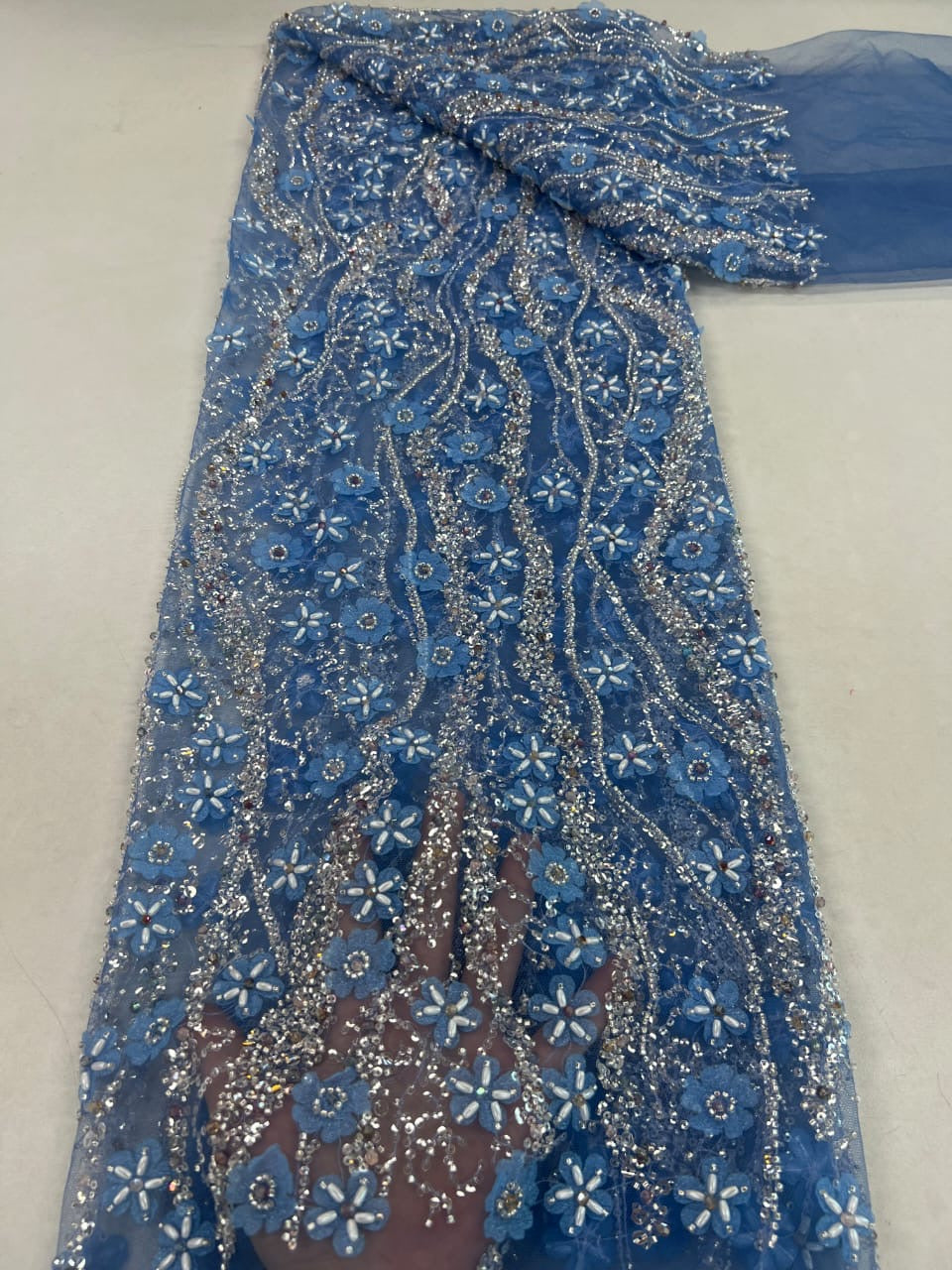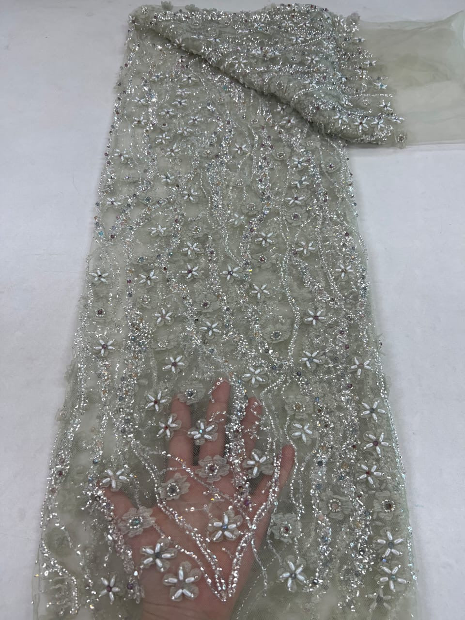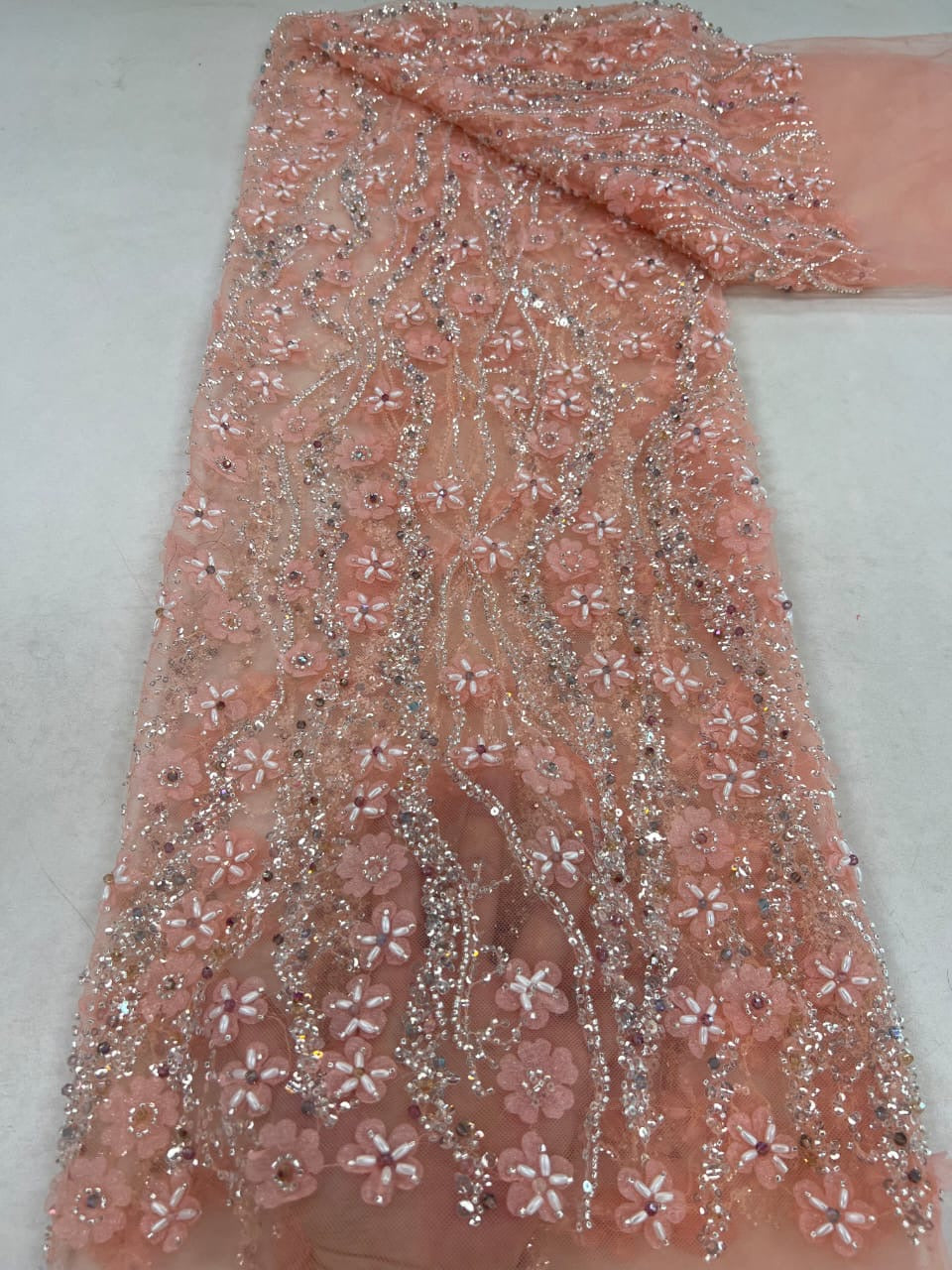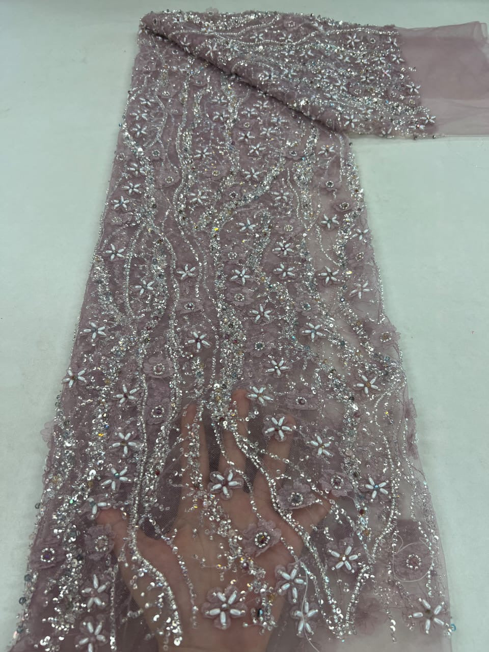 Esta tela de alta calidad se mide en 5 yardas con cuentas bordadas y lentejuelas. Es suave, muy delicado y bonito.