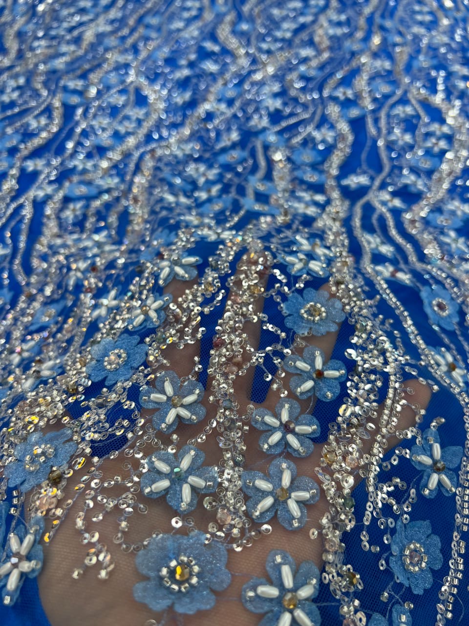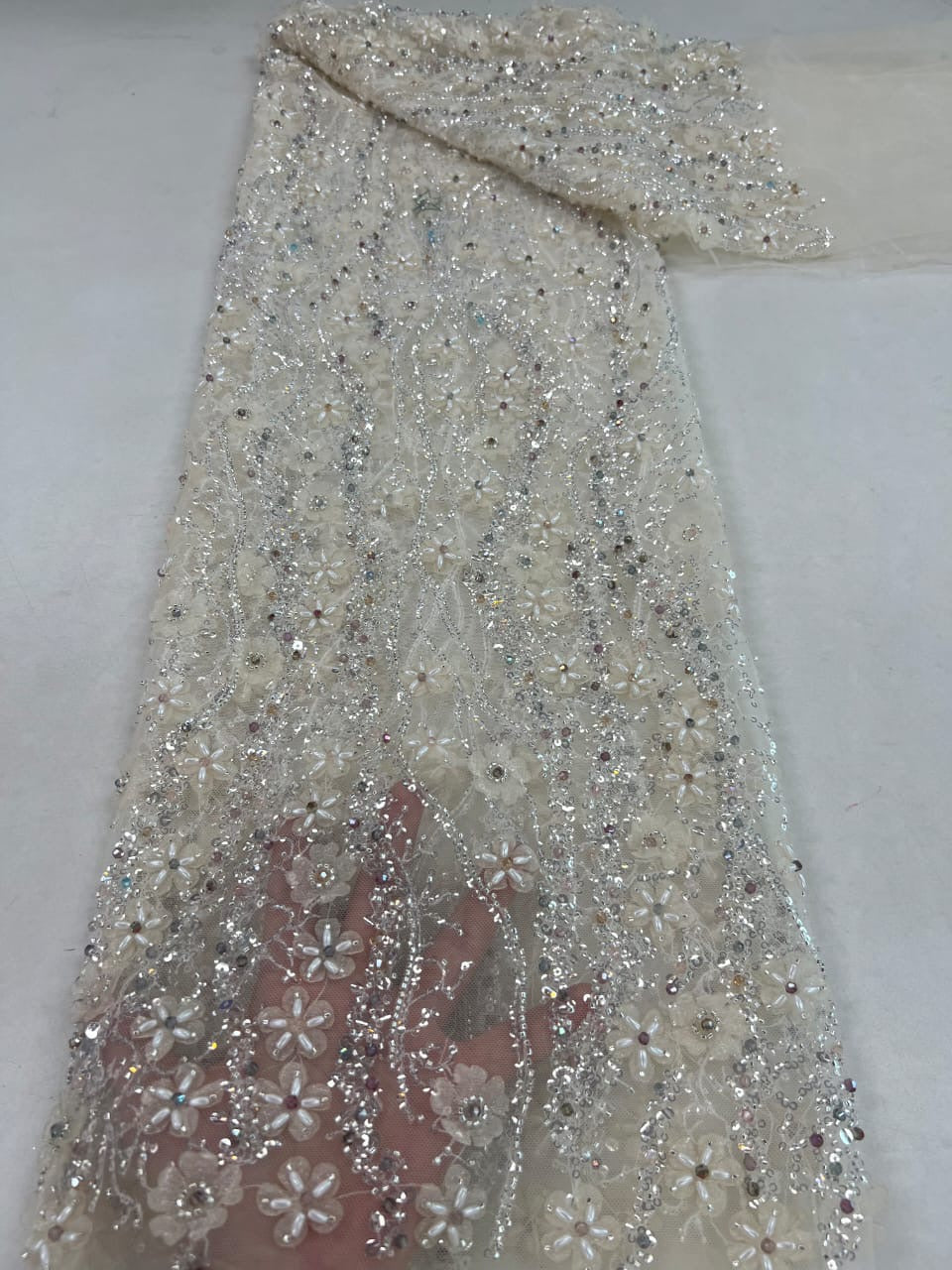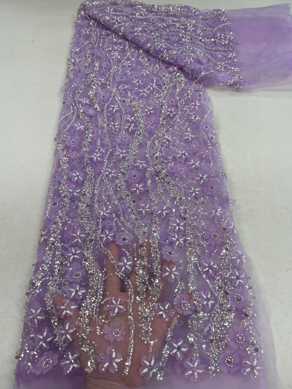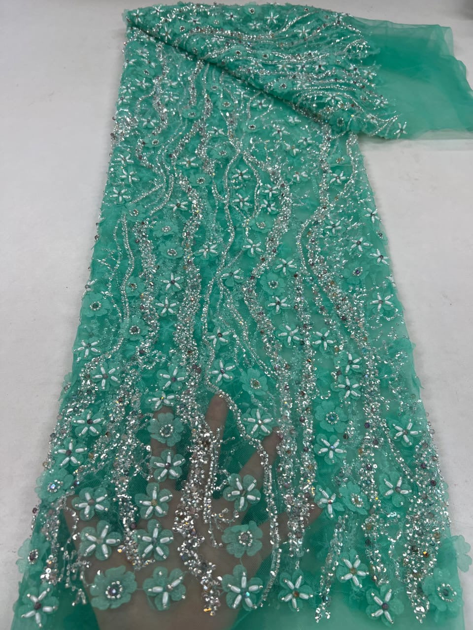 Esta tela de alta calidad se mide en 5 yardas con cuentas bordadas y lentejuelas. Es suave, muy delicado y bonito.