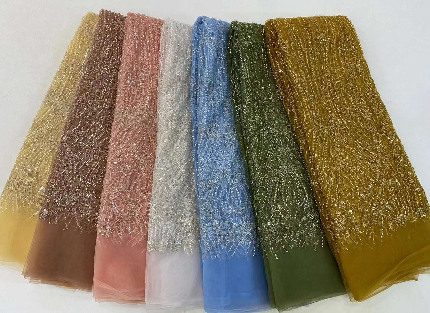 Esta tela de alta calidad está hecha con pedrería bordada a la moda y se puede usar para hacer vestidos de novia, faldas, chales, bufandas y otras prendas de moda que desee.