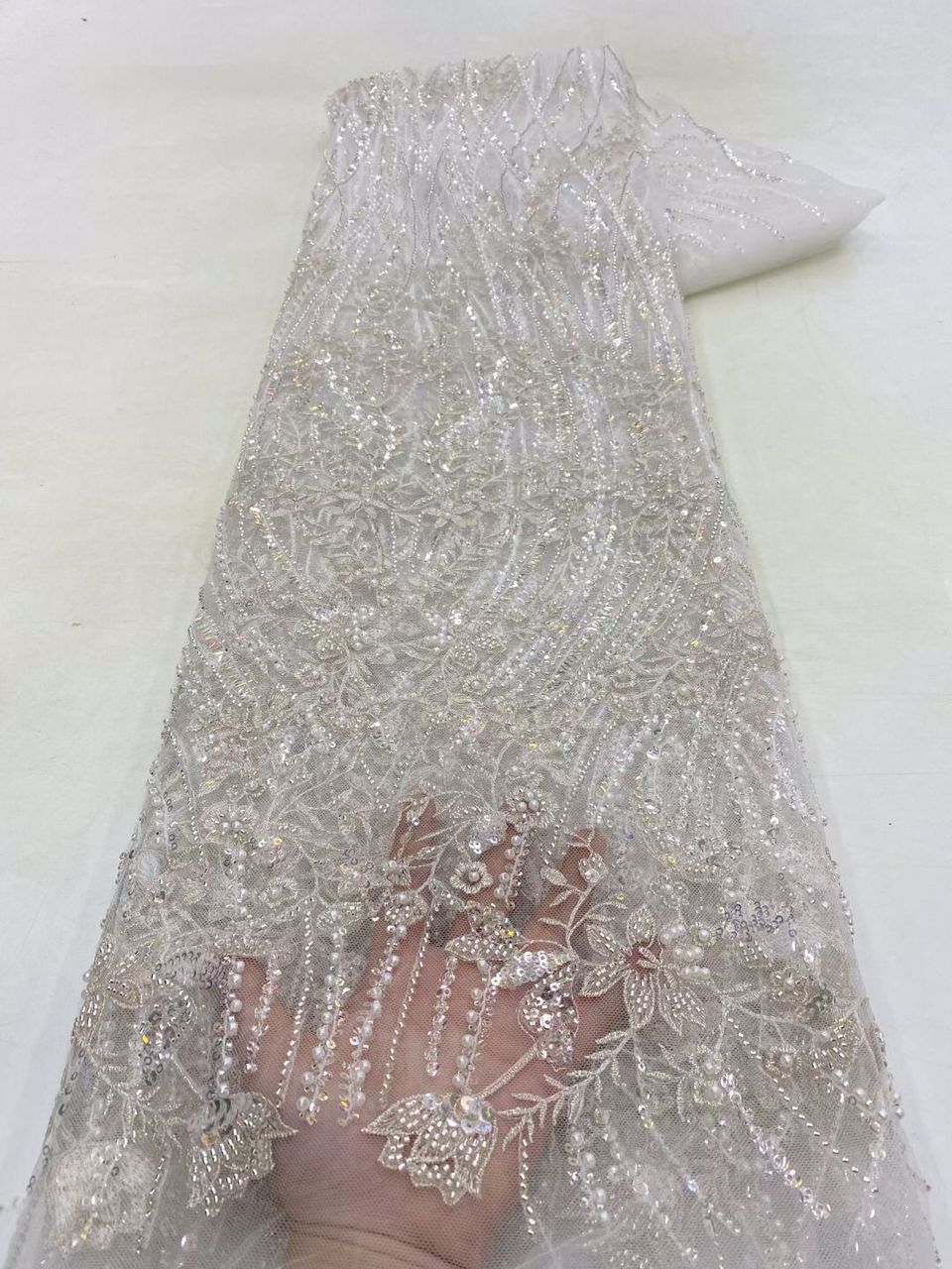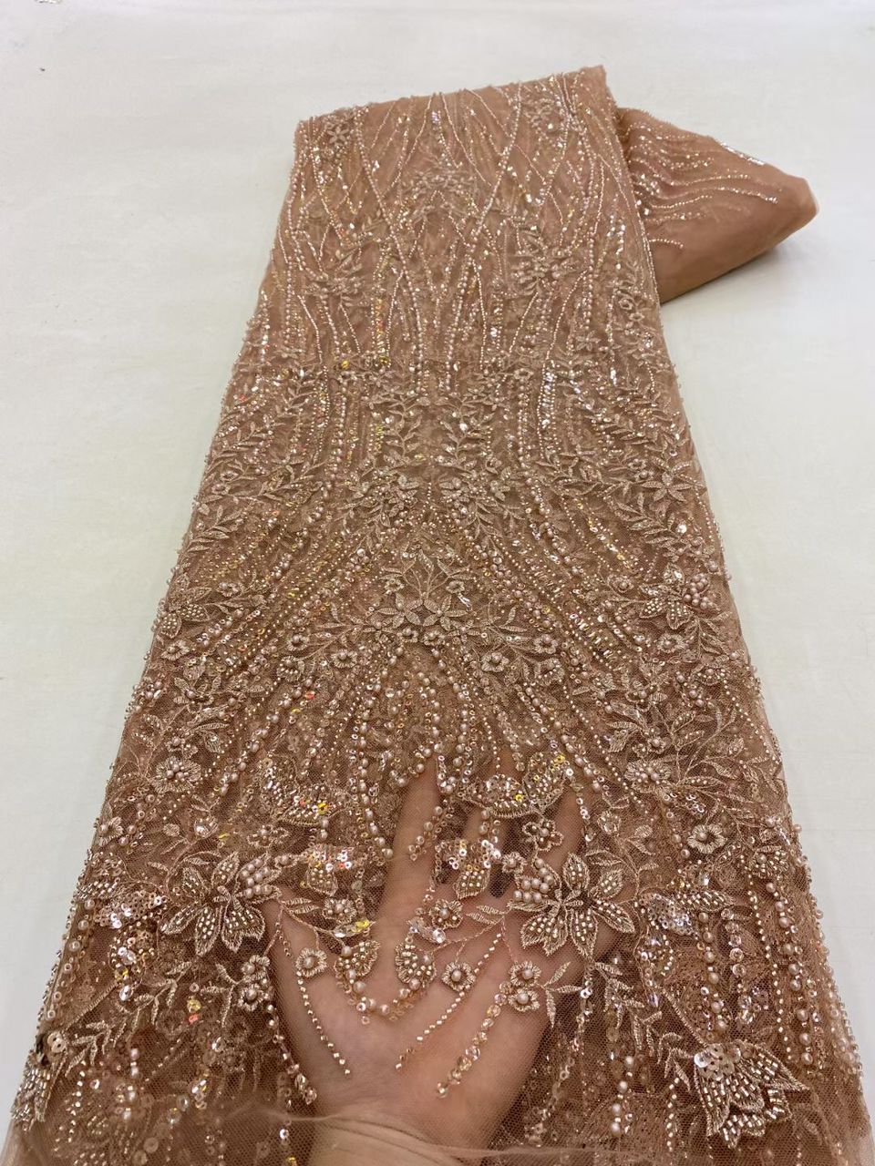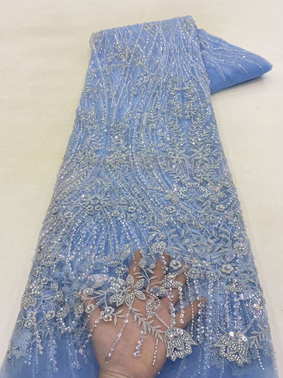 Esta tela de alta calidad se mide en 5 yardas con cuentas bordadas y lentejuelas. Es suave, muy delicado y bonito.