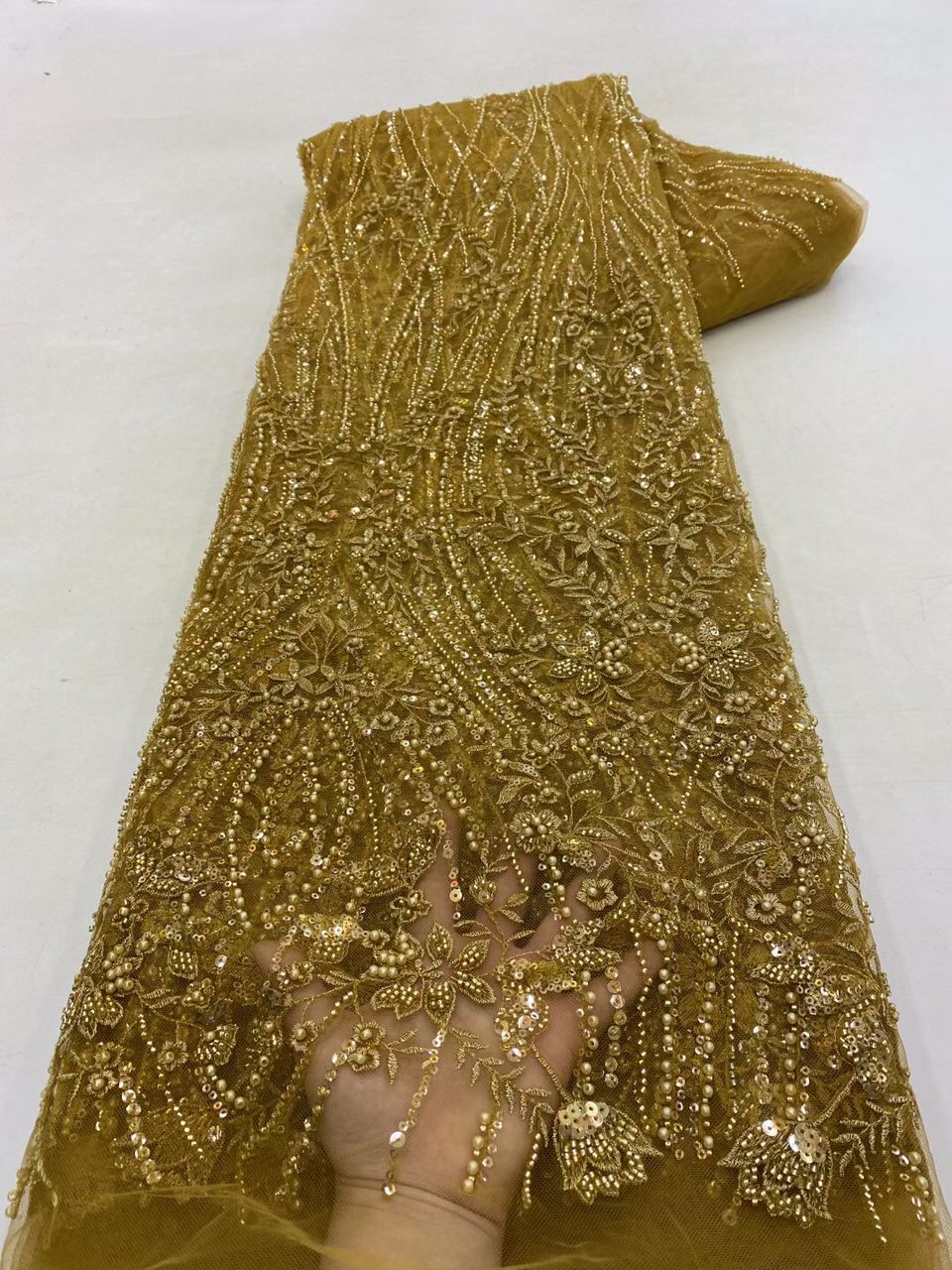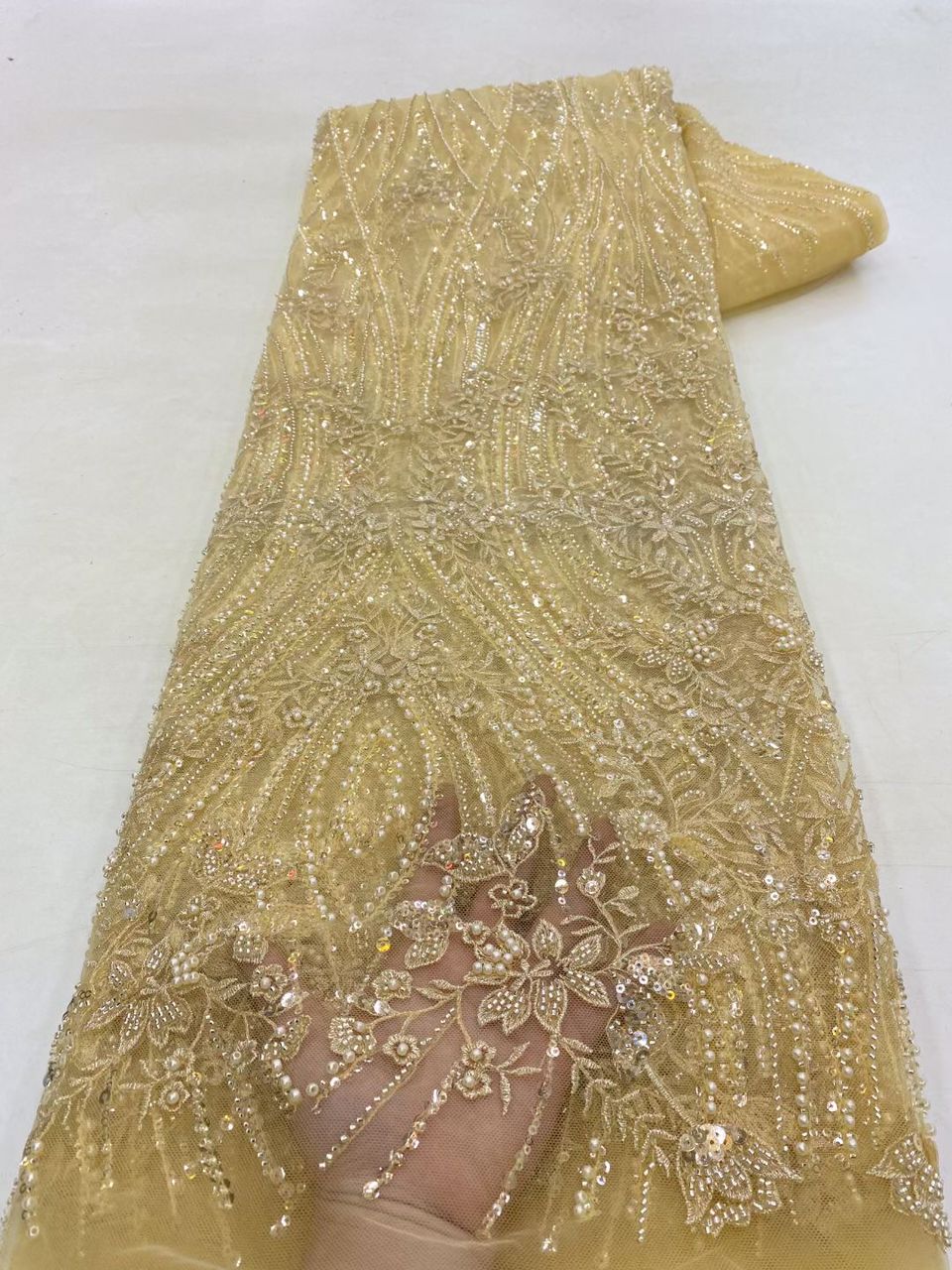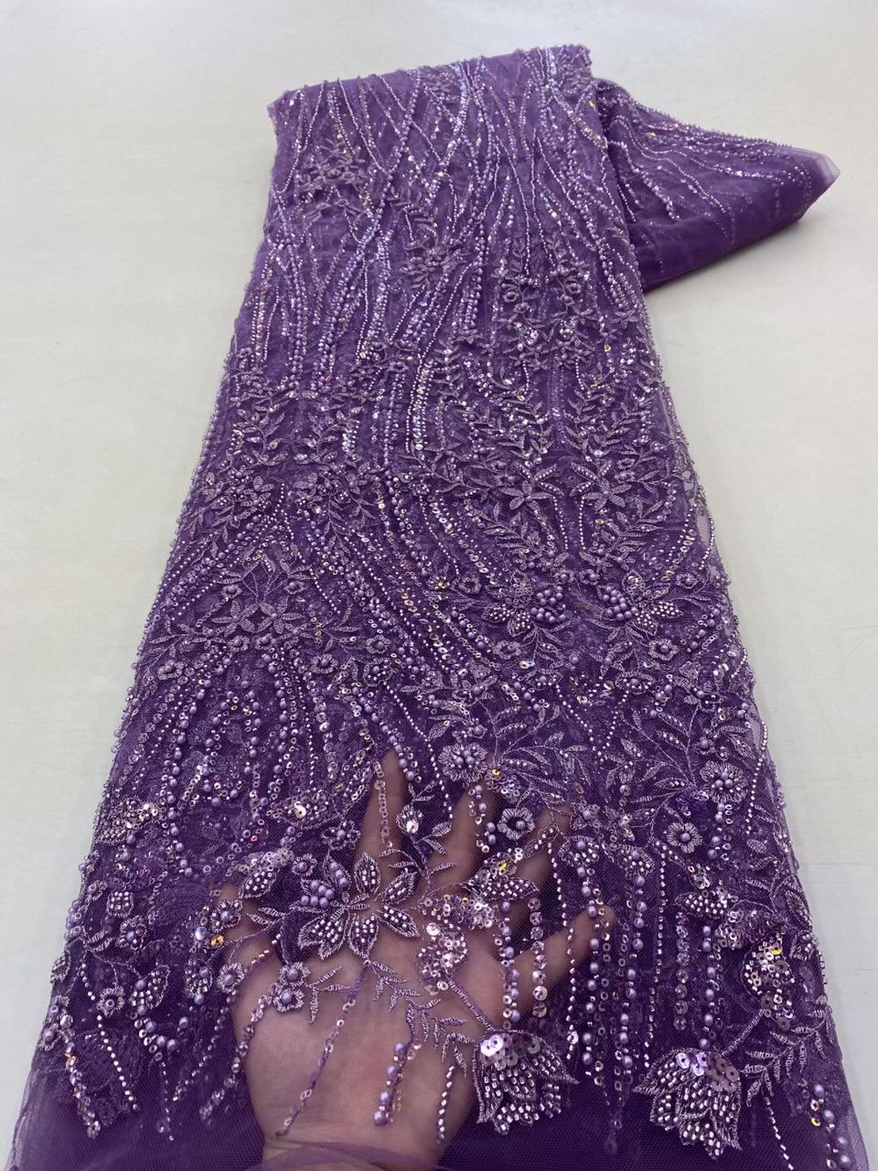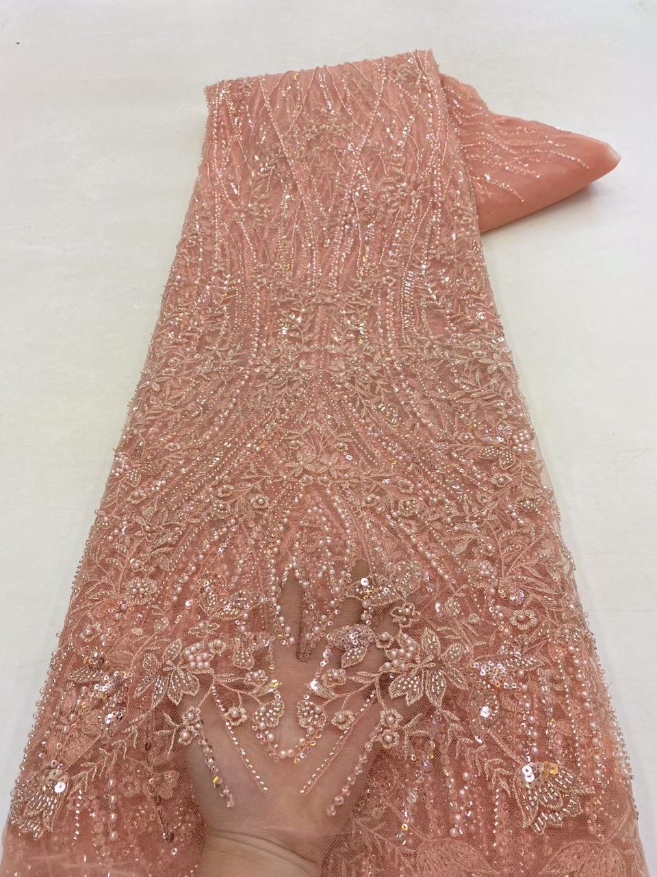 Esta tela de alta calidad se mide en 5 yardas con cuentas bordadas y lentejuelas. Es suave, muy delicado y bonito.