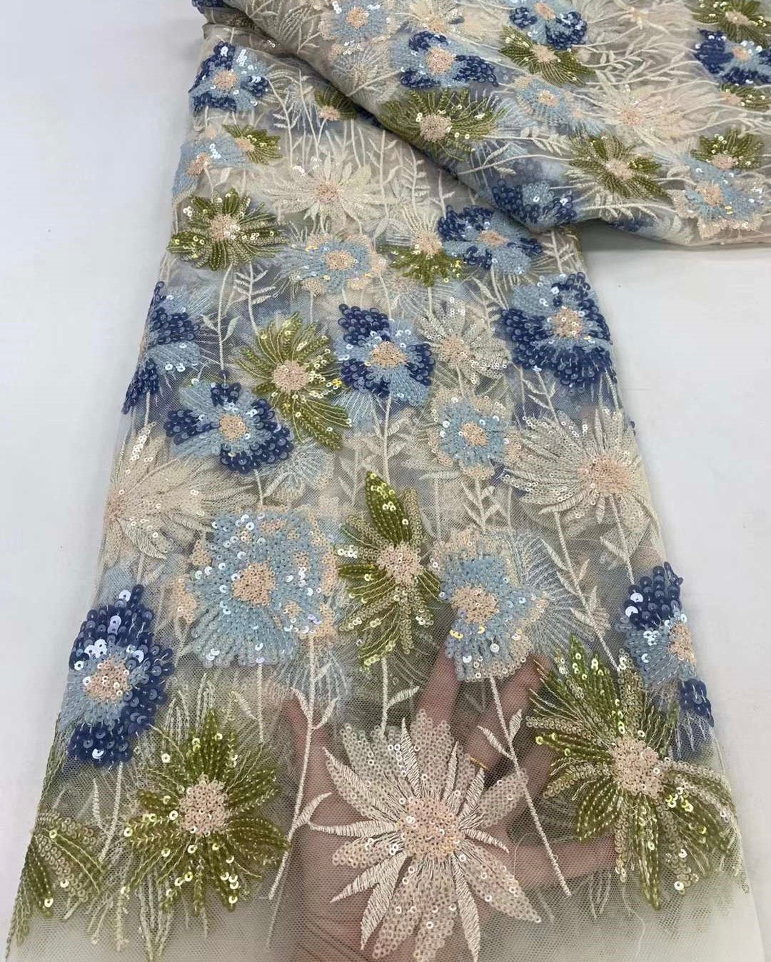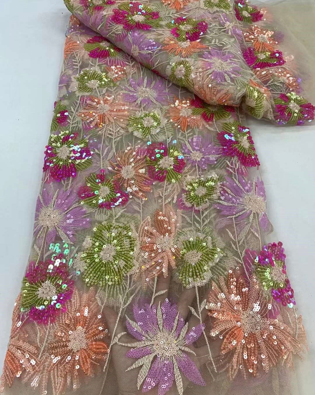 This high quality Fabric is measured in 5 Yards With Embroidered Beading and Sequin. It is soft, very delicate and beautiful.