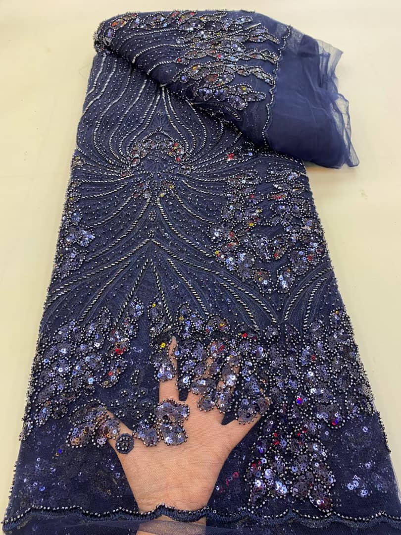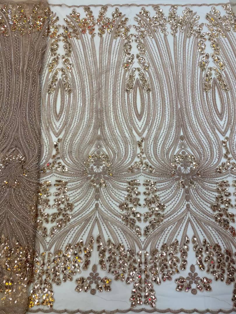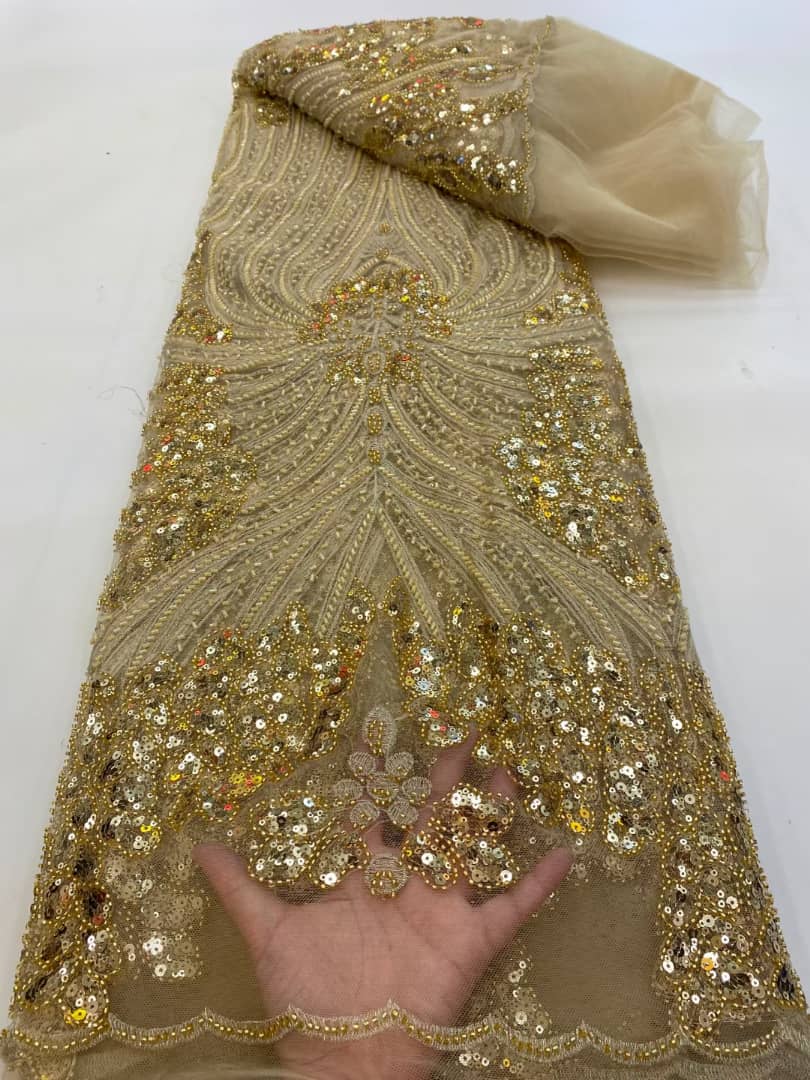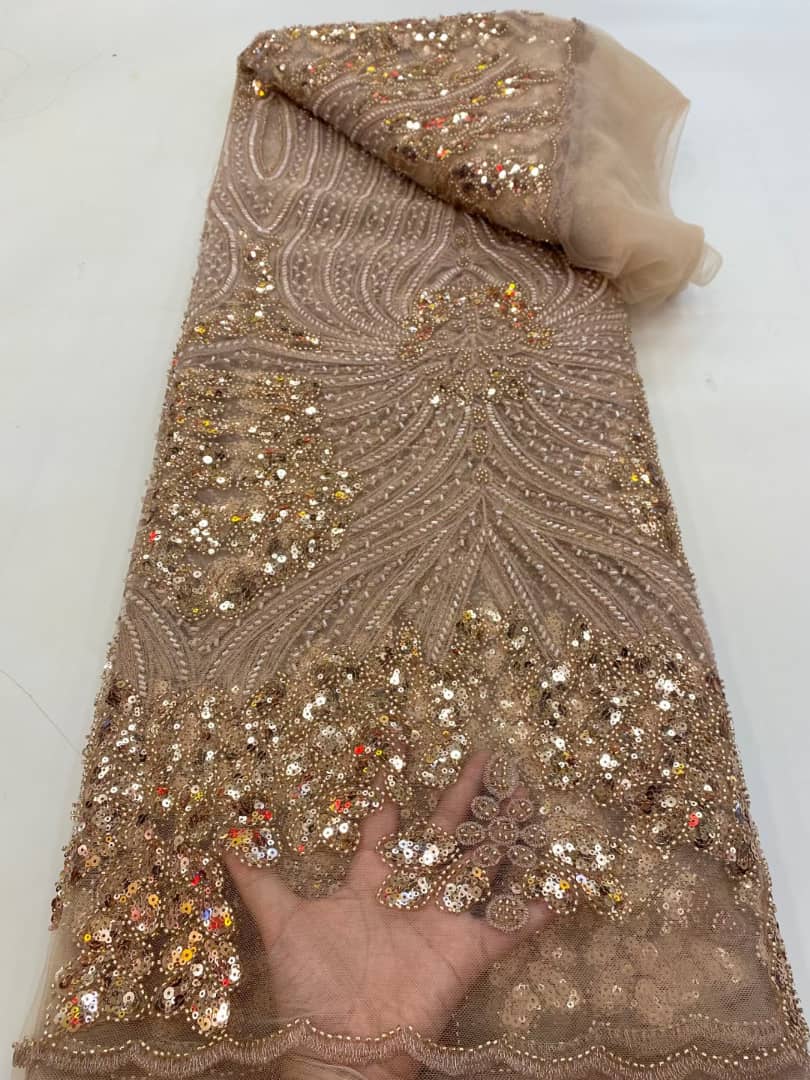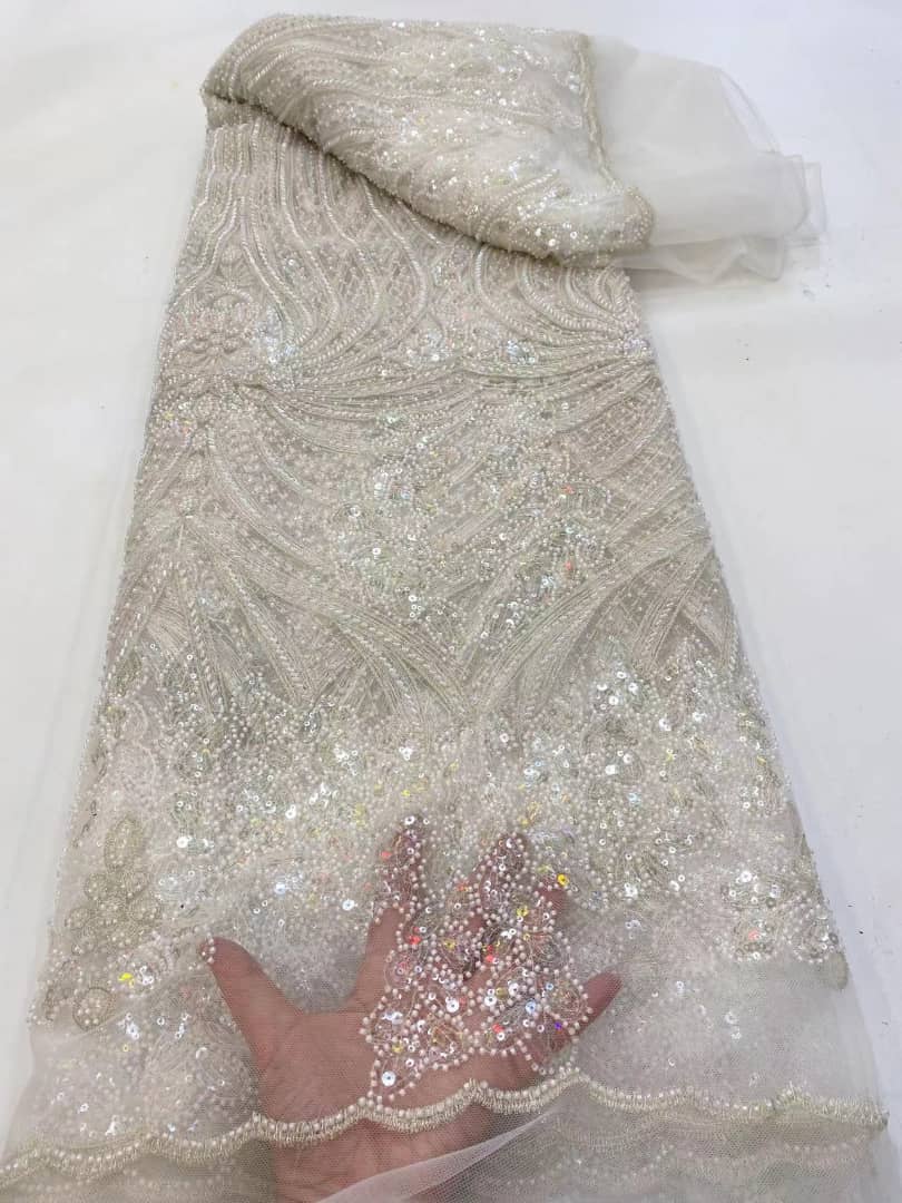 Esta tela de alta calidad se mide en 5 yardas con cuentas bordadas y lentejuelas. Es suave, muy delicado y bonito.