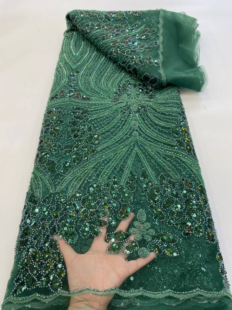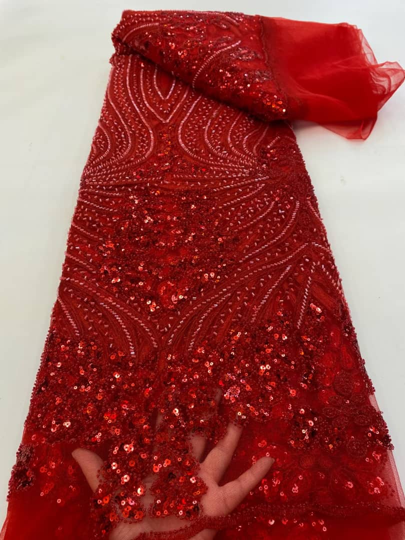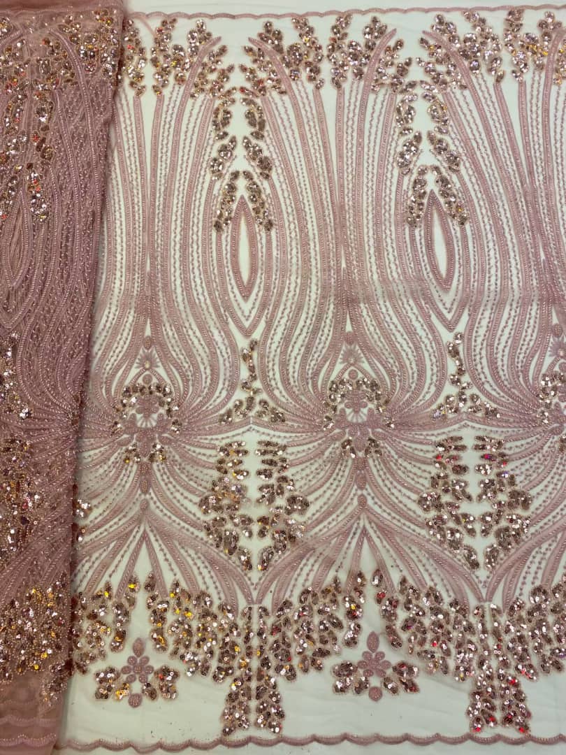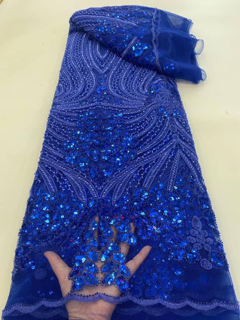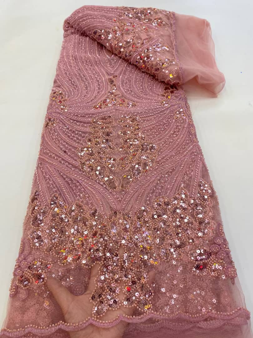 Esta tela de alta calidad se mide en 5 yardas con cuentas bordadas y lentejuelas. Es suave, muy delicado y bonito.