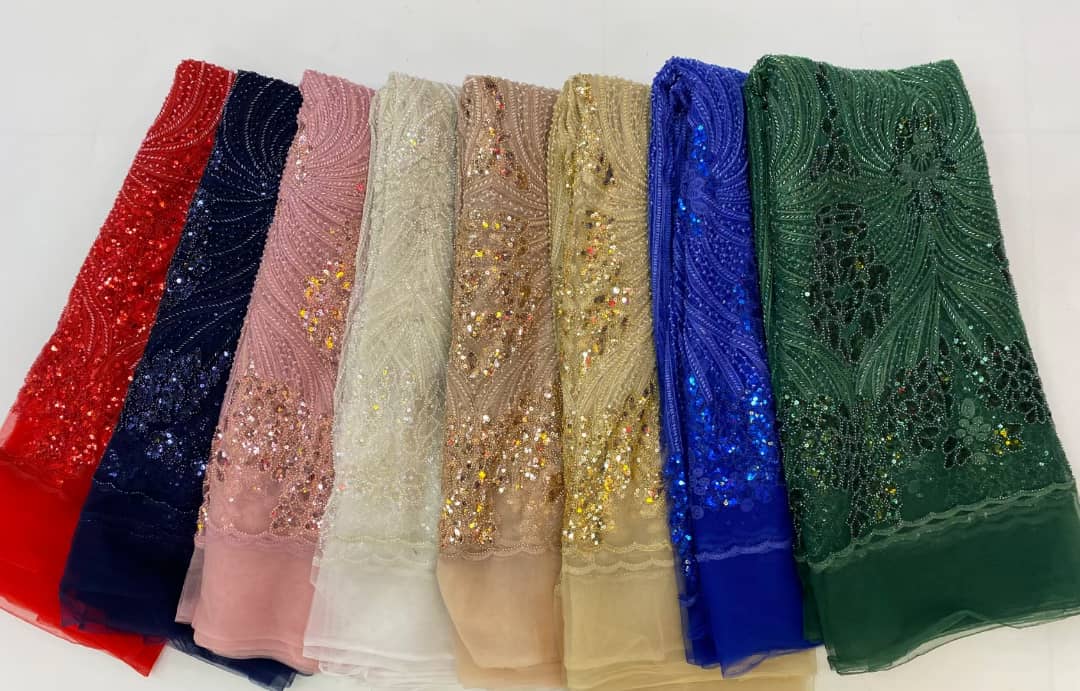Esta tela de alta calidad está hecha con pedrería bordada a la moda y se puede usar para hacer vestidos de novia, faldas, chales, bufandas y otras prendas de moda que desee.